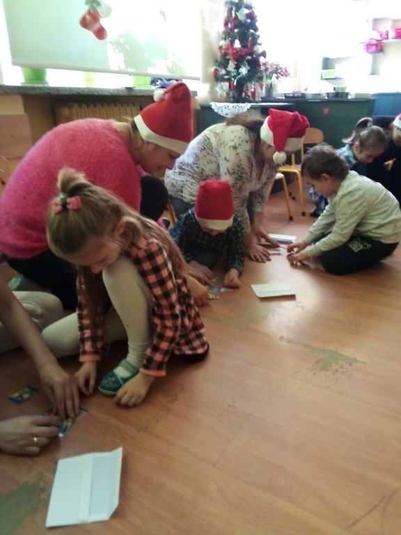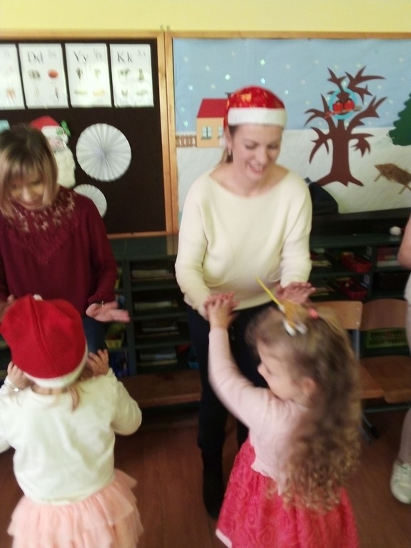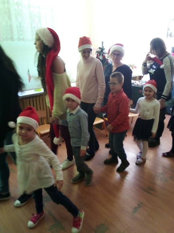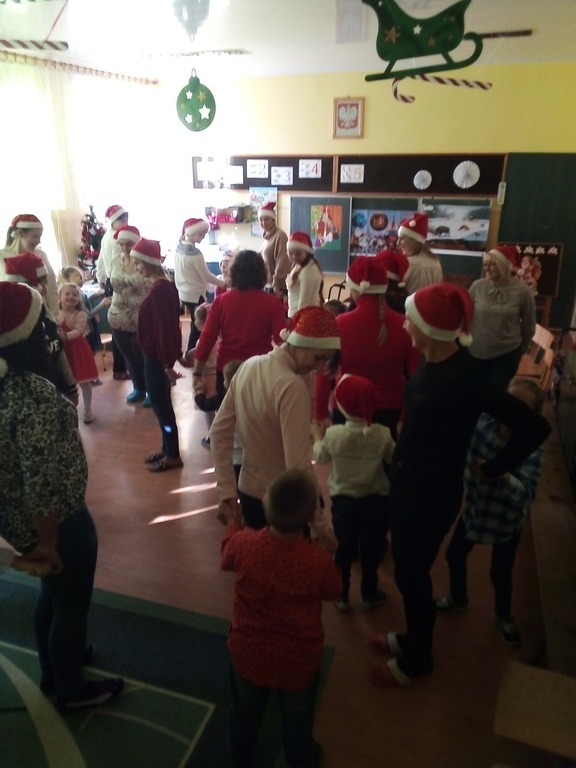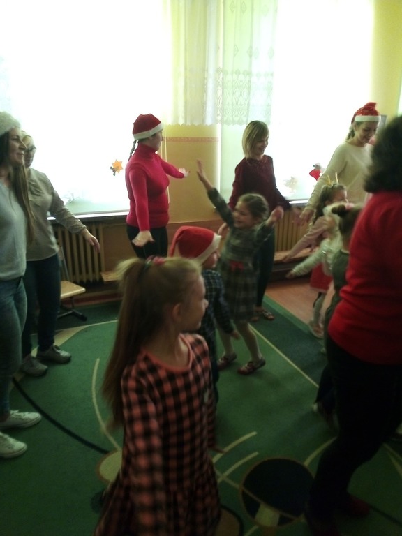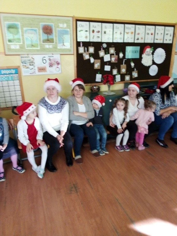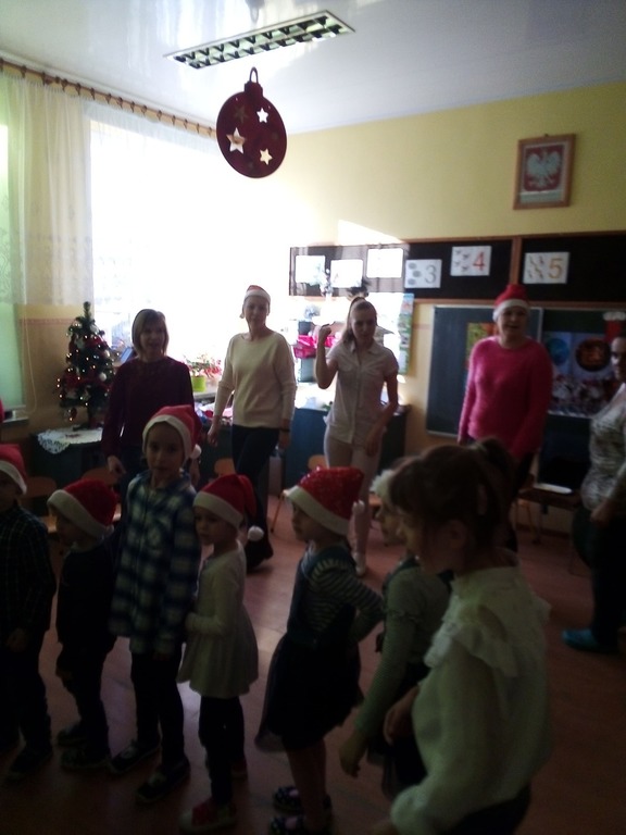 Miła niespodzianka spotkała dzieci z oddziału 5 i 6 latków w Mokronosie. W tym dniu zawitały Panie Mikołajowe były to mamy naszych dzieci, niespodziewanie zawitały do klasy co sprawiło wielką radość i zaskoczenie dzieci. Przedszkolaki otrzymały list od św. Mikołaja, po odczytaniu musiały wykonać kilka zadań podczas, których mamy pomagały swoim pociechą jak i zarówno razem z dziećmi musiały zatańczyć do znanych kolęd i pastorałek. Na zakończenie każde z dzieci otrzymało upominek od Mikołaja, który zostawił worek pod drzwiami…..