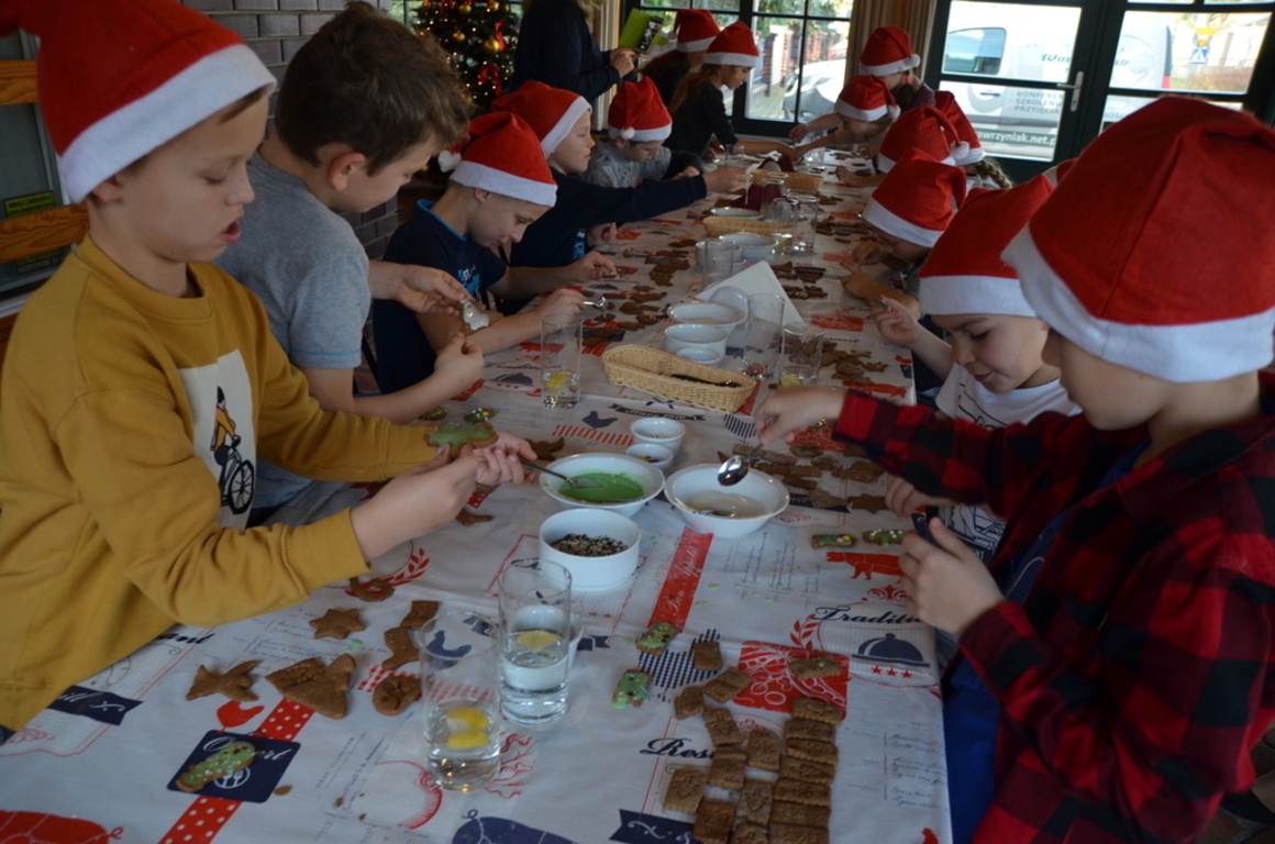2 grudnia br. klasa III pojechała na magiczne warsztaty mikołajkowe do Restauracji Wawrzyniak w Krotoszynie. Na warsztatach dzieci poznały tajniki wypiekania i ozdabiania pierników, malowały gipsowe figurki św. Mikołaja. Następnie dzieci odwiedział tajemniczy gość - Święty Mikołaj, który wręczył dzieciom świąteczne upominki i dyplomy. To były niezapomniane, mikołajkowe warsztaty. Ten dzień na długo pozostanie w naszej pamięci!