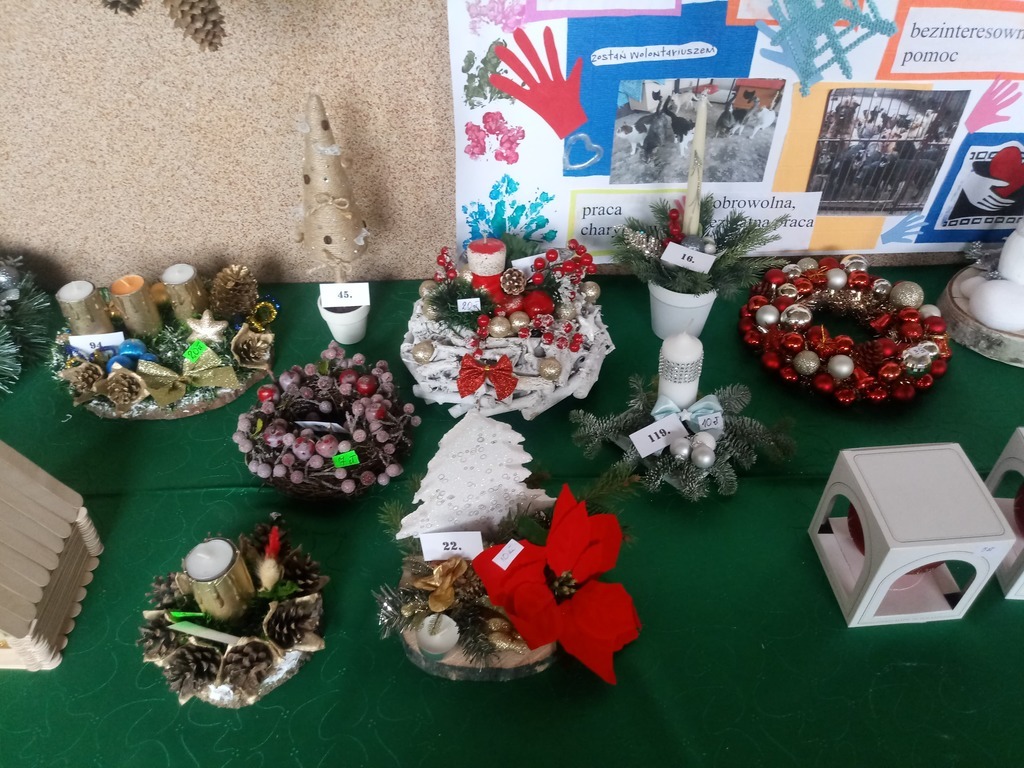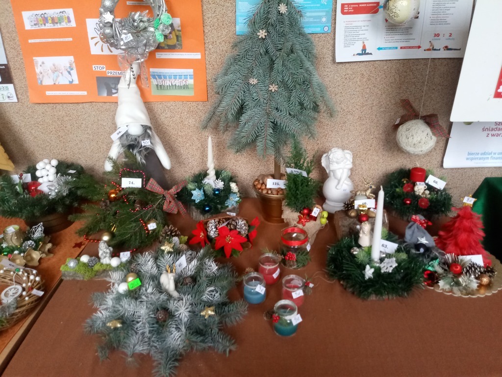 Wszystkim uczestnikom bardzo dziękujemy za zaangażowanie, udział w konkursie oraz wkład pracy w wykonanie dekoracji świątecznych na kiermasz szkolny, który odbył się w niedziele 15.12.2019 r. w holu głównym szkoły. Tego dnia można było przyjść i obejrzeć przepiękne prace uczniów oraz je nabyć. Na kiermasz świąteczny zaglądali i mali i dorośli.
