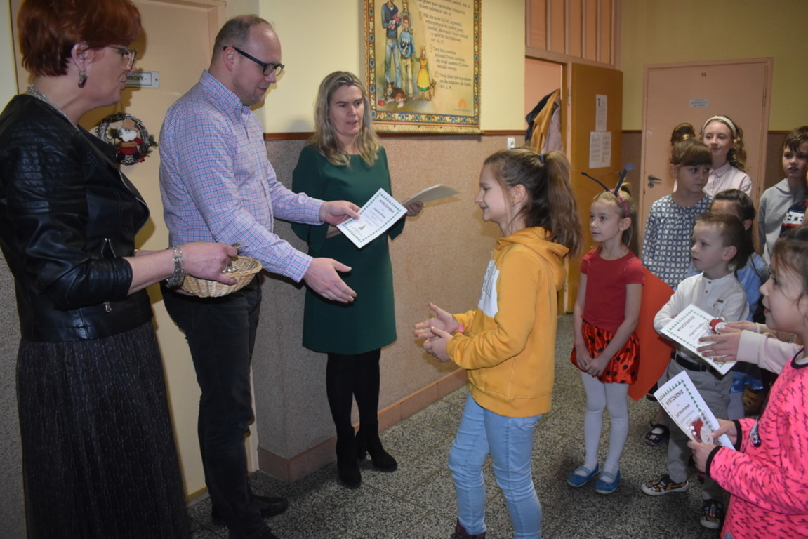 Dyplomy oraz nagrody wyróżnionym uczestnikom wręczył przewodniczący Rady Rodziców pan Karol Basty.