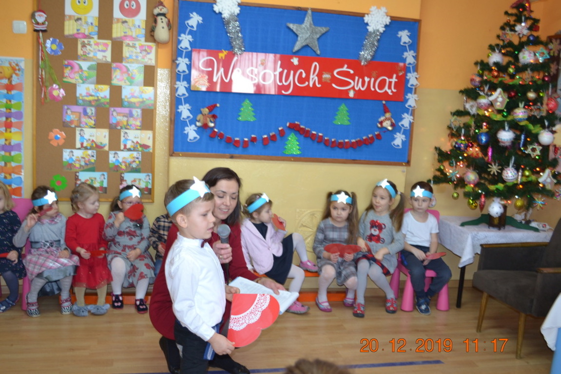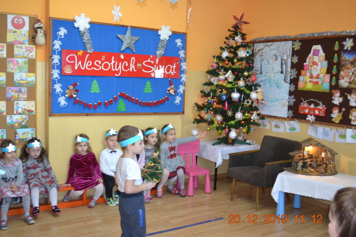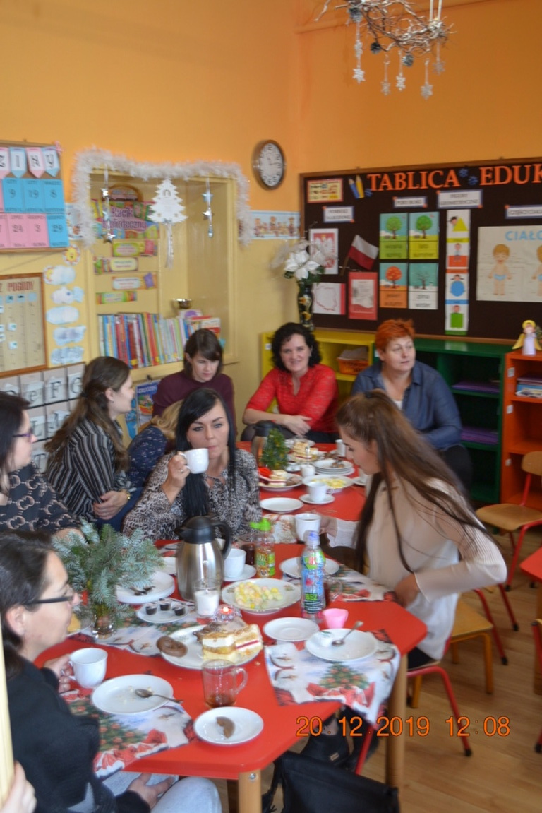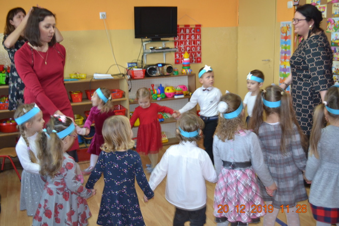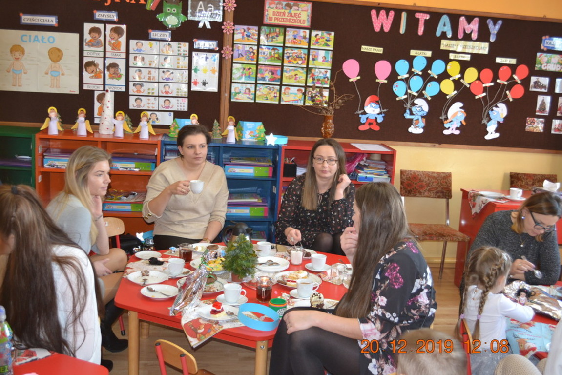 20 grudnia w oddziale przedszkolnym we Wrotkowie odbyło się przedświąteczne spotkanie z rodzicami oraz zaproszonymi gośćmi. Bożonarodzeniowy klimat dopełniały okolicznościowe dekoracje, lampki, choinka oraz odświętnie nakryte stoły ze słodkim poczęstunkiem przygotowanym przez naszych rodziców.