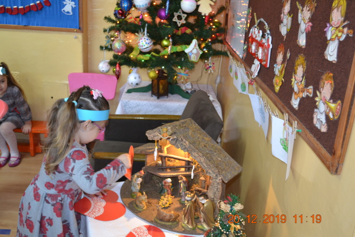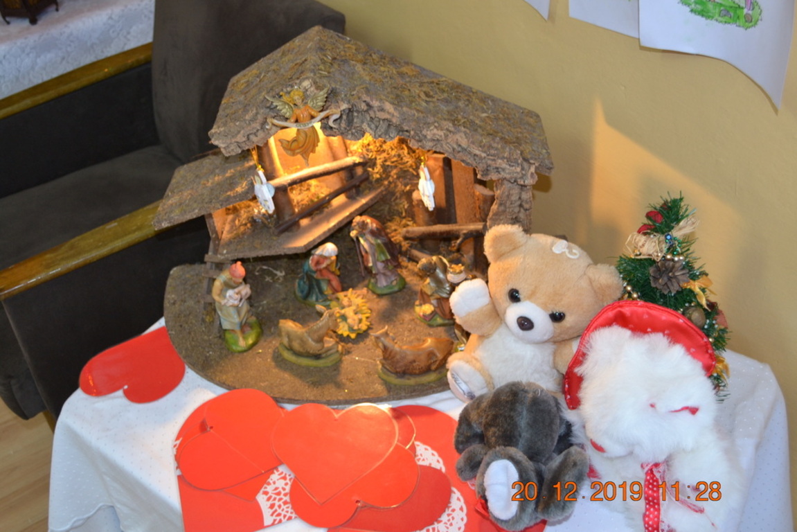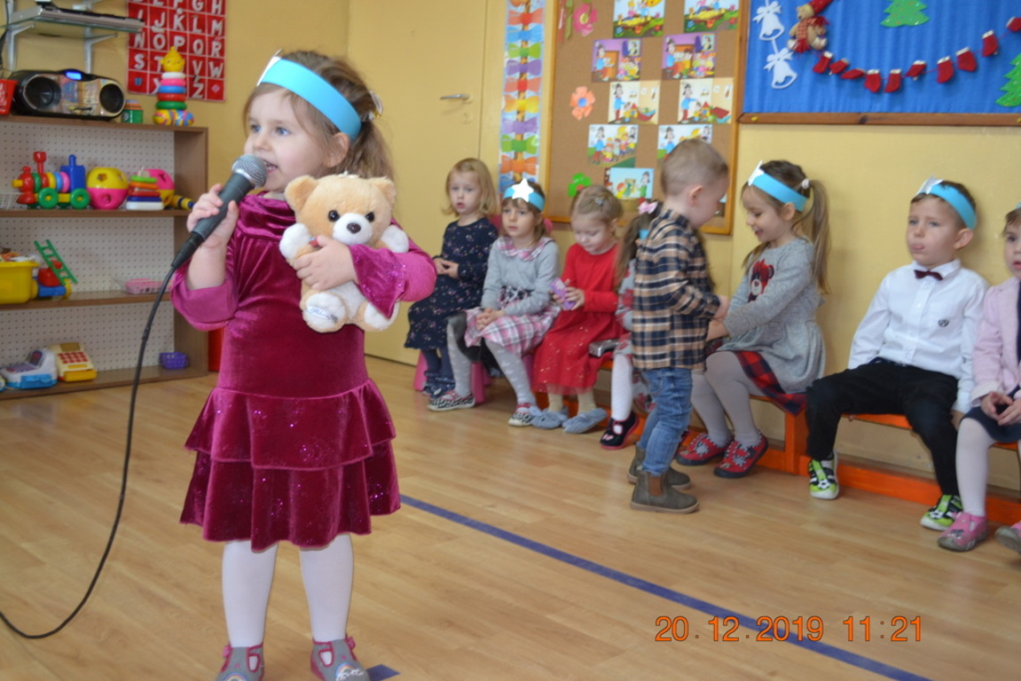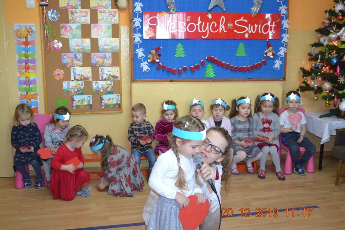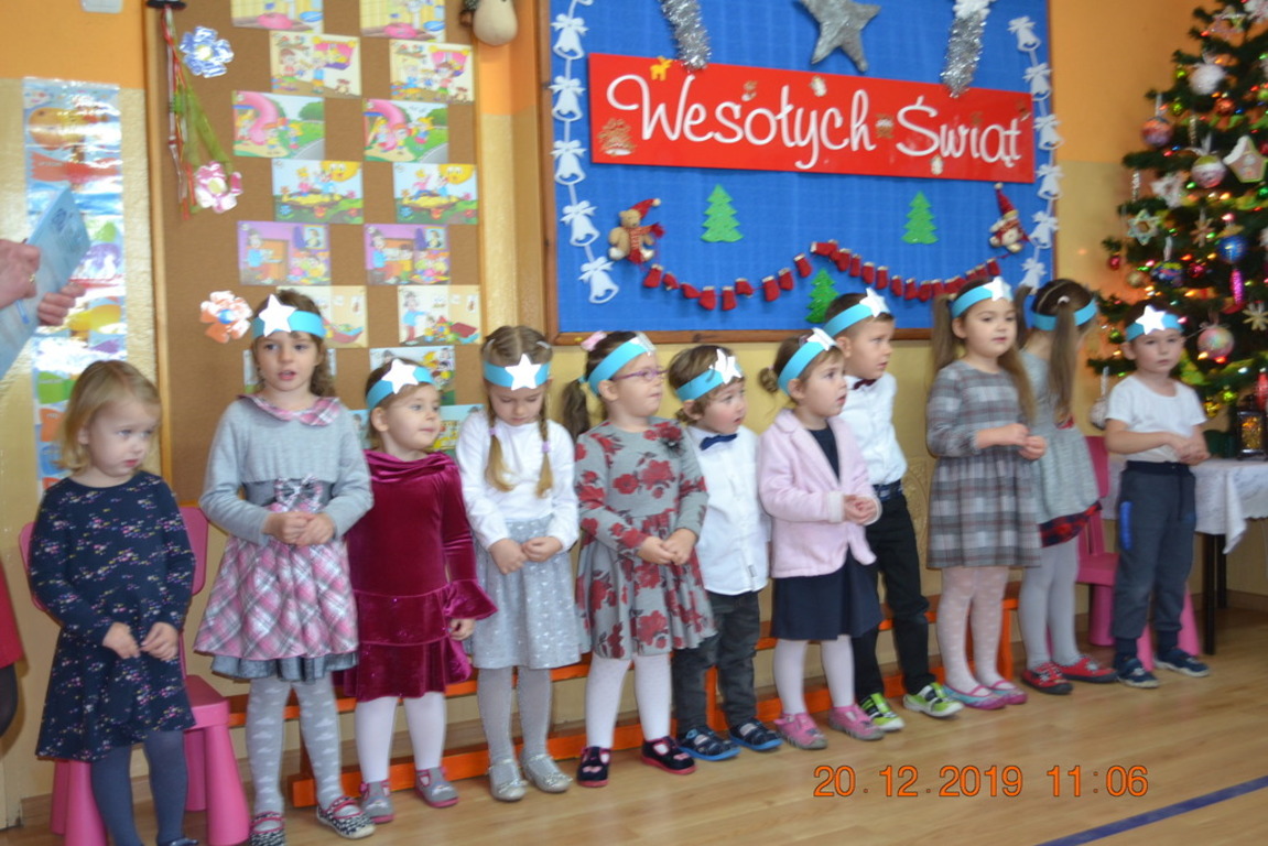 20 grudnia w oddziale przedszkolnym we Wrotkowie odbyło się przedświąteczne spotkanie z rodzicami oraz zaproszonymi gośćmi. Bożonarodzeniowy klimat dopełniały okolicznościowe dekoracje, lampki, choinka oraz odświętnie nakryte stoły ze słodkim poczęstunkiem przygotowanym przez naszych rodziców.