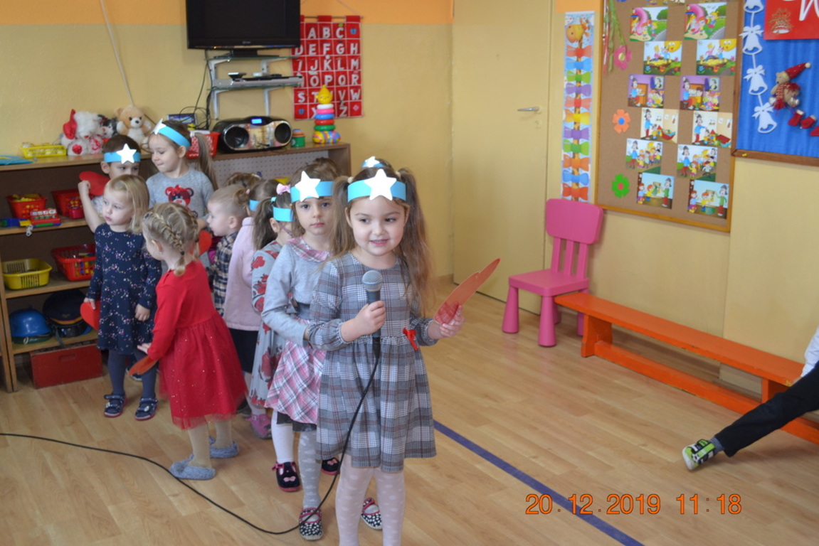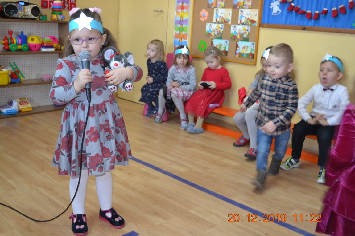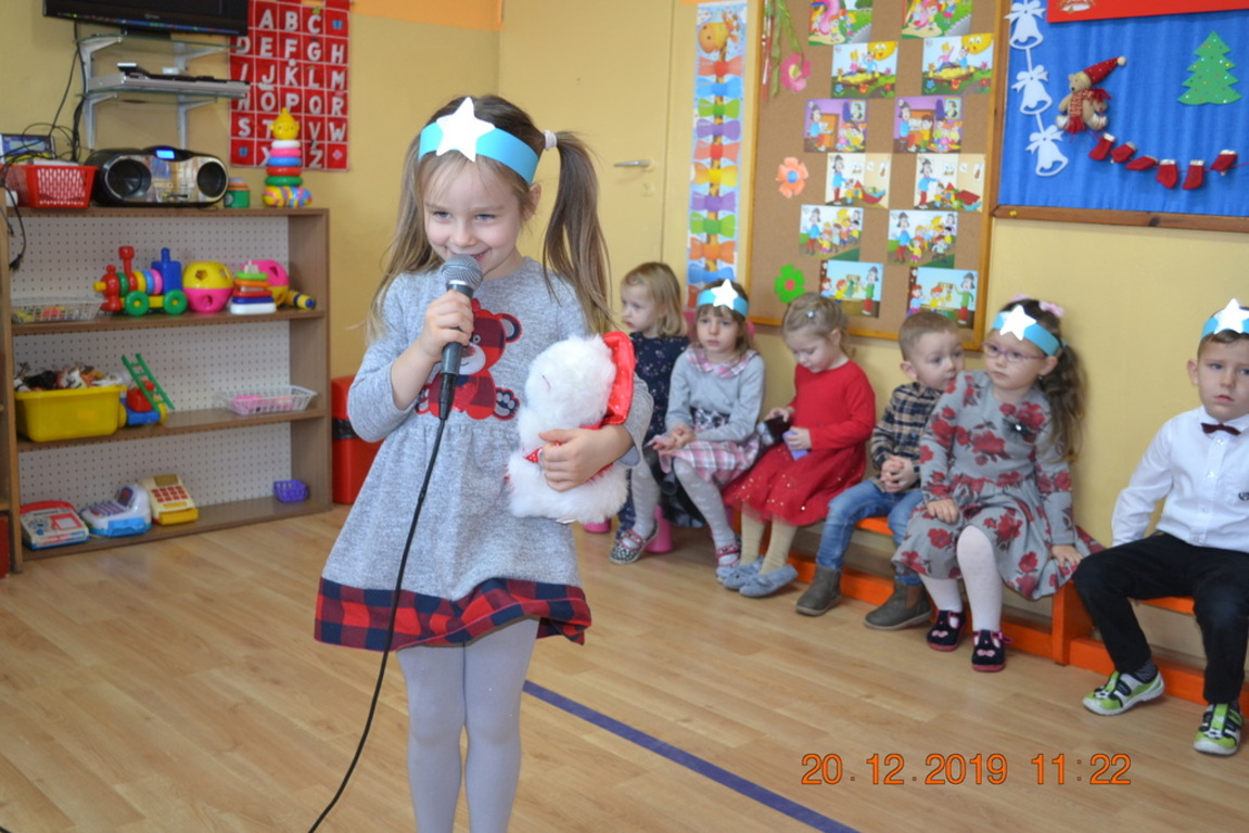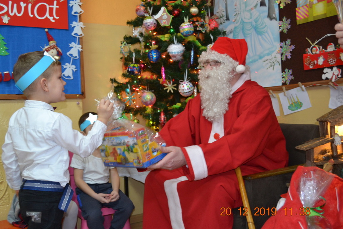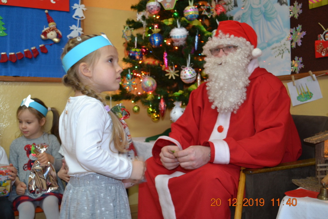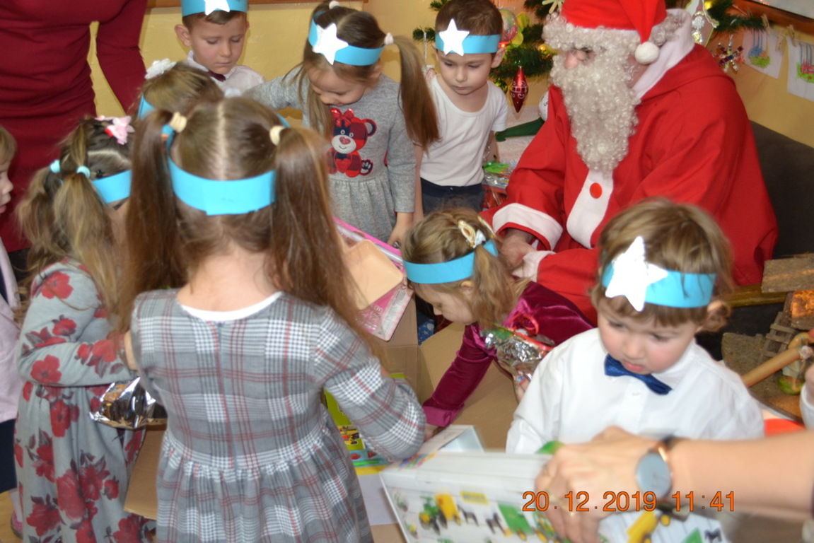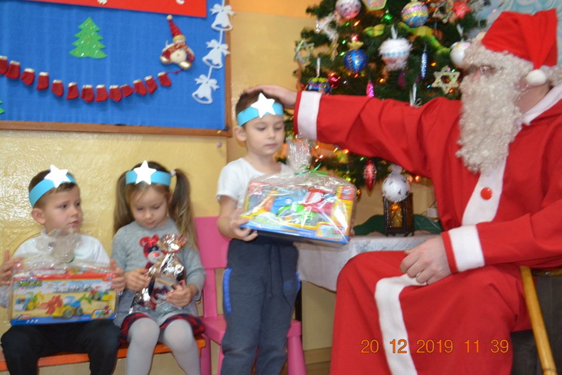 Podniosłym momentem spotkania był program artystyczny w wykonaniu naszych przedszkolaków. Dzieci z zaangażowaniem śpiewały utwory o tematyce świątecznej, tańczyły, recytowały wierszyki oraz zaprosiły przybyłych gości do wspólnego kolędowania. Dużo pozytywnych emocji wywołała wizyta wyjątkowego, najważniejszego dla przedszkolaków gościa – Świętego Mikołaja, który podarował każdemu dziecku upominek. Wydarzenie pozwoliło wszystkim na chwilę poczuć atmosferę zbliżających się Świąt Bożego Narodzenia.