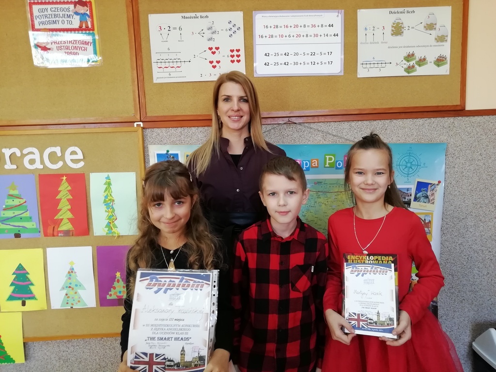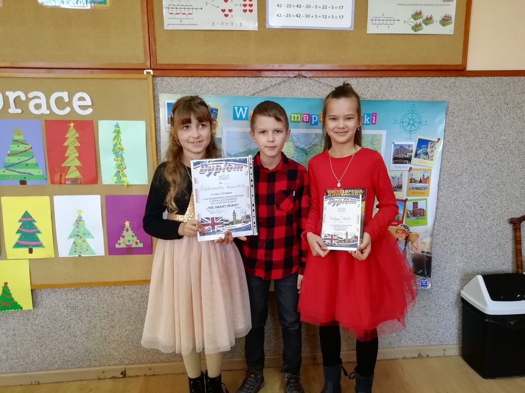 18 grudnia 2019 roku uczniowie naszej szkoły wzięli udział w trzeciej edycji Międzyszkolnego Konkursu z Języka Angielskiego dla uczniów klas III „The Smart Heads” organizowanego przez Szkołę Podstawową Nr 1 im. Strajku Dzieci Koźmińskich 1906/1907 w Koźminie Wlkp.