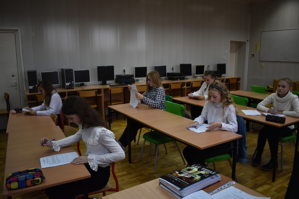 4 grudnia 2019 r w Poznaniu odbył etap rejonowy Wojewódzkiego Konkursu Języka Polskiego dla uczniów szkół podstawowych pod hasłem: „Między jawą, a wyśnionymi krainami fantastycznych cudów”. Wzięła w nim udział uczennica kl.VII Marita Wojtaszyk. Etap szkolny odbył się już w październiku i stawały w nim w szranki z lekturami z klasy VII i VIII uczennice z tychże klas. Sześć dziewczynek z klas VII i VIII (Magdalena Klarzyńska, Julia Krzyżanowska Wioleta Kąkolewska, Marita Wojtaszyk, Maria Krawczyk, Anita Ruszczyńska) podjęło się nie lada wyzwaniu, bo zadania, jak zwykle, okazały się bardzo trudne. Uzyskały jednak najczęściej ok 30 punktów na 50 możliwych do otrzymania. Gratulujemy im i Maricie, która zdobyła 42 punkty i zakwalifikowała się do kolejnego etapu.