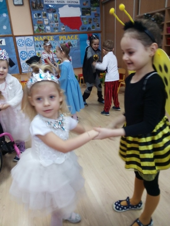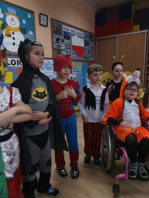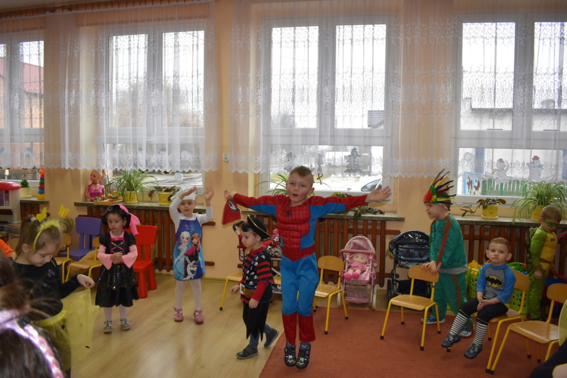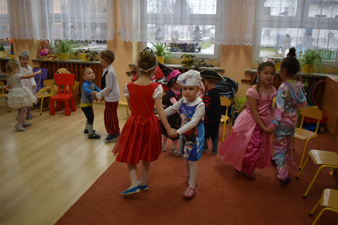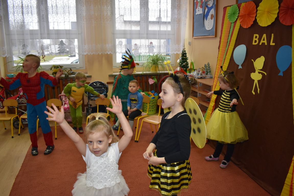 W tegorocznym karnawale bawili się nie tylko dorośli podczas szkolnej zabawy ale również bawiły się przedszkolaki . I to jak! Kto miał ochotę potańczyć i zabawić się, stawił się w pięknym stroju 28 stycznia br. o godz.10.00 na balu . Były pszczółki , motyle, lisek i jednorożec ; wróżki i królewny; piraci , batman supermen , Indianin i inni goście . Jednym słowem bardzo kolorowo! Dzieci prowadzone przez wodzireja - „ Zajączka’’ bawiły się wspaniale , o czym świadczą ich roześmiane buzie . Mają nadzieję , że to nie ostatnia zabawa, gdyż karnawał jeszcze trwa !
