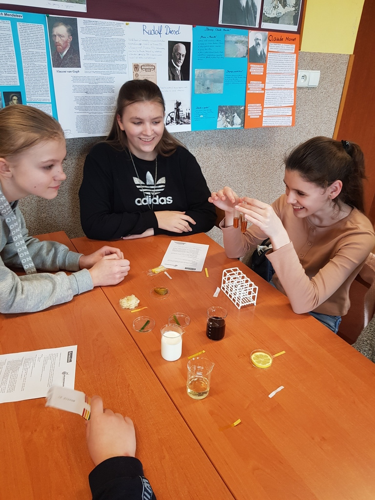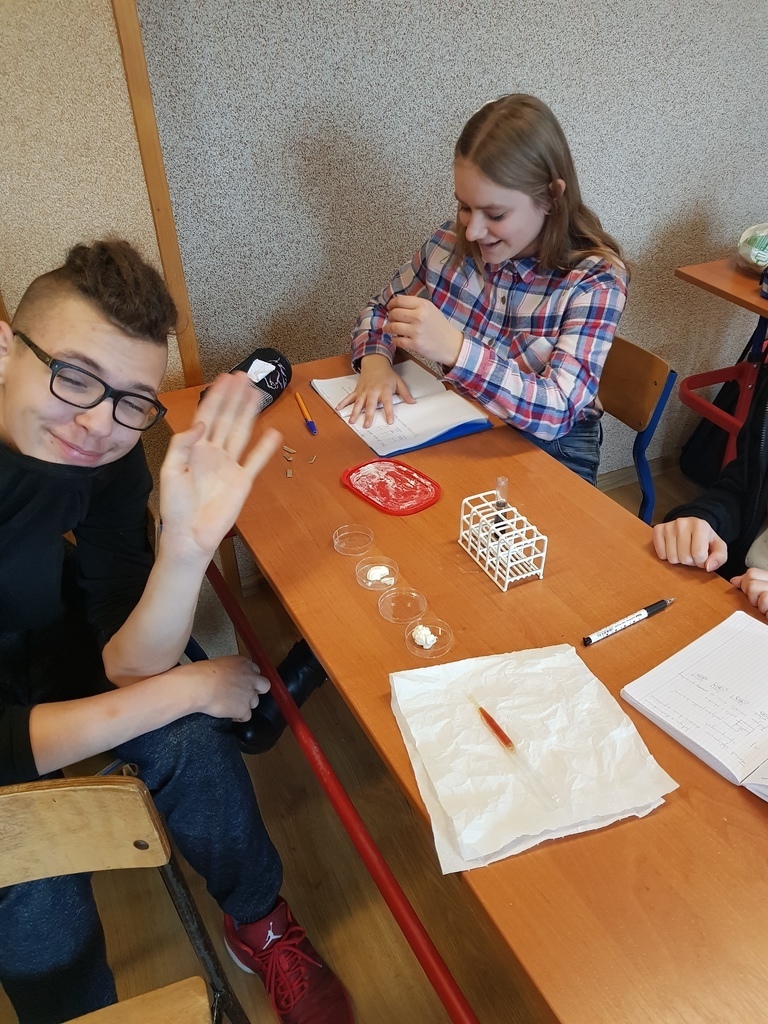 Uczniowie naszej szkoły biorą udział w projekcie KOLORATORIUM ŚNIEŻKI - wygraj pracownię marzeń. W ramach projektu uczniowie klas siódmych i ósmych na lekcjach chemii przeprowadzają doświadczenia łączące chemię z biologią.