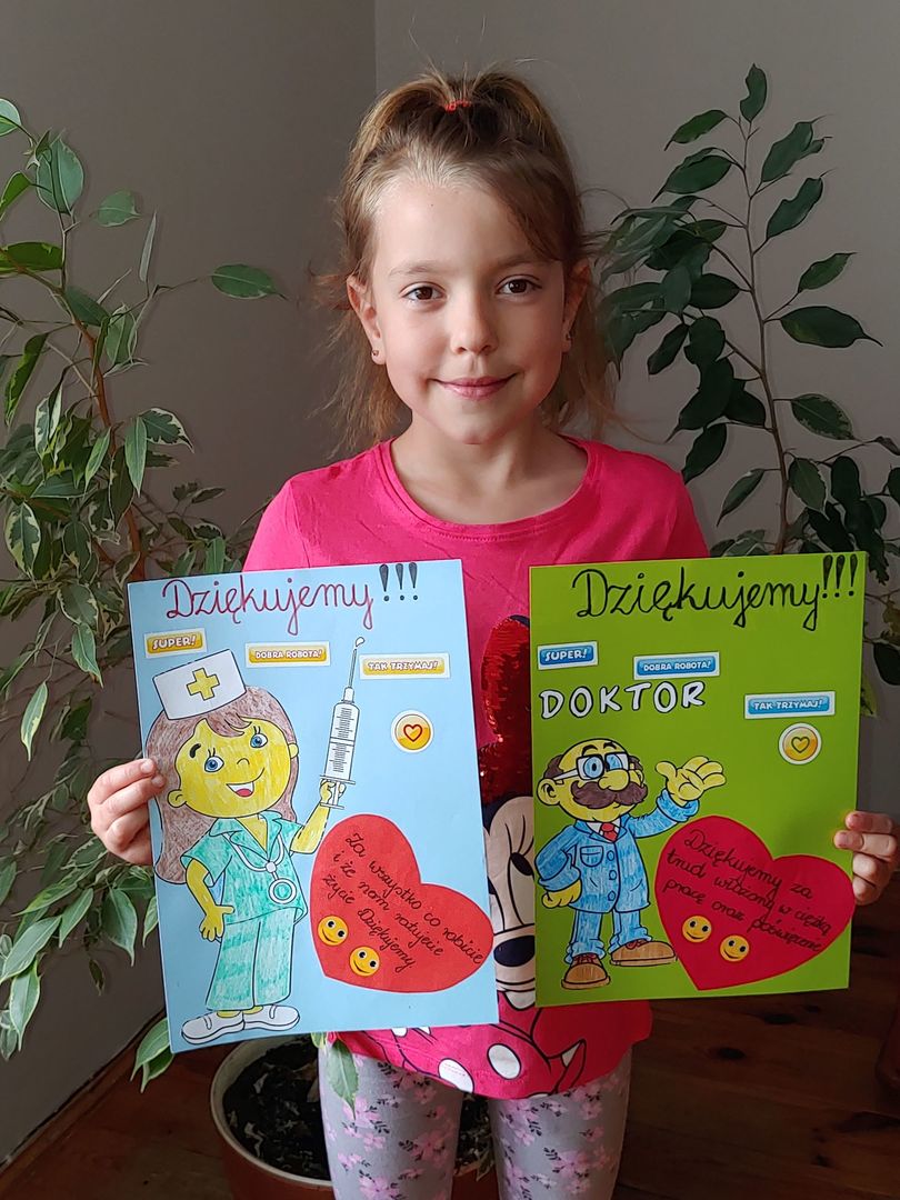 Pierwszaki z naszej szkoły przystąpiły do akcji pt. „Kartka dla medyka”.