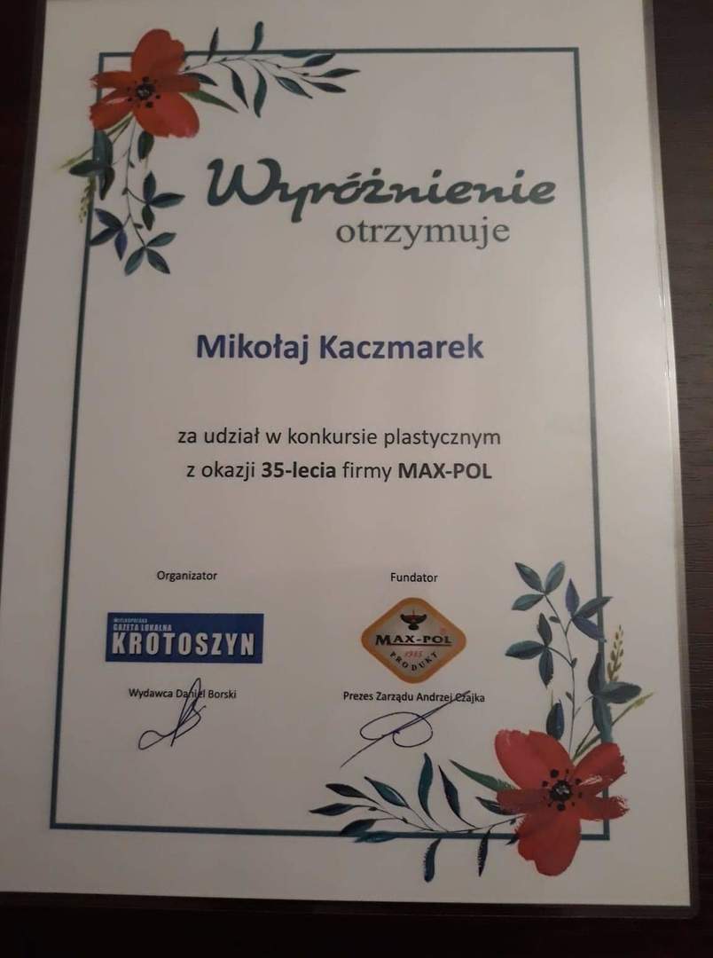 Z pośród 120 prac zostałem wyróżniony i dostałem bardzo ciekawe nagrody.
