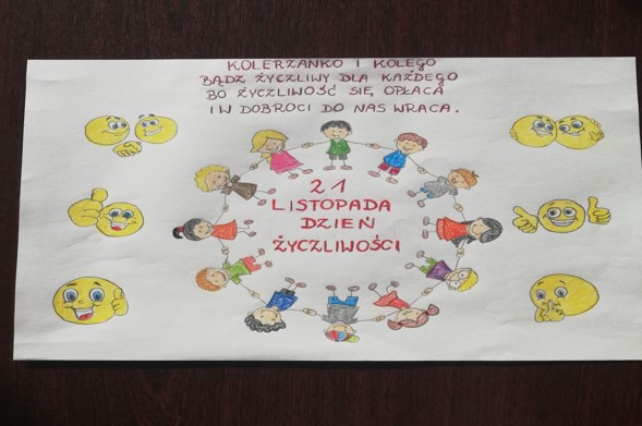 Chętni uczniowie z kl. II i III w wolnej chwili wykonali plakaty pt. :"ŻYCZLIWOŚĆ”.