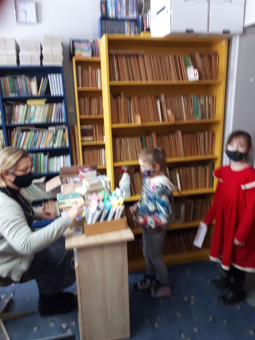 Po uroczystym pasowaniu nowi czytelnicy otrzymali pamiątkową zakładkę do książki. Na zakończenie nowo pasowani czytelnicy wypożyczyli sobie książki do domu i zobowiązali się często odwiedzać bibliotekę.