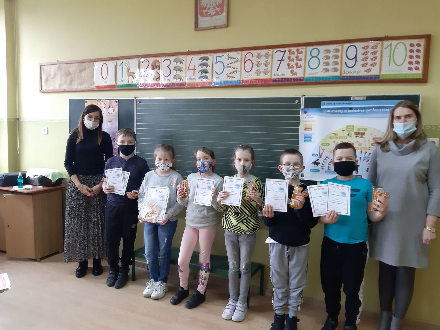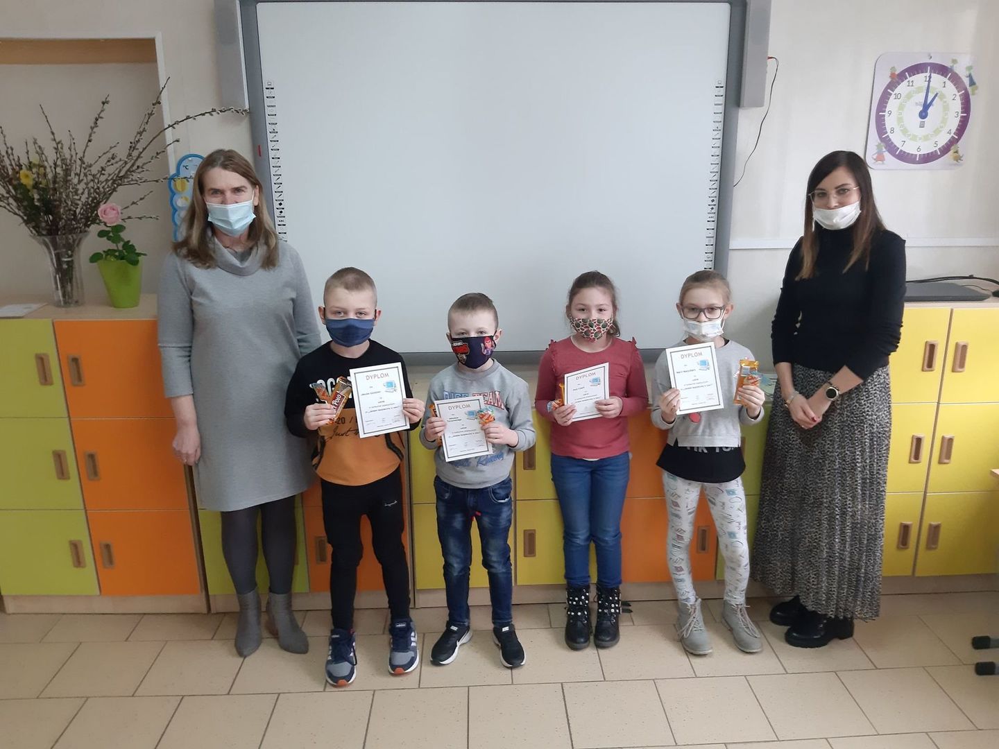 I tak wyróżnienia otrzymują: Antonina Gorwa z kl. II, Michalina Jarus z kl. V oraz Marcel Misiak z kl. VII b.