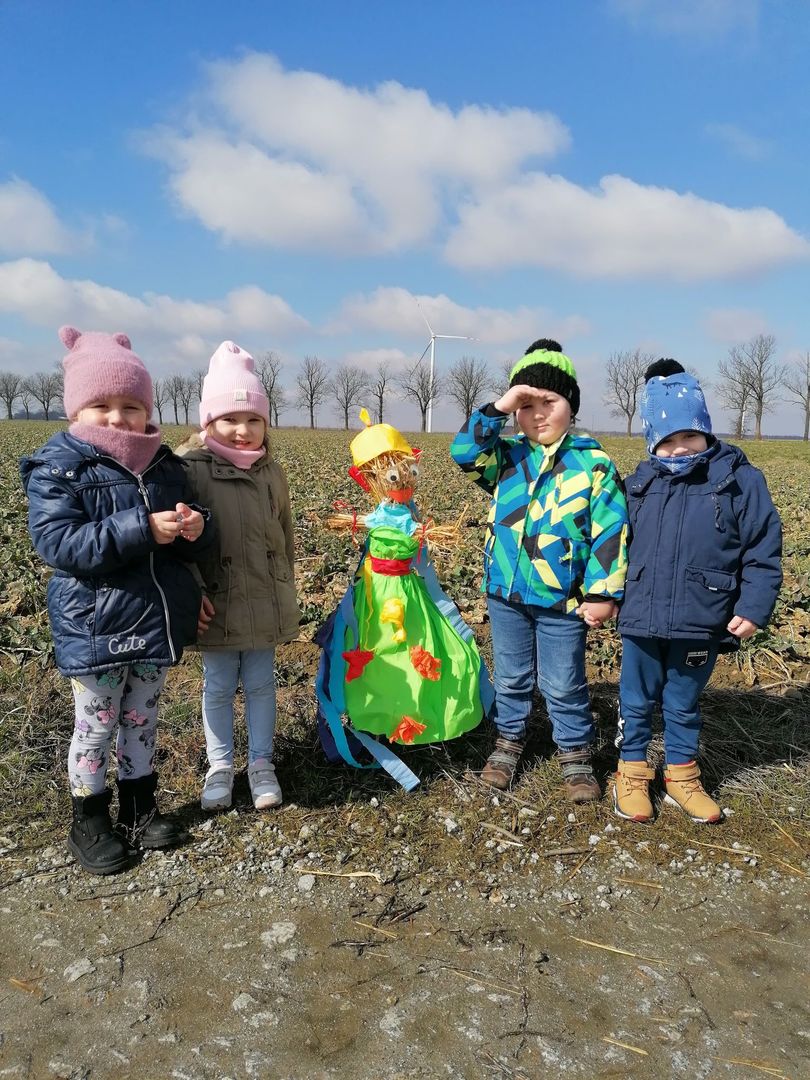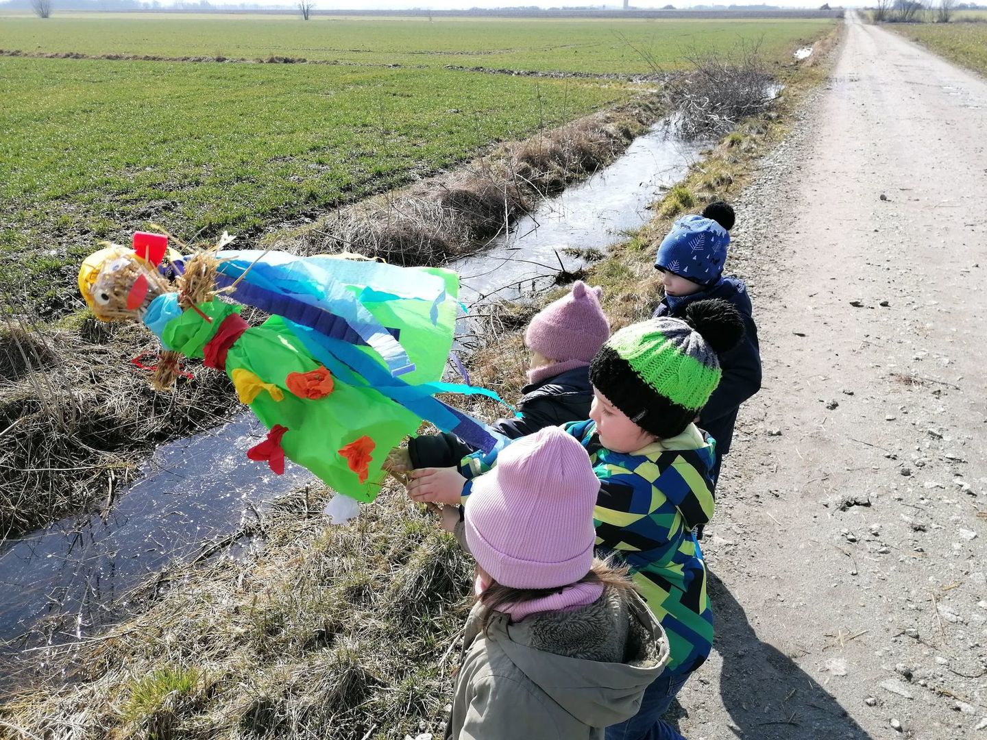 22 marca br. - Przedszkolaki z Wrotkowa rozpoczęły marsz ku Wiośnie, oczywiście z Marzanną na honorowym miejscu. Dzieci symbolicznie wrzuciły Marzannę do wody, wesoło krzycząc pożegnalne hasła. Zatem panowanie Zimy zakończyło się na dobre i Pani Wiosna mogła poczuć się najważniejsza!