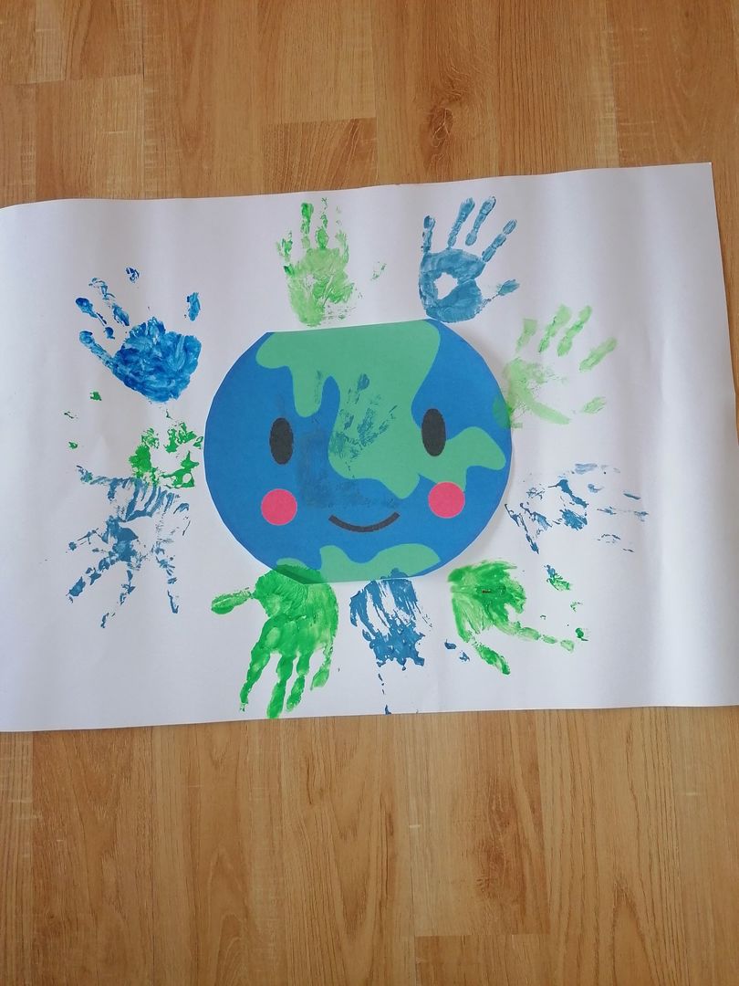 22 kwietnia obchodzimy Międzynarodowy Dzień Ziemi. W związku z tym wyjątkowym świętem, które obchodzone jest na całym świecie, dzieci brały aktywny udział w zajęciach plastycznych. Ponadto podczas zajęć i zabaw dzieci dowiedziały się jak dbać o środowisko i otaczającą nas przyrodę.