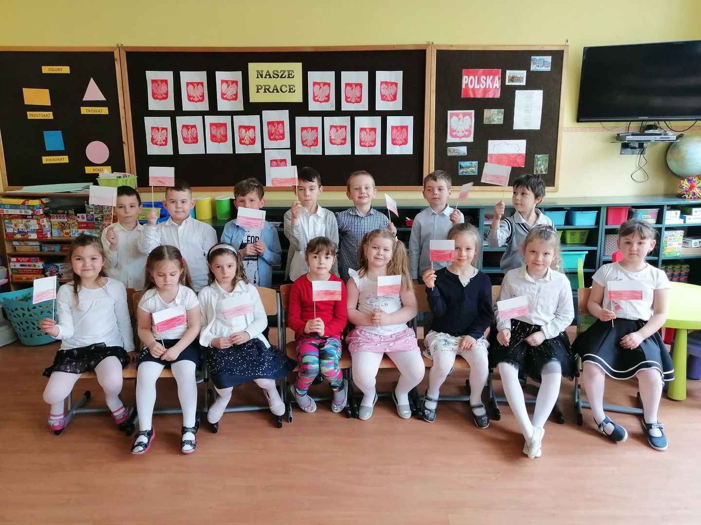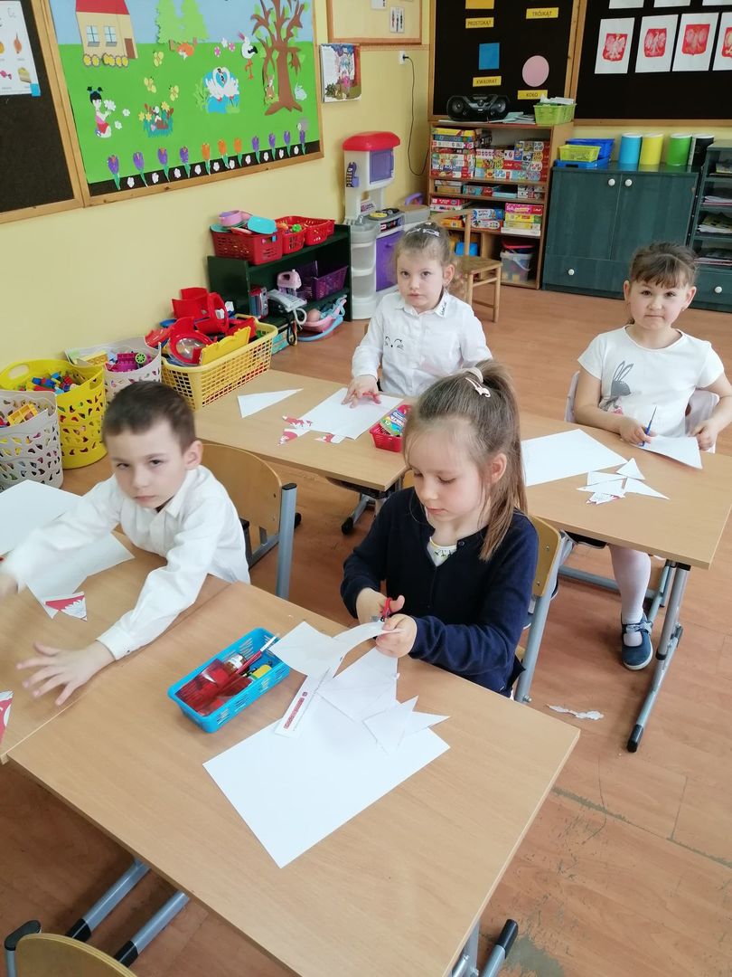 W ubiegłym tygodniu zajęcia w naszym przedszkolu poświęcone były świętom majowym. Z racji tego dzieci poznały oraz utrwaliły wiadomości z nimi wiązane. Wykonali prace plastyczne z wykorzystaniem różnorodnych technik, które przedstawiały symbole narodowe. Na koniec odśpiewaliśmy hymn Polski.