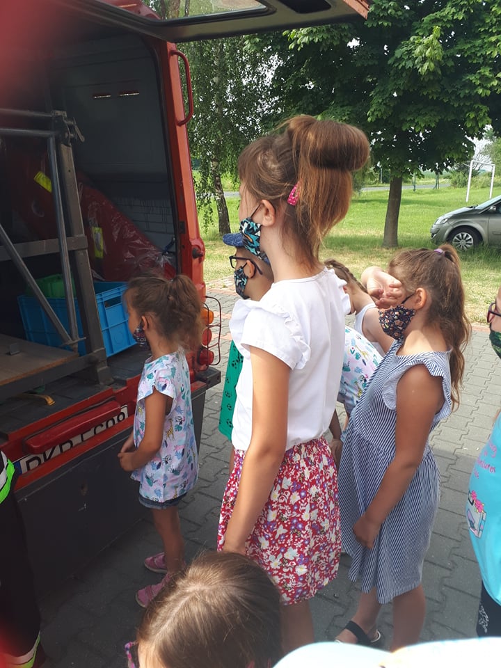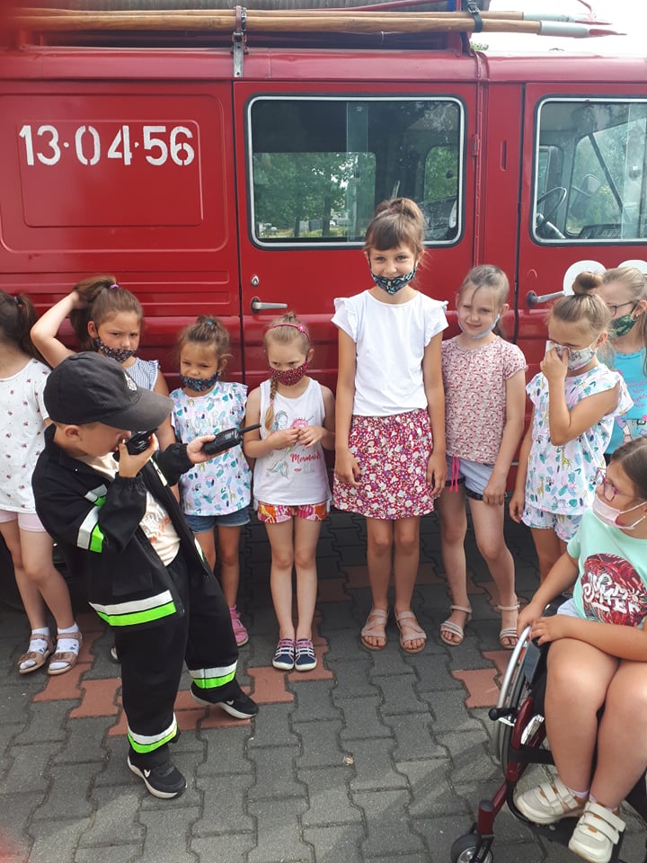 21 czewrca br. uczniowie klasy I odwiedzili siedzibę Ochotniczej Straży Pożarnej w Mokronosie. Głównym celem wycieczki było przybliżenie charakteru i znaczenia pracy strażaka. Uczniowie zapoznali się z zadaniami realizowanymi przez straż pożarną, sposobami alamowymi oraz zachowaniem się w przypadku zagrożenia. Dzieci utrwaliły sobie numer telefonu do Straży Pożarnej 998 i numer alarmowy 112. Na wycieczce został zaprezentowany sprzęt pożarniczy i ratunkowy jakim dysponują strażacy w swojej pracy. Niebywałą atrakcją była możliwość wejścia do wozu strażackiego.