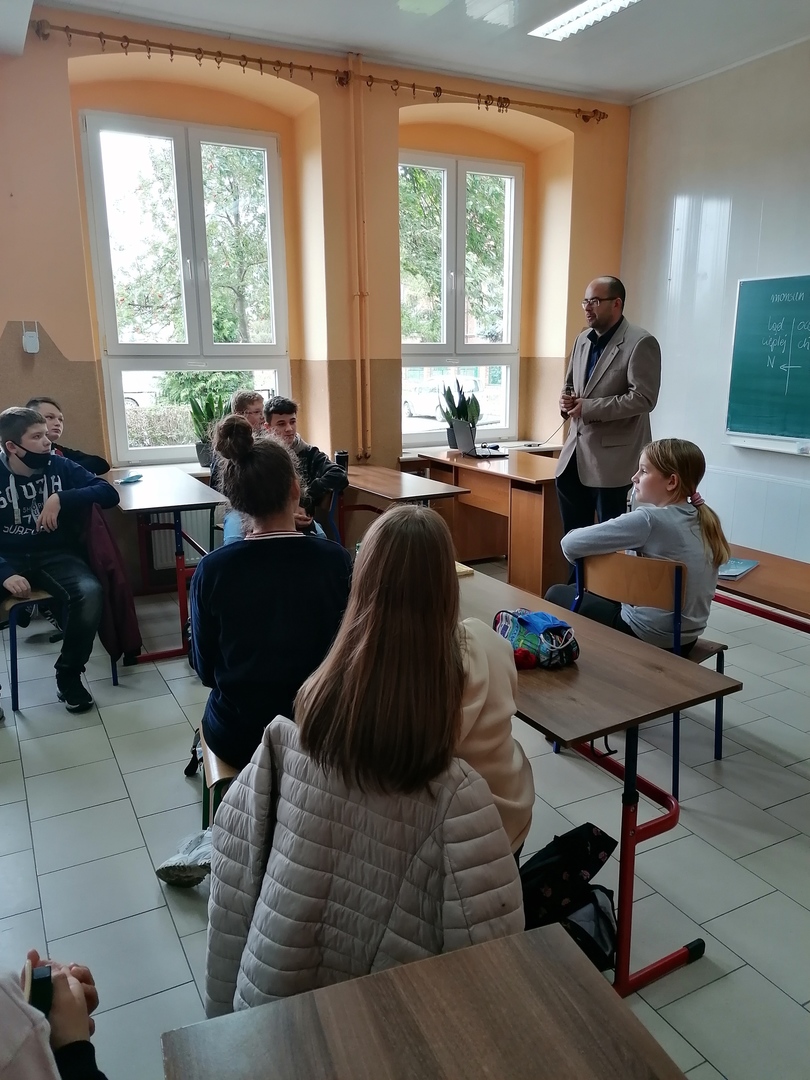 W ramach projektu Ministerstwa Klimatu i Środowiska przeprowadził wykład/lekcję dla uczniów klas ósmych o energetyce i energii jądrowej.