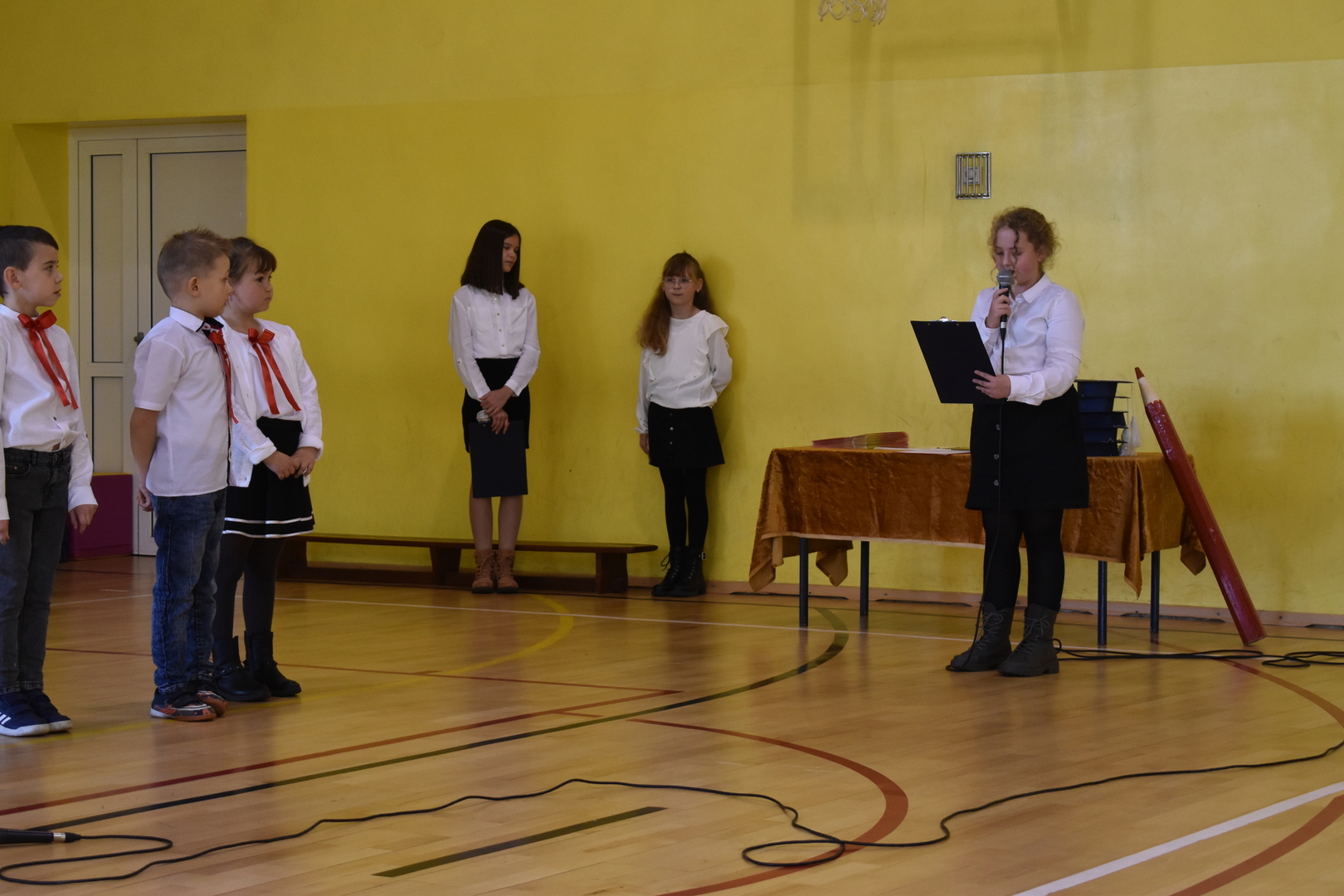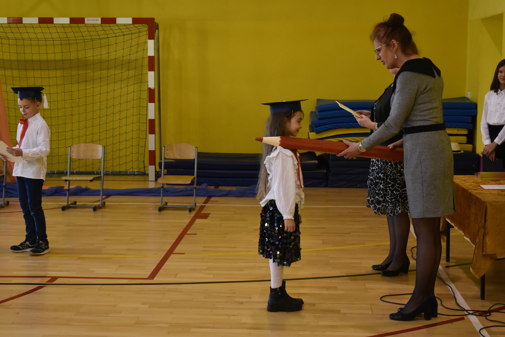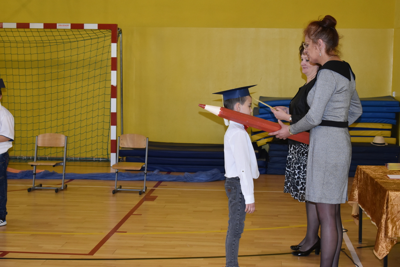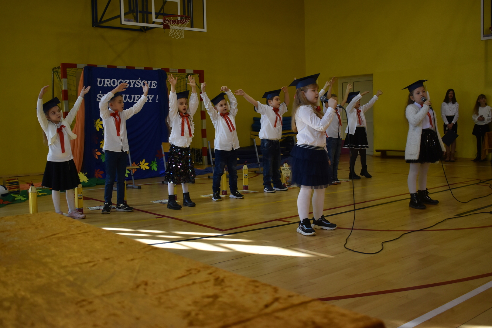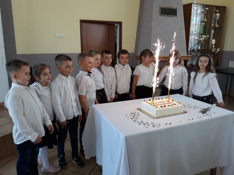 Dnia 28 października br. odbyło się w naszej szkole pasowanie klasy pierwszej. Grupa dziesięciu pierwszaków została włączona w poczet uczniów. Zanim jednak nasi najmłodsi uczniowie zostali oficjalnie przyjęci w szeregi społeczności szkolnej, zaprosili swoich rodziców na występ, który specjalnie przygotowali na tą wyjątkową okazję. Podczas uroczystości dzieci zaprezentowały swój dorobek artystyczny. Uczniowie zachwycili nie tylko swoimi umiejętnościami, ale również naturalnością, spontanicznością i ekspresją. Radośnie zaśpiewane piosenki, z przejęciem recytowane wiersze, wspaniałe tańce sprawiły, że na twarzach najbliższych pojawił się uśmiech i zadowolenie. Po części artystycznej nastąpił najważniejszy i niezwykle doniosły moment uroczystości, jakim było złożenie przez dzieci uroczystego ślubowania. Uczniowie z wielką powagą powtarzali za panią dyrektor tekst ślubowania mówiący o sumienności, pracowitości, szacunku i odpowiedzialności. Następnie pani dyrektor Alina Rączka dokonała aktu pasowania. Każdy uczeń otrzymał pamiątkowy dyplom. Rodzice obdarowali swe pociechy ołówkiem wypełnionym po brzegi słodkościami. Dla upamiętnienia tego wspaniałego wydarzenia pierwszaki pozowały do pamiątkowych zdjęć. Ostatnim, miłym akcentem tego wyjątkowego dnia był słodki poczęstunek zorganizowany przez rodziców w Sali Wiejskiej w Mokronosie. Ogromny tort wystarczył dla wszystkich ucztujących. Naszym najmłodszym uczniom życzymy sukcesów, wytrwałości w zdobywaniu wiedzy oraz tego, by nauka była dla nich inspiracją do odkrywania swoich talentów. Niech szkoła będzie dla nich miejscem zdobywania wiedzy i budowania relacji rówieśniczych. Oby zawsze mogły uczyć się w szkole, gdzie nie ma zagubionych, smutnych i odrzuconych. I gdzie pandemia będzie tylko odległą historią!