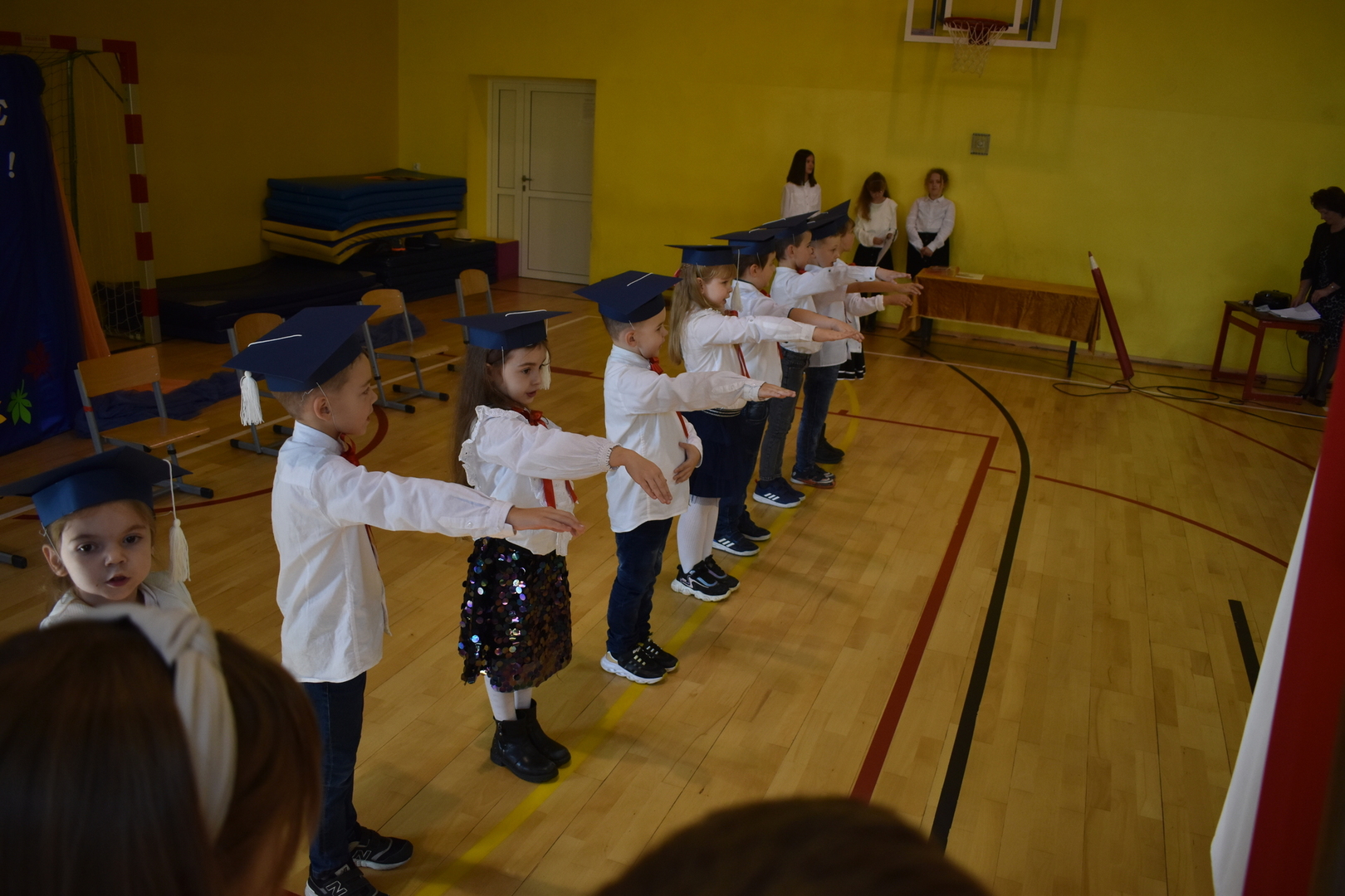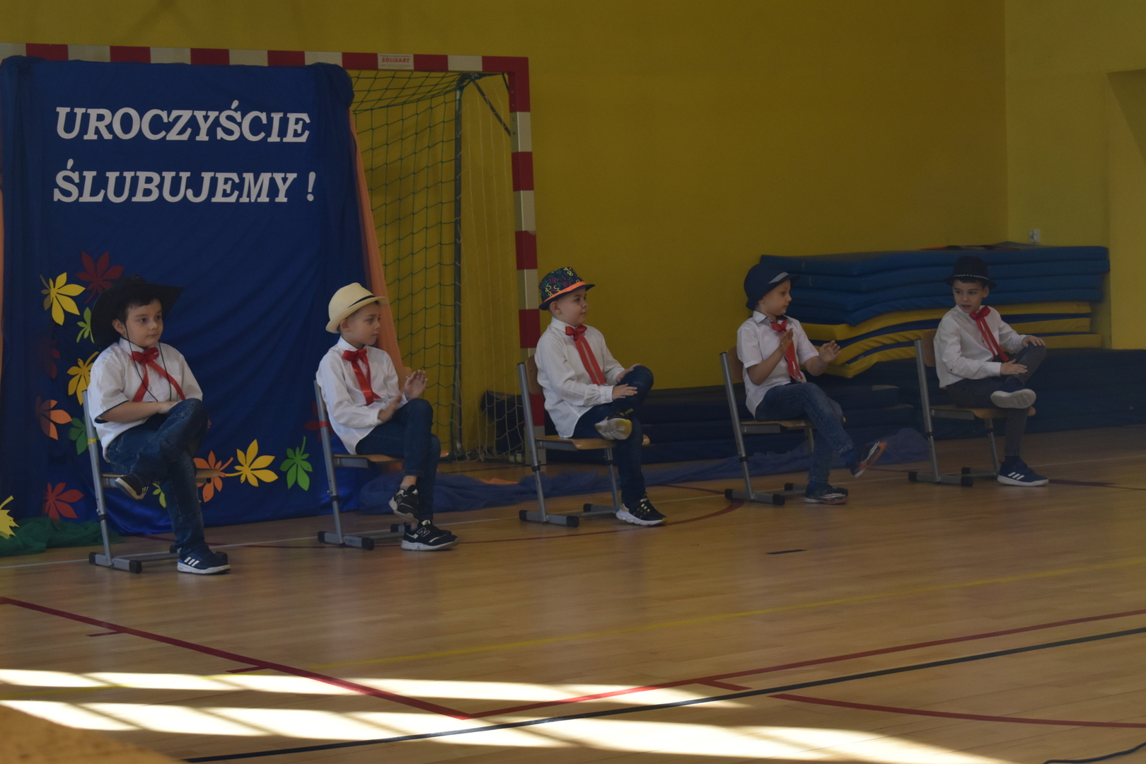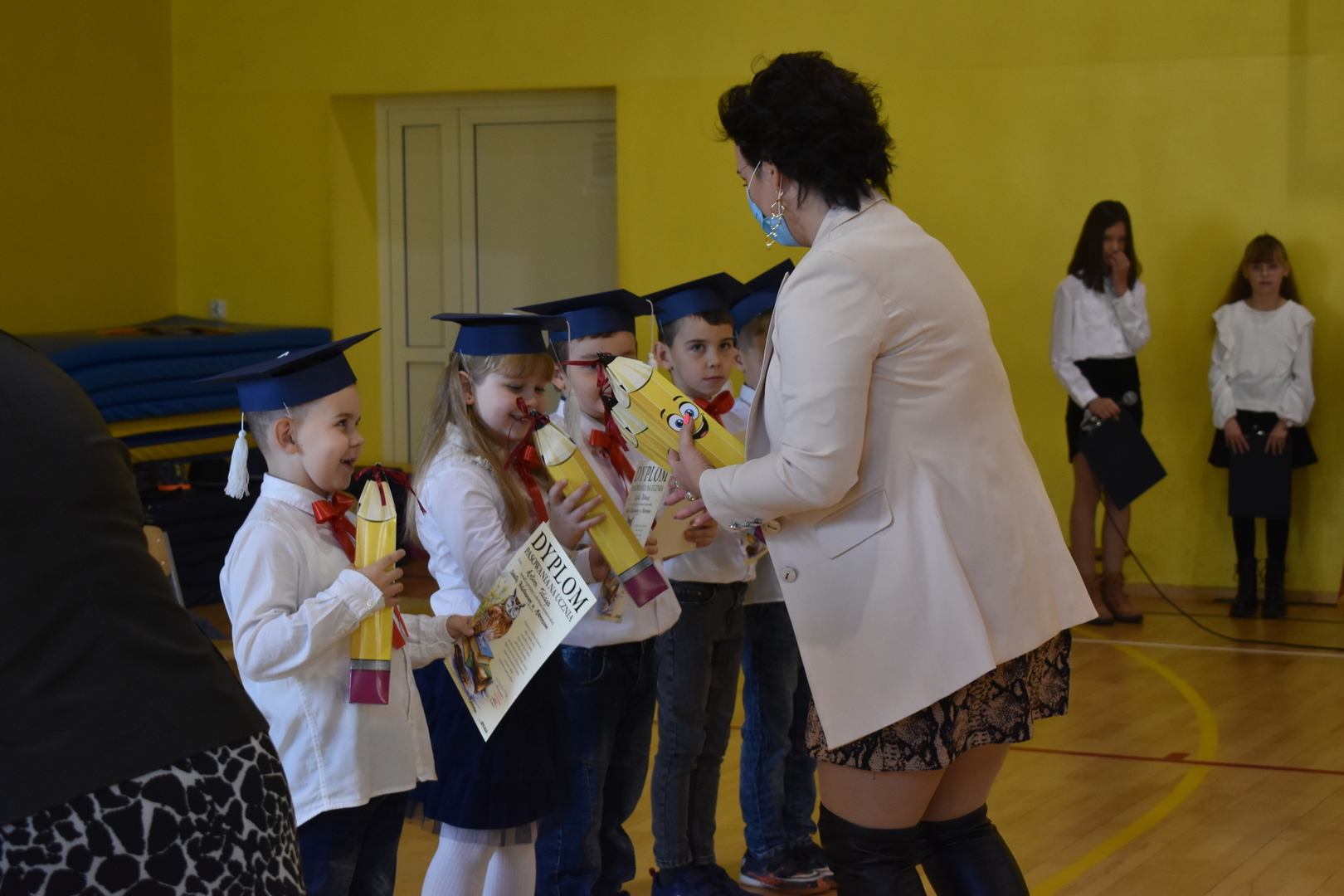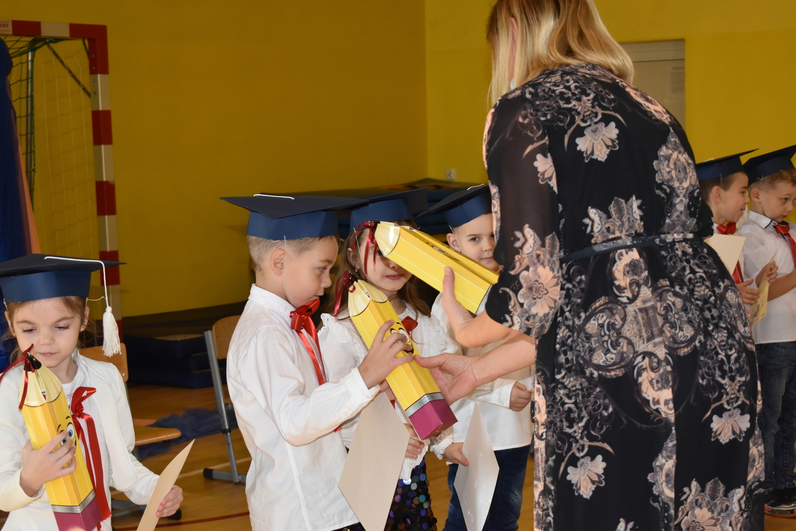 Dnia 28 października br. odbyło się w naszej szkole pasowanie klasy pierwszej. Grupa dziesięciu pierwszaków została włączona w poczet uczniów. Zanim jednak nasi najmłodsi uczniowie zostali oficjalnie przyjęci w szeregi społeczności szkolnej, zaprosili swoich rodziców na występ, który specjalnie przygotowali na tą wyjątkową okazję. Podczas uroczystości dzieci zaprezentowały swój dorobek artystyczny. Uczniowie zachwycili nie tylko swoimi umiejętnościami, ale również naturalnością, spontanicznością i ekspresją. Radośnie zaśpiewane piosenki, z przejęciem recytowane wiersze, wspaniałe tańce sprawiły, że na twarzach najbliższych pojawił się uśmiech i zadowolenie. Po części artystycznej nastąpił najważniejszy i niezwykle doniosły moment uroczystości, jakim było złożenie przez dzieci uroczystego ślubowania. Uczniowie z wielką powagą powtarzali za panią dyrektor tekst ślubowania mówiący o sumienności, pracowitości, szacunku i odpowiedzialności. Następnie pani dyrektor Alina Rączka dokonała aktu pasowania. Każdy uczeń otrzymał pamiątkowy dyplom. Rodzice obdarowali swe pociechy ołówkiem wypełnionym po brzegi słodkościami. Dla upamiętnienia tego wspaniałego wydarzenia pierwszaki pozowały do pamiątkowych zdjęć. Ostatnim, miłym akcentem tego wyjątkowego dnia był słodki poczęstunek zorganizowany przez rodziców w Sali Wiejskiej w Mokronosie. Ogromny tort wystarczył dla wszystkich ucztujących. Naszym najmłodszym uczniom życzymy sukcesów, wytrwałości w zdobywaniu wiedzy oraz tego, by nauka była dla nich inspiracją do odkrywania swoich talentów. Niech szkoła będzie dla nich miejscem zdobywania wiedzy i budowania relacji rówieśniczych. Oby zawsze mogły uczyć się w szkole, gdzie nie ma zagubionych, smutnych i odrzuconych. I gdzie pandemia będzie tylko odległą historią!