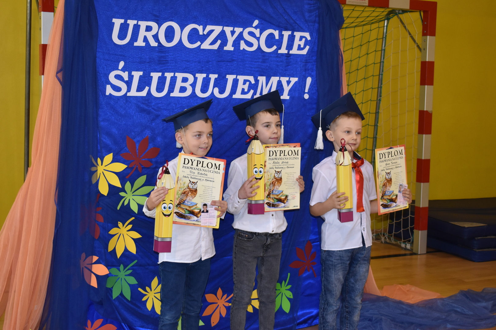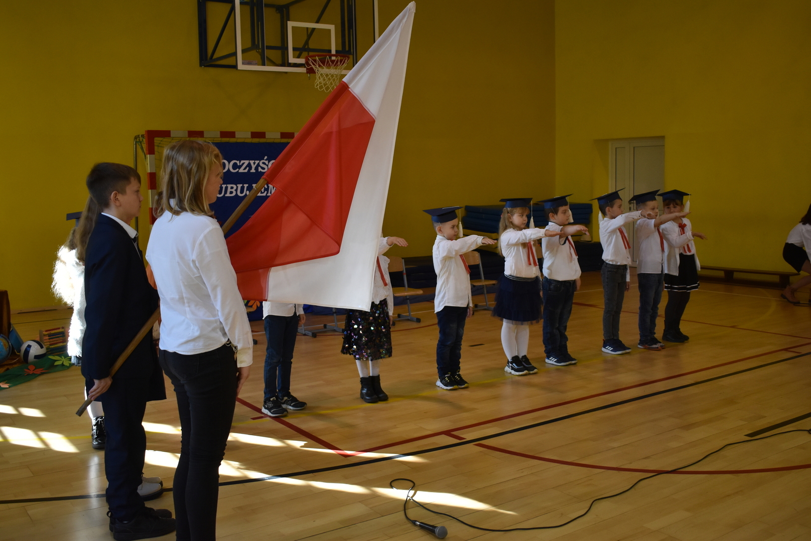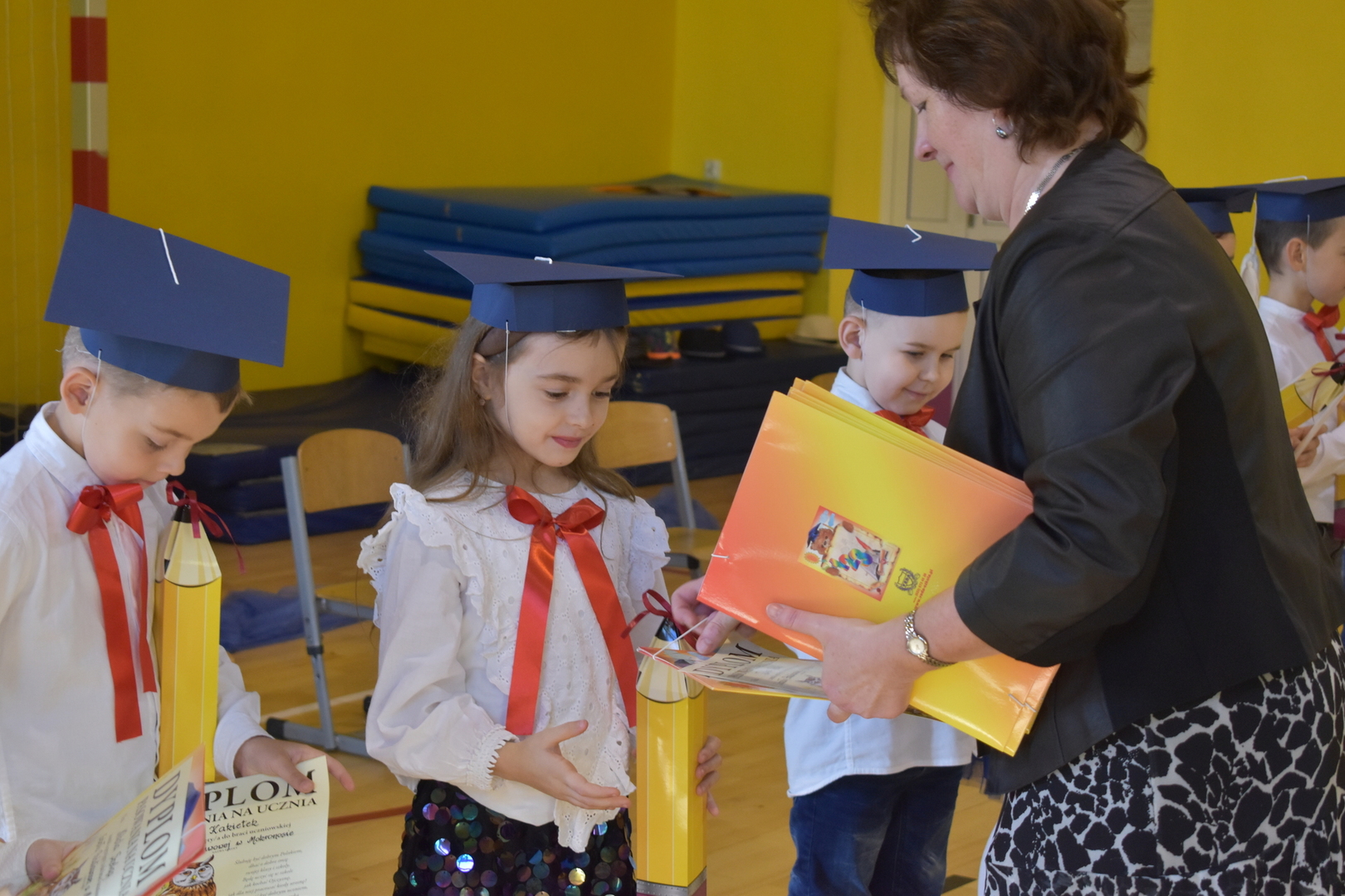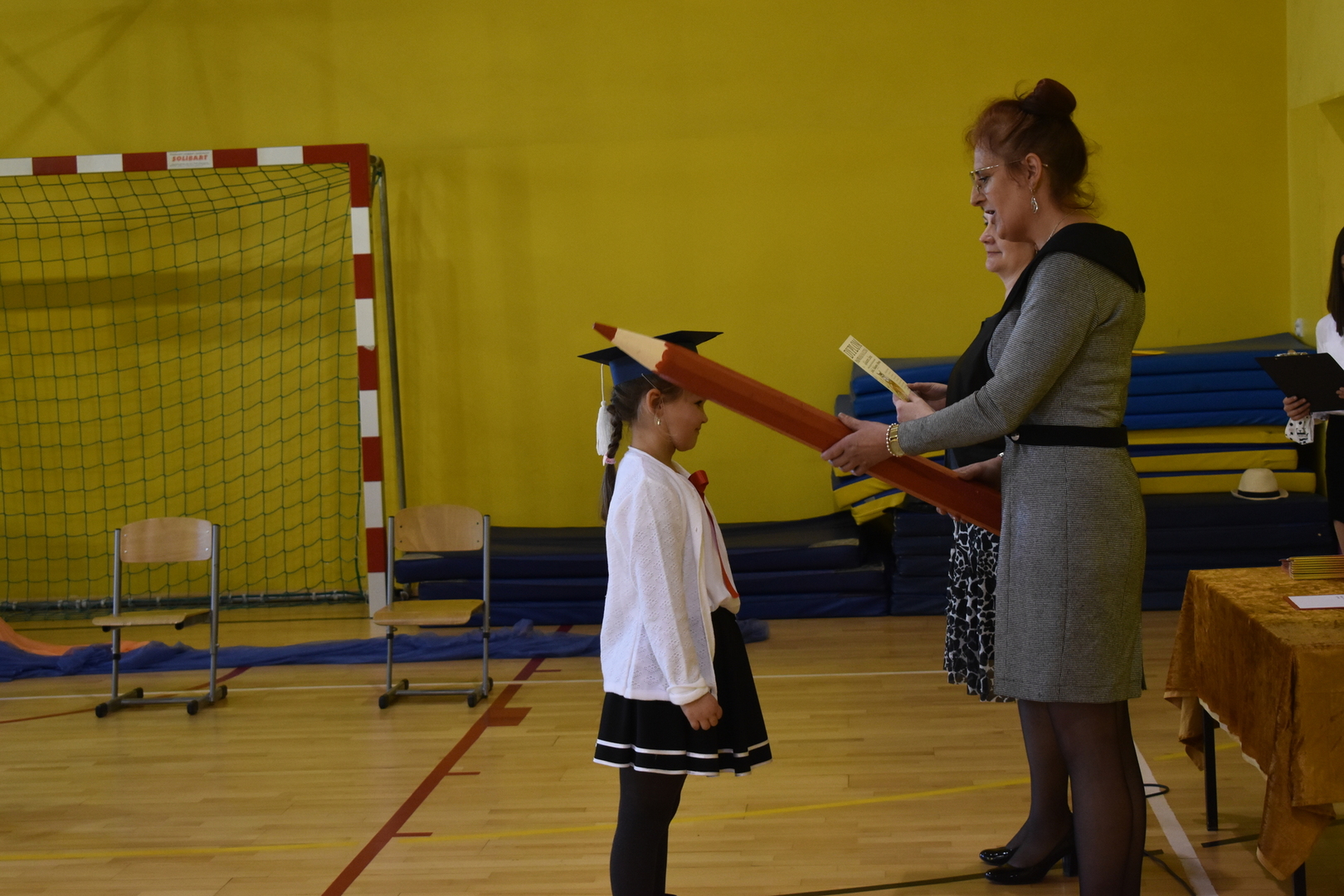Dnia 28 października br. odbyło się w naszej szkole pasowanie klasy pierwszej. Grupa dziesięciu pierwszaków została włączona w poczet uczniów. Zanim jednak nasi najmłodsi uczniowie zostali oficjalnie przyjęci w szeregi społeczności szkolnej, zaprosili swoich rodziców na występ, który specjalnie przygotowali na tą wyjątkową okazję. Podczas uroczystości dzieci zaprezentowały swój dorobek artystyczny. Uczniowie zachwycili nie tylko swoimi umiejętnościami, ale również naturalnością, spontanicznością i ekspresją. Radośnie zaśpiewane piosenki, z przejęciem recytowane wiersze, wspaniałe tańce sprawiły, że na twarzach najbliższych pojawił się uśmiech i zadowolenie. Po części artystycznej nastąpił najważniejszy i niezwykle doniosły moment uroczystości, jakim było złożenie przez dzieci uroczystego ślubowania. Uczniowie z wielką powagą powtarzali za panią dyrektor tekst ślubowania mówiący o sumienności, pracowitości, szacunku i odpowiedzialności. Następnie pani dyrektor Alina Rączka dokonała aktu pasowania. Każdy uczeń otrzymał pamiątkowy dyplom. Rodzice obdarowali swe pociechy ołówkiem wypełnionym po brzegi słodkościami. Dla upamiętnienia tego wspaniałego wydarzenia pierwszaki pozowały do pamiątkowych zdjęć. Ostatnim, miłym akcentem tego wyjątkowego dnia był słodki poczęstunek zorganizowany przez rodziców w Sali Wiejskiej w Mokronosie. Ogromny tort wystarczył dla wszystkich ucztujących. Naszym najmłodszym uczniom życzymy sukcesów, wytrwałości w zdobywaniu wiedzy oraz tego, by nauka była dla nich inspiracją do odkrywania swoich talentów. Niech szkoła będzie dla nich miejscem zdobywania wiedzy i budowania relacji rówieśniczych. Oby zawsze mogły uczyć się w szkole, gdzie nie ma zagubionych, smutnych i odrzuconych. I gdzie pandemia będzie tylko odległą historią!