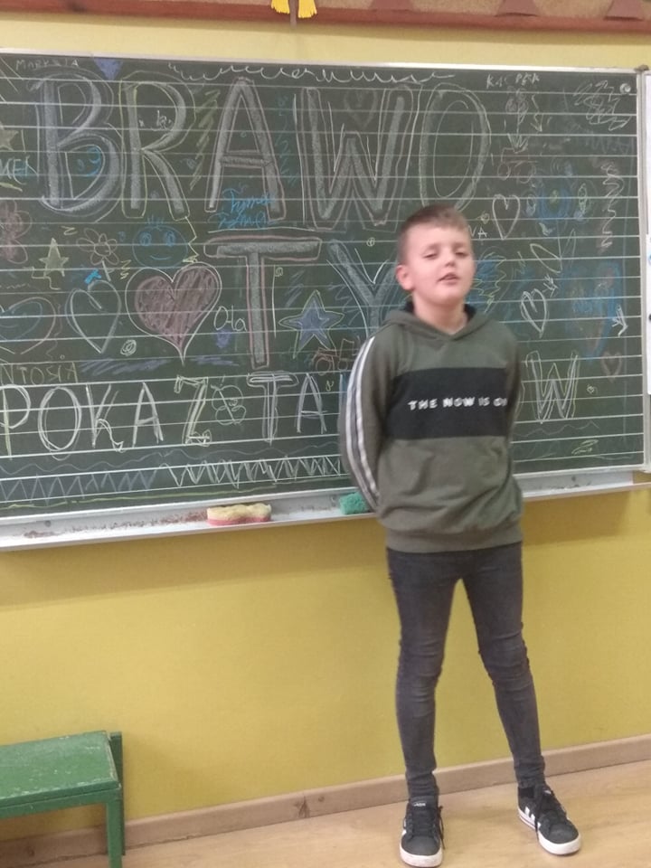 Dnia 2 listopada w klasie III odbył się pokaz talentów „Brawo TY”, podczas którego uczniowie mogli zaprezentować swoje umiejętności i pasje. Konkurs miał na celu rozwijanie kreatywności uczniów, promowanie i odkrywanie nowych talentów, popularyzację działań artystycznych oraz propagowanie alternatywnych form spędzania wolnego czasu. Tego dnia każdy uczestnik miał na szkolnej scenie swoje „5 minut” sławy. Mimo towarzyszącej tremy, wszyscy spisali się świetnie wykazując przed publicznością nieprzeciętny talent. Podziwiam Waszą odwagę, zaangażowanie i umiejętność radzenia sobie ze stresem. Zaprezentowaliście się wspaniale – wielkie brawa!! Musimy pamiętać, że w każdym drzemie jakiś talent – trzeba go tylko w sobie odnaleźć, a potem starannie pielęgnować.