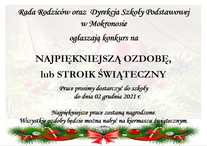 • Konkurs na najpiękniejszą ozdobę lub stroik świąteczny!...