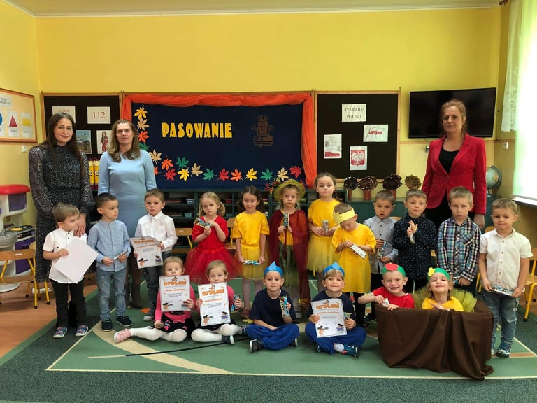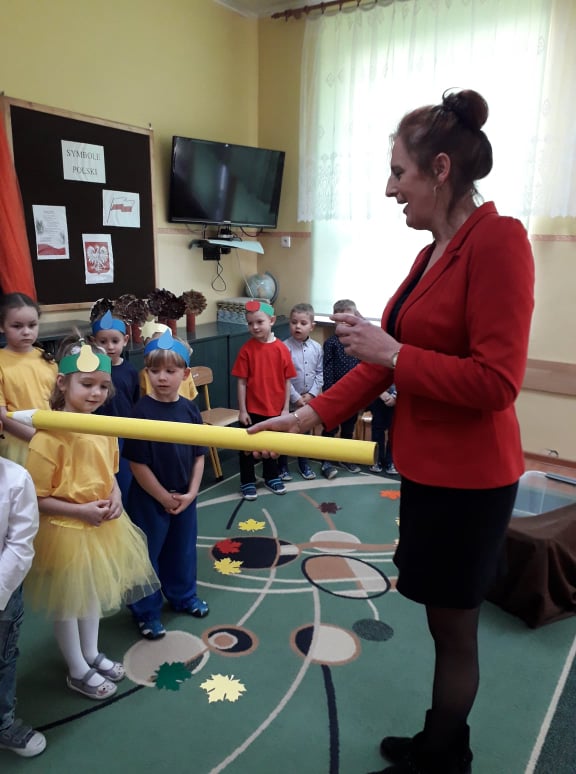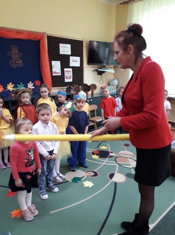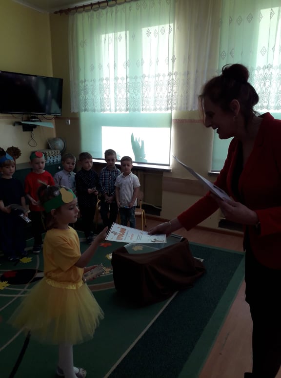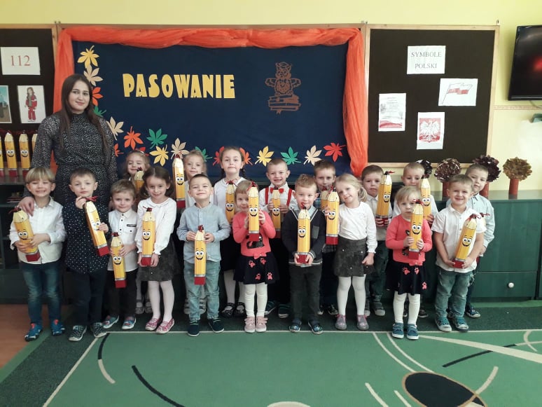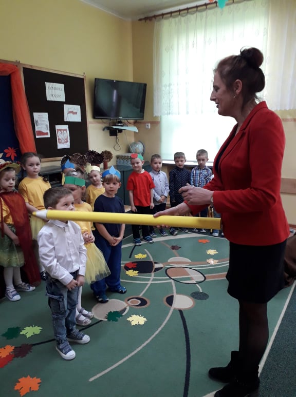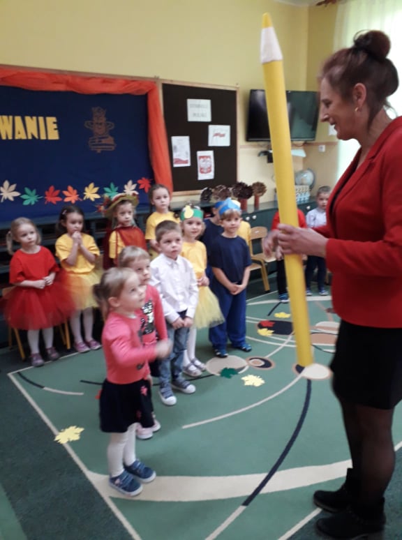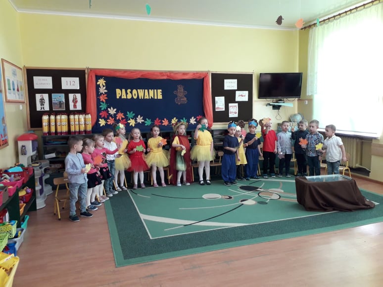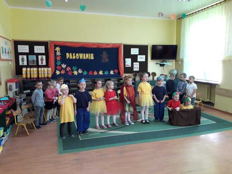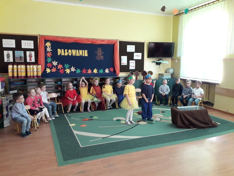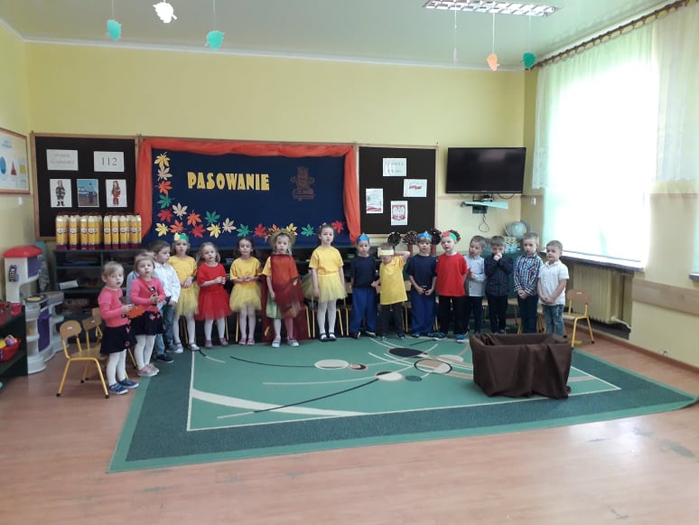 Dzieci wykazały się ogromną zdolnością przez pokaz tańca, śpiewu oraz recytacji wierszy. Tego dnia przybyła również Pani Jesień aby powitać przedszkolaków i przekazać im ważne zasady, które obowiązują w przedszkolu. Dzieci obiecały zgodnie się bawić, nie hałasować, odnosić się z szacunkiem, być grzecznym, stosować trzy magiczne słowa: proszę, przepraszam oraz dziękuję. Po złożonej obietnicy, pani dyrektor dokonała uroczystego pasowania każdego dziecka na przedszkolaka. Poprzez dokonanie tego aktu w grupie 4-5 latków każde dziecko jest już prawdziwym przedszkolakiem. Uroczystość ta w dużym stopniu stanowi zakończenie procesu adaptacyjnego dzieci do warunków i zasad panujących w przedszkolu. Podczas uroczystości pasowania dzieci swoim zachowaniem potwierdziły, że dobrze się czują w przedszkolu.
