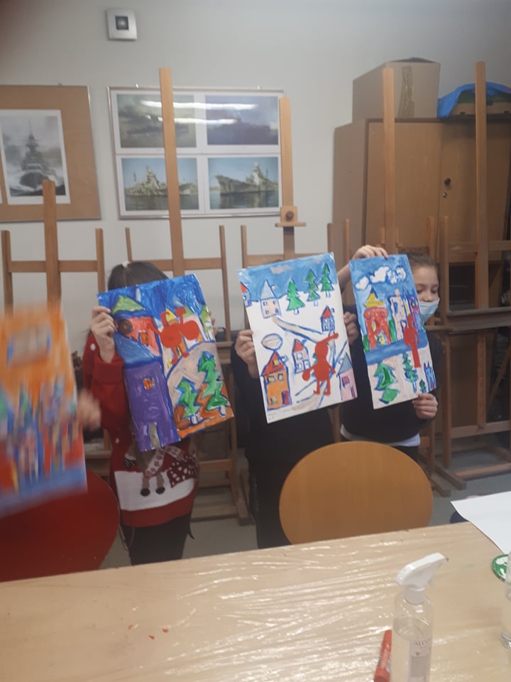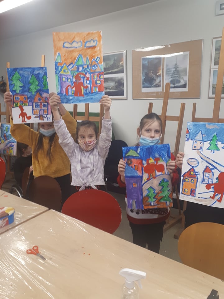 1 grudnia 2021 r. uczniowie klasy drugiej wraz z wychowawczynią udali się do Ośrodka Kultury w Koźminie Wlkp., gdzie brali udział w warsztatach plastycznych pt. "Święty Mikołaj". Na początku spotkania p. Mariola Malinowska przedstawiła dzieciom historię Św. Mikołaja. Następnie mali artyści z ogromnym entuzjazmem zabrali się do pracy. Powstały piękne dzieła, które teraz zdobią salę lekcyjną. Czas spędzony na twórczych działaniach przyniósł wszystkim wiele radości.