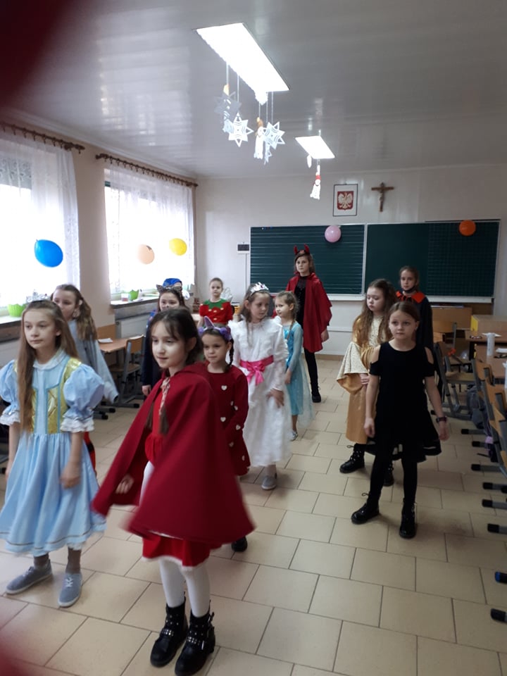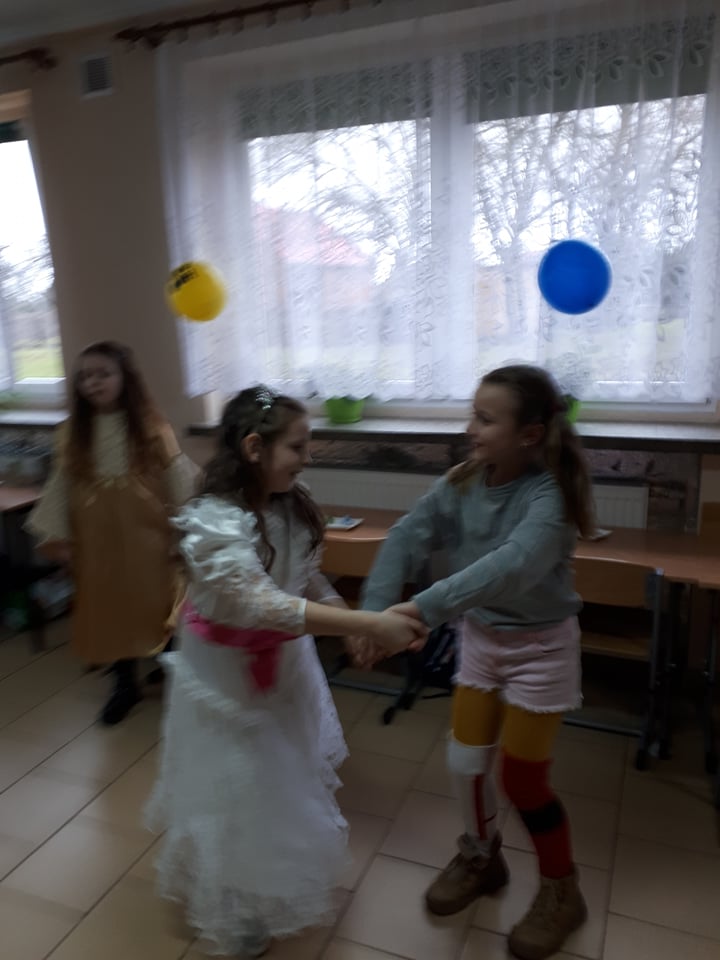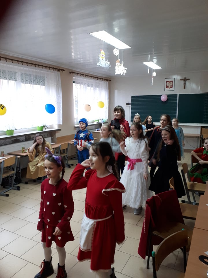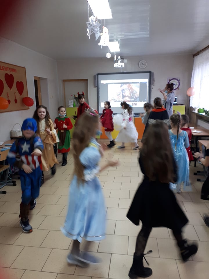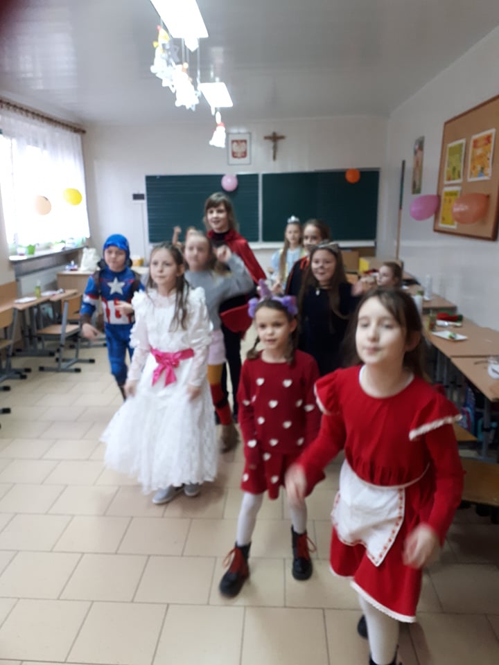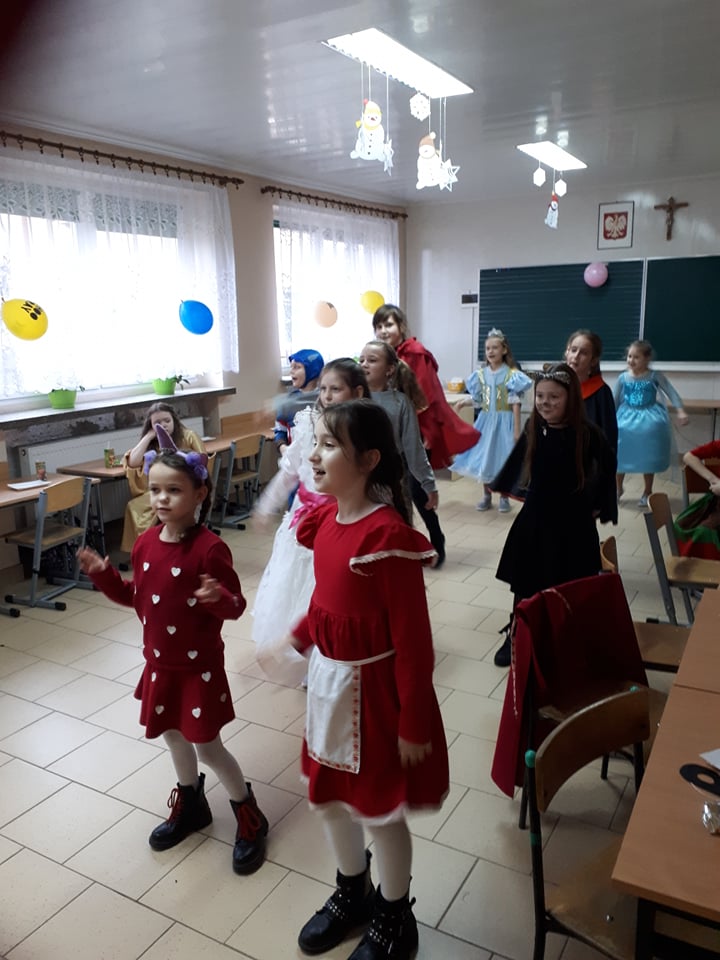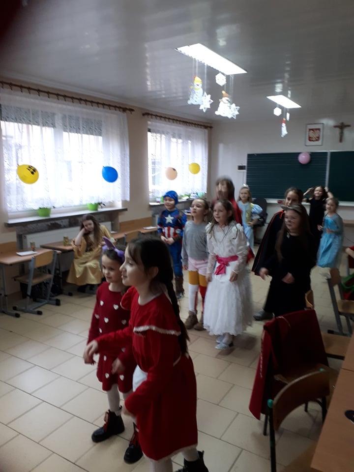Karnawał to wspaniały okres zimowych balów, zabaw, a także nieodłączny element dzieciństwa. Jest on wspaniałą atrakcją i bardzo lubianą przez dzieci formą rozrywki, dostarcza im wiele radości. Tak też było u nas w dniu 9 lutego, kiedy odbył się bal karnawałowy. Tego dnia w szkole pojawiły się kolorowe postacie. Uczniowie przebrani byli za bohaterów bajek, filmów. Po wielkiej prezentacji strojów rozpoczęły się tańce - przy rytmach wesołej muzyki, były one przeplatane zabawami. Oczywiście nie zabrakło słodkiego poczętunku. Kiedy czas zabawy dobiegł końca, dzieci z żalem opuszczały salę. Do domu wracały we wspaniałych nastrojach, dzieląc się z rodzicami swoimi przeżyciami.