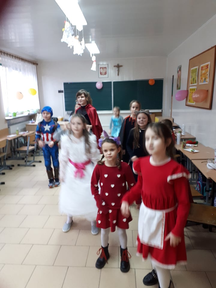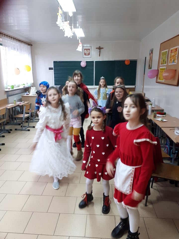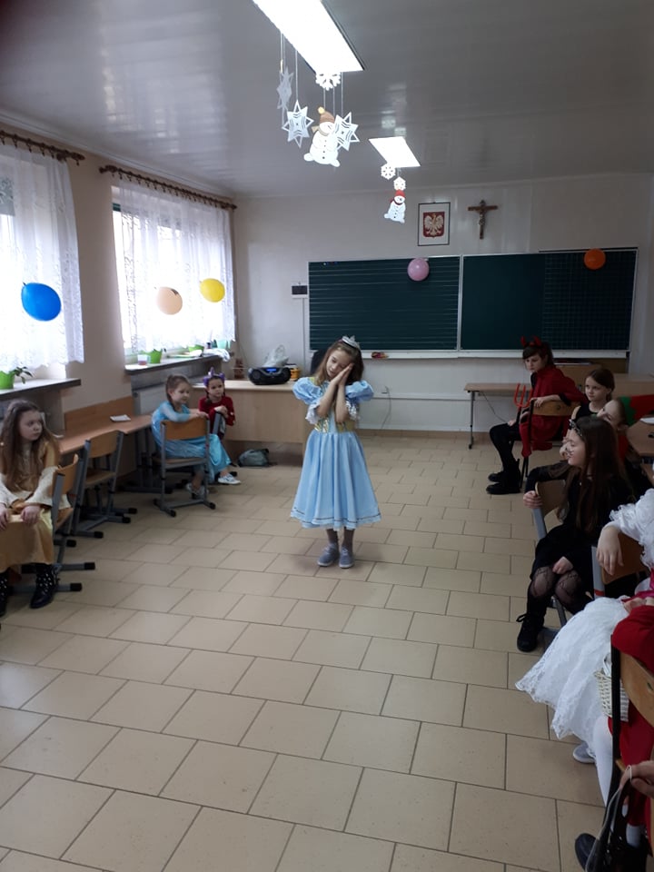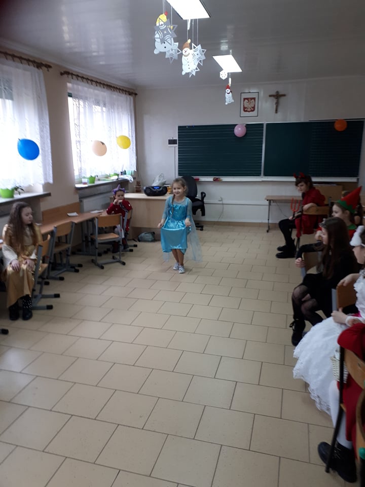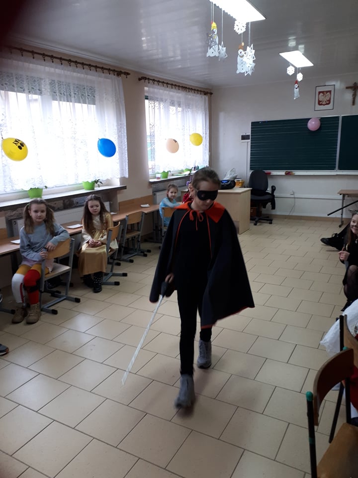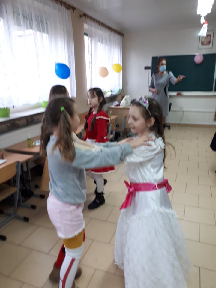 Karnawał to wspaniały okres zimowych balów, zabaw, a także nieodłączny element dzieciństwa. Jest on wspaniałą atrakcją i bardzo lubianą przez dzieci formą rozrywki, dostarcza im wiele radości. Tak też było u nas w dniu 9 lutego, kiedy odbył się bal karnawałowy. Tego dnia w szkole pojawiły się kolorowe postacie. Uczniowie przebrani byli za bohaterów bajek, filmów. Po wielkiej prezentacji strojów rozpoczęły się tańce - przy rytmach wesołej muzyki, były one przeplatane zabawami. Oczywiście nie zabrakło słodkiego poczętunku. Kiedy czas zabawy dobiegł końca, dzieci z żalem opuszczały salę. Do domu wracały we wspaniałych nastrojach, dzieląc się z rodzicami swoimi przeżyciami.