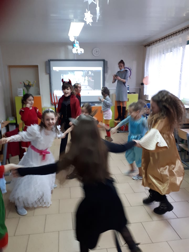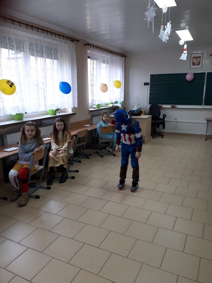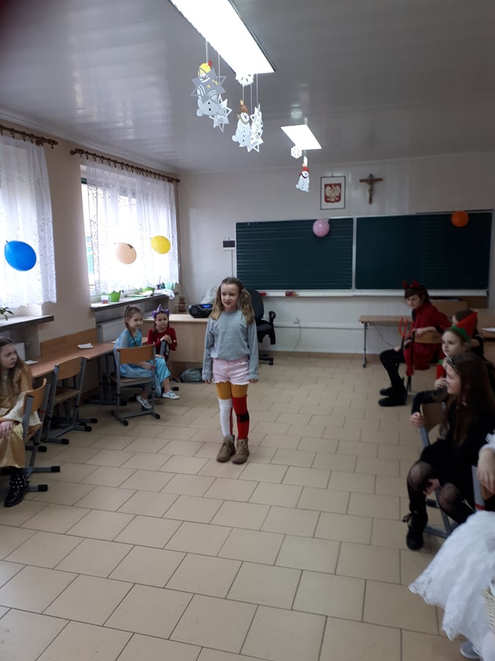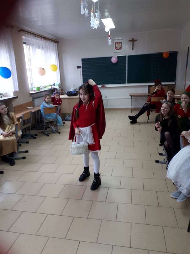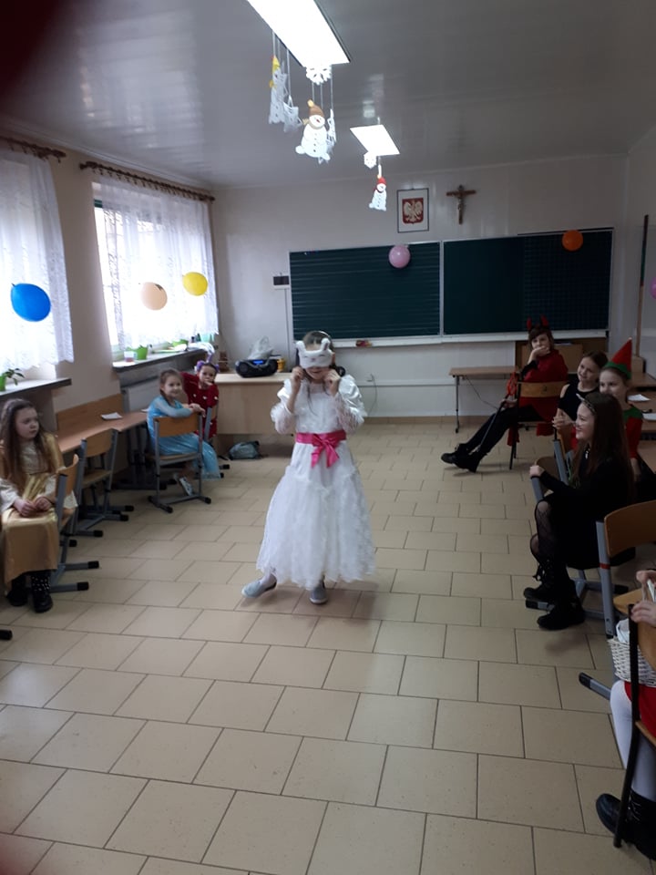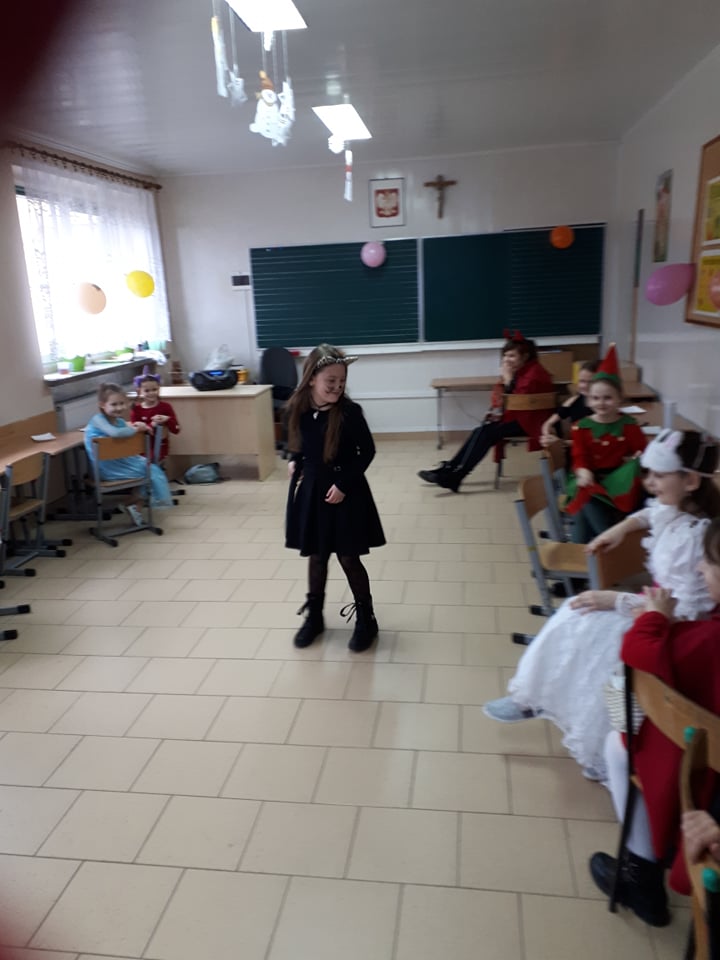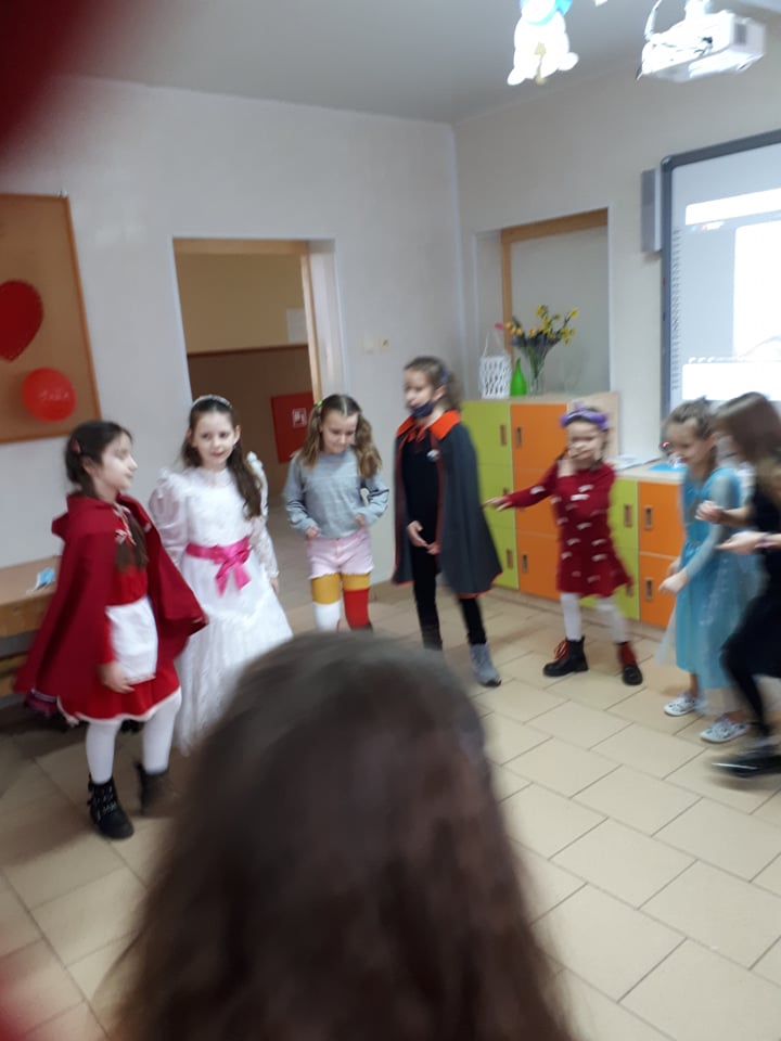 Karnawał to wspaniały okres zimowych balów, zabaw, a także nieodłączny element dzieciństwa. Jest on wspaniałą atrakcją i bardzo lubianą przez dzieci formą rozrywki, dostarcza im wiele radości. Tak też było u nas w dniu 9 lutego, kiedy odbył się bal karnawałowy. Tego dnia w szkole pojawiły się kolorowe postacie. Uczniowie przebrani byli za bohaterów bajek, filmów. Po wielkiej prezentacji strojów rozpoczęły się tańce - przy rytmach wesołej muzyki, były one przeplatane zabawami. Oczywiście nie zabrakło słodkiego poczętunku. Kiedy czas zabawy dobiegł końca, dzieci z żalem opuszczały salę. Do domu wracały we wspaniałych nastrojach, dzieląc się z rodzicami swoimi przeżyciami.