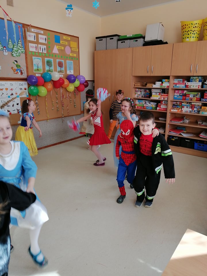 Dnia 18.02. dzieci z oddziału „0” uczestniczyły w baliku karnawałowym. Można było spotkać różne postacie z bajek jak i zarówno zwierzątka, które są lubiane przez dzieci. Nad wszystkimi uczestnikami czuwała pani doktor zapraszając ich do wspólnej zabawy tanecznej jak i zarówno różnych konkurencji. Na zakończenie dzieci częstowały się słodkościami ufundowanymi przez rodziców.