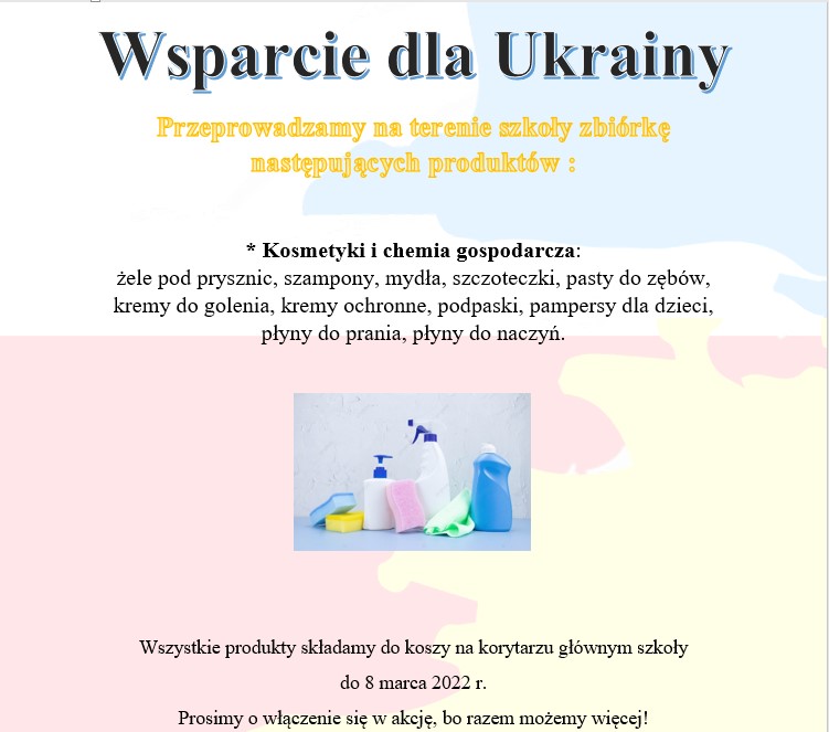 Wszystkie produkty składamy do koszy na korytarzu głównym szkoły