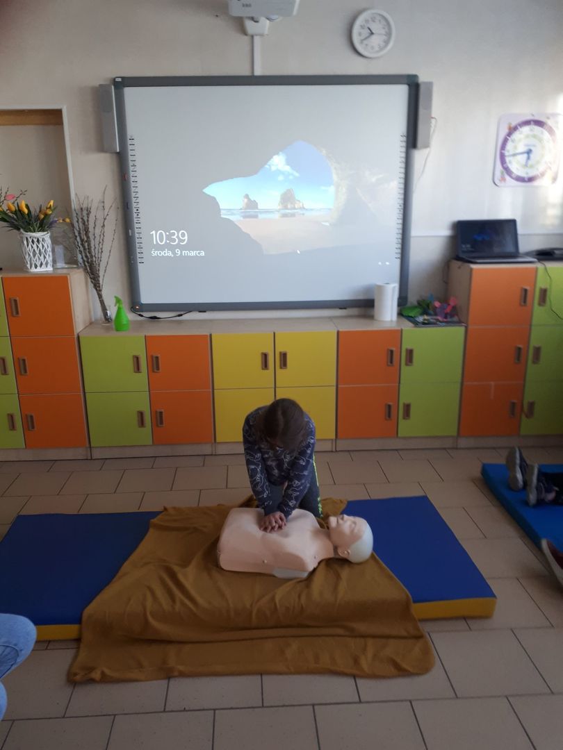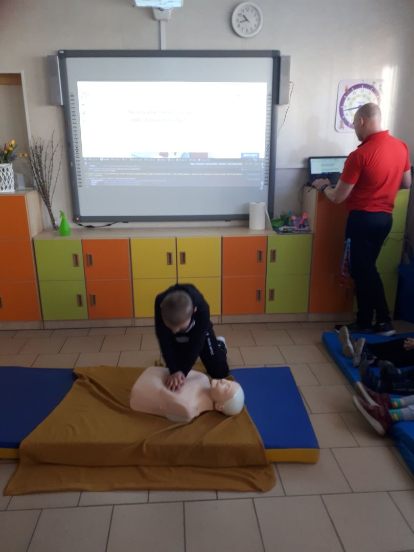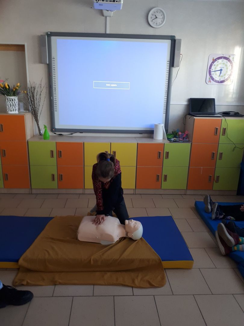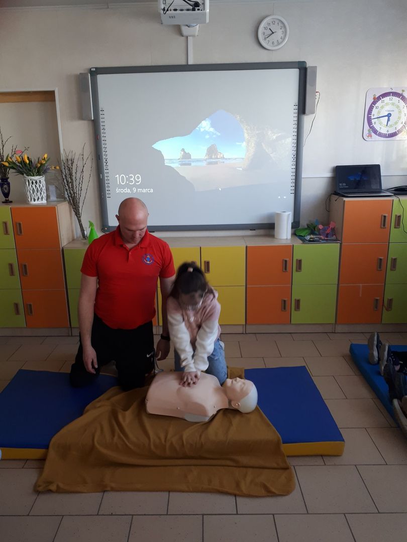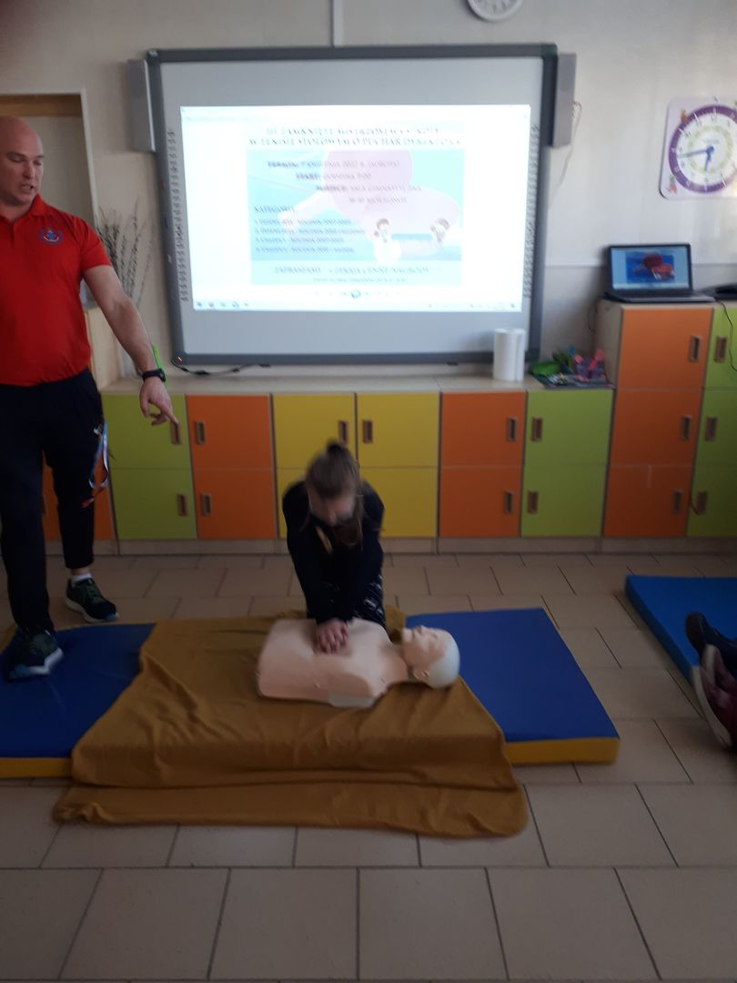 Dnia 9 marca br. klasy I i II wzięły udział w zajęciach z pierwszej pomocy. Przygotował je i poprowadził nauczyciel wychowania fizycznego, Pan Mateusz Baszczyński. Podczas spotkania uczniowie obejrzeli prezentację oraz krótkie filmy instruktażowe na temat postępowania w sytuacji zagrożenia życia. Prowadzący omówił sposób postępowania z osobą nieprzytomną i krok po kroku zaprezentował resustytację krążeniowo – oddechową. Następnie chętni uczniowie ćwiczyli swe umiejętności na fantomie. Mogli się przekonać, że nie jest to łatwe zadanie. Popatrzcie, jak sobie radzili.
