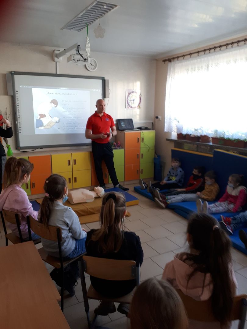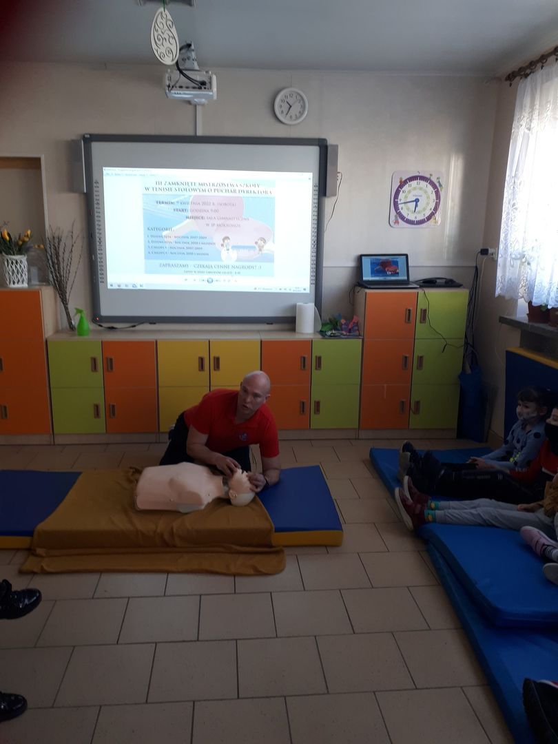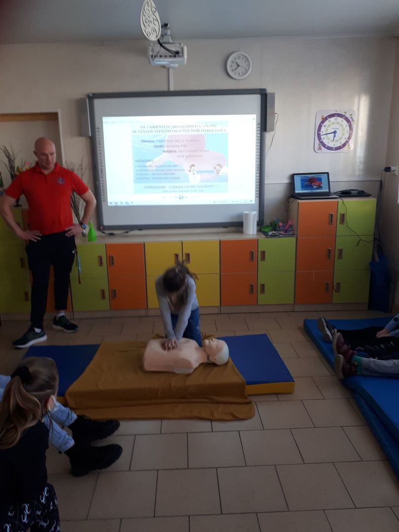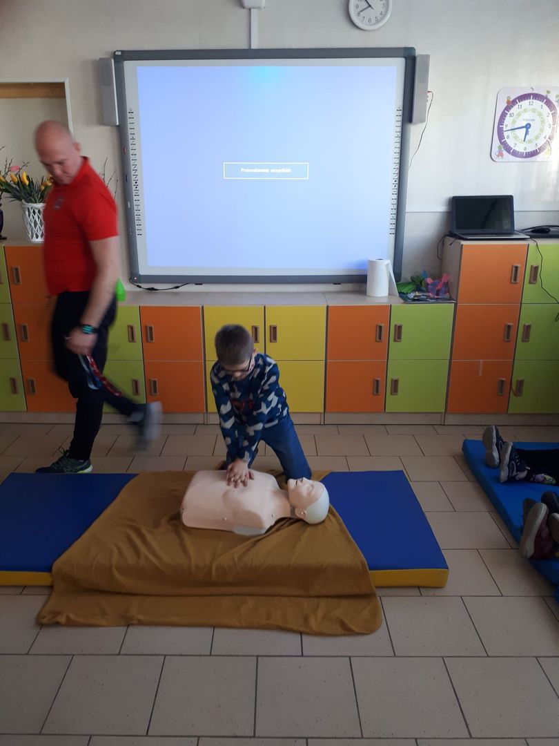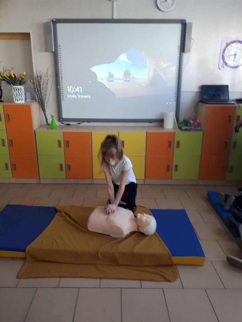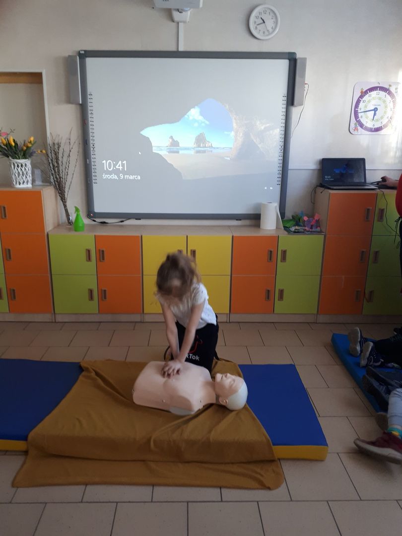 Dnia 9 marca br. klasy I i II wzięły udział w zajęciach z pierwszej pomocy. Przygotował je i poprowadził nauczyciel wychowania fizycznego, Pan Mateusz Baszczyński. Podczas spotkania uczniowie obejrzeli prezentację oraz krótkie filmy instruktażowe na temat postępowania w sytuacji zagrożenia życia. Prowadzący omówił sposób postępowania z osobą nieprzytomną i krok po kroku zaprezentował resustytację krążeniowo – oddechową. Następnie chętni uczniowie ćwiczyli swe umiejętności na fantomie. Mogli się przekonać, że nie jest to łatwe zadanie. Popatrzcie, jak sobie radzili.