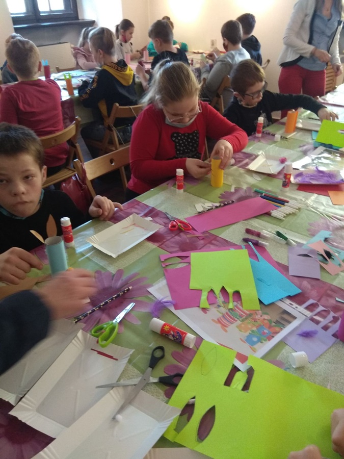 We wtorek 22 marca klasy II i III odwiedziły krotoszyńskie muzeum gdzie młodzi słuchacze zapoznali się z tradycjami Świąt Wielkanocnych oraz ludowych zwyczajów wiosennych. Podczas warsztatów plastycznych uczniowie pracowali z ogromnym zaangażowaniem i wyczarowali z papierowych rolek piękne zajączki. Kolejnym punktem programu było zwiedzanie muzeum. Dzieci poznały jak wyglądało życie dawnych mieszkańców Krotoszyna, stroje ludowe oraz mundury wojskowe. Nasi podopieczni poznali ciekawe fakty z historii Krotoszyna. Bardzo duże wrażenie wywołała wystawa dawnych narzędzi rolniczych oraz artykułów gospodarstwa domowego. Wysłuchali ciekawostek o pracy takich rzemieślników jak: kowal, balwierz, rymarz, ślusarz. Wizyta w muzeum była ciekawa i pasjonująca.