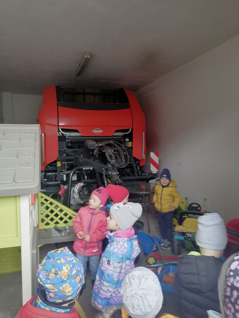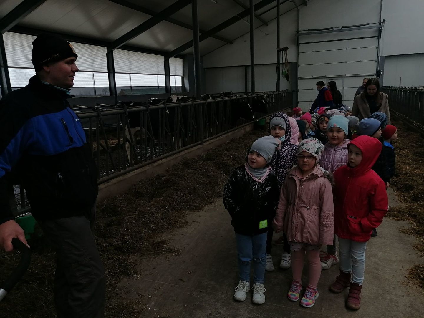 Dzieci z oddziałów przedszkolnych odwiedziły nowoczesną oborę wolnostanowiskową dla bydła. Stasiu z najmłodszej grupy wiekowej z wielkim entuzjazmem oprowadzał starszych rówieśników po swoim gospodarstwie. Dzieci mogły również zobaczyć maszyny rolnicze, które są używane obecnie w gospodarstwie. Dzięki uprzejmości rodziców Stasia mogliśmy zobaczyć każdy zakątek gospodarstwa. Było to bardzo ciekawe doświadczenie, w szczególności dla dzieci, które nie spotykają się z zwierzętami wiejskimi na codzień.