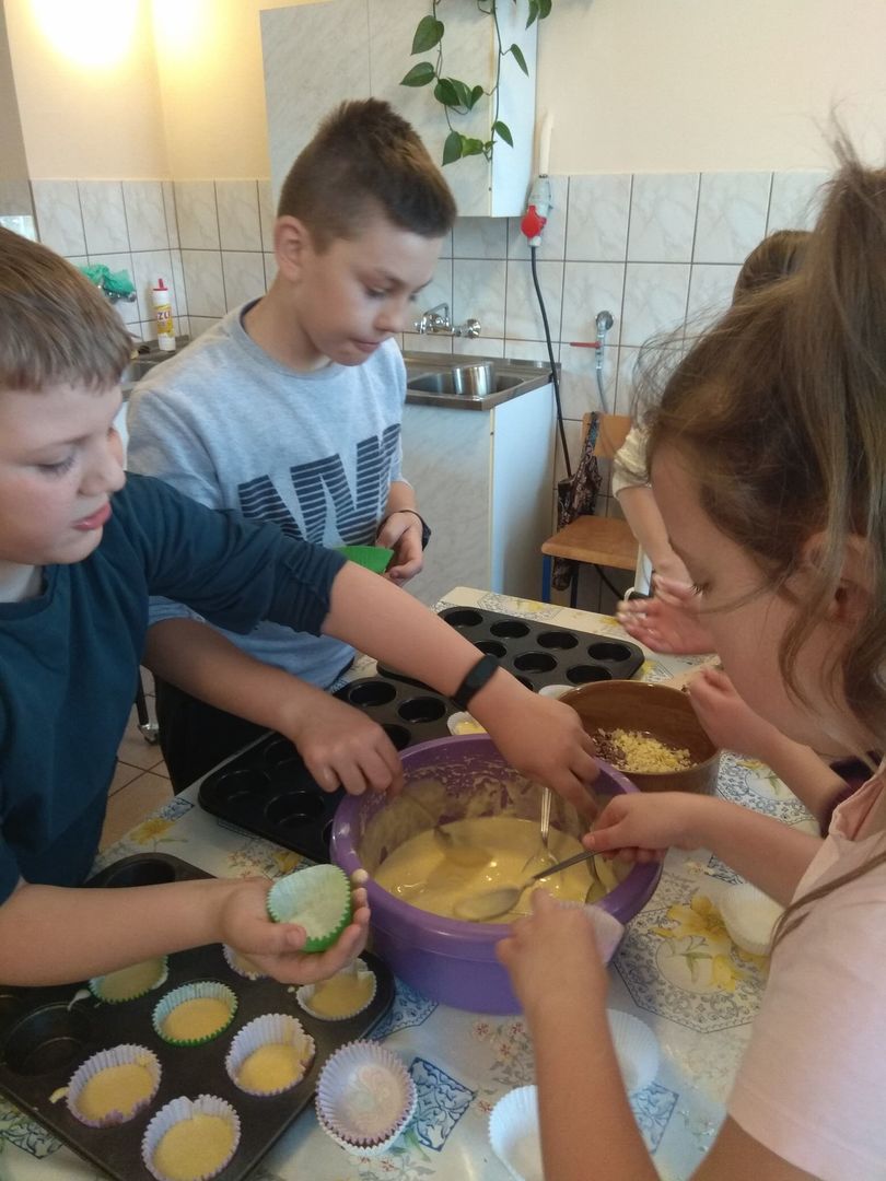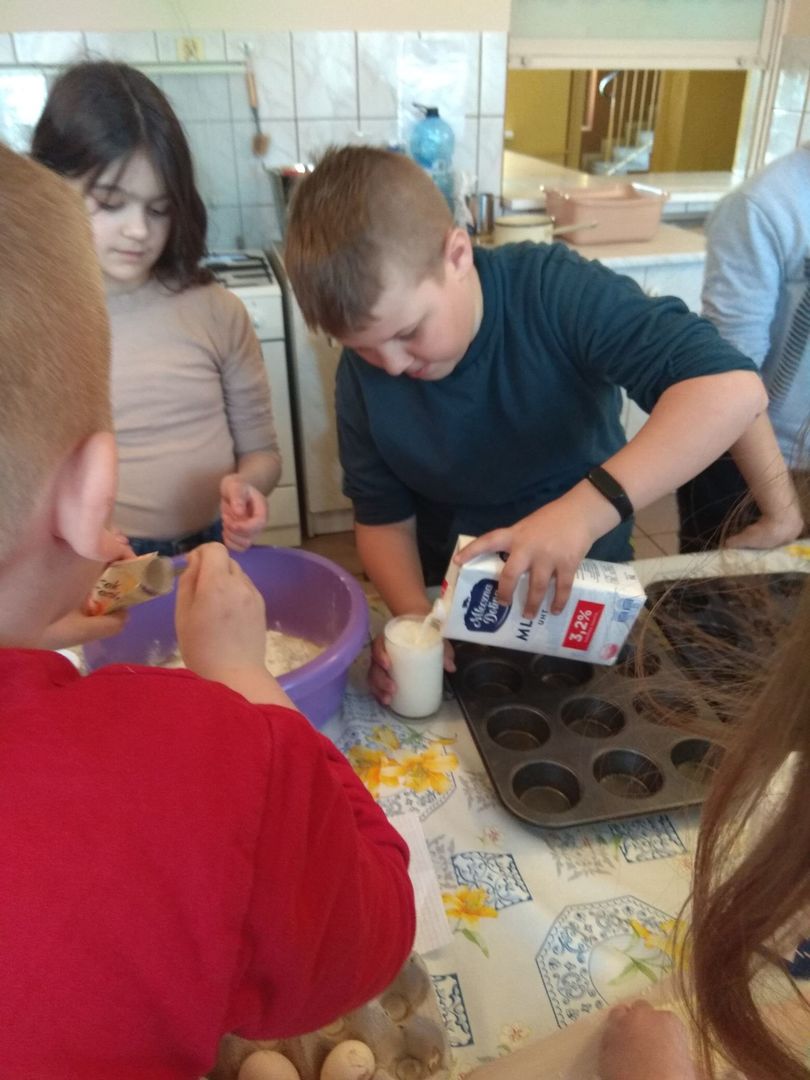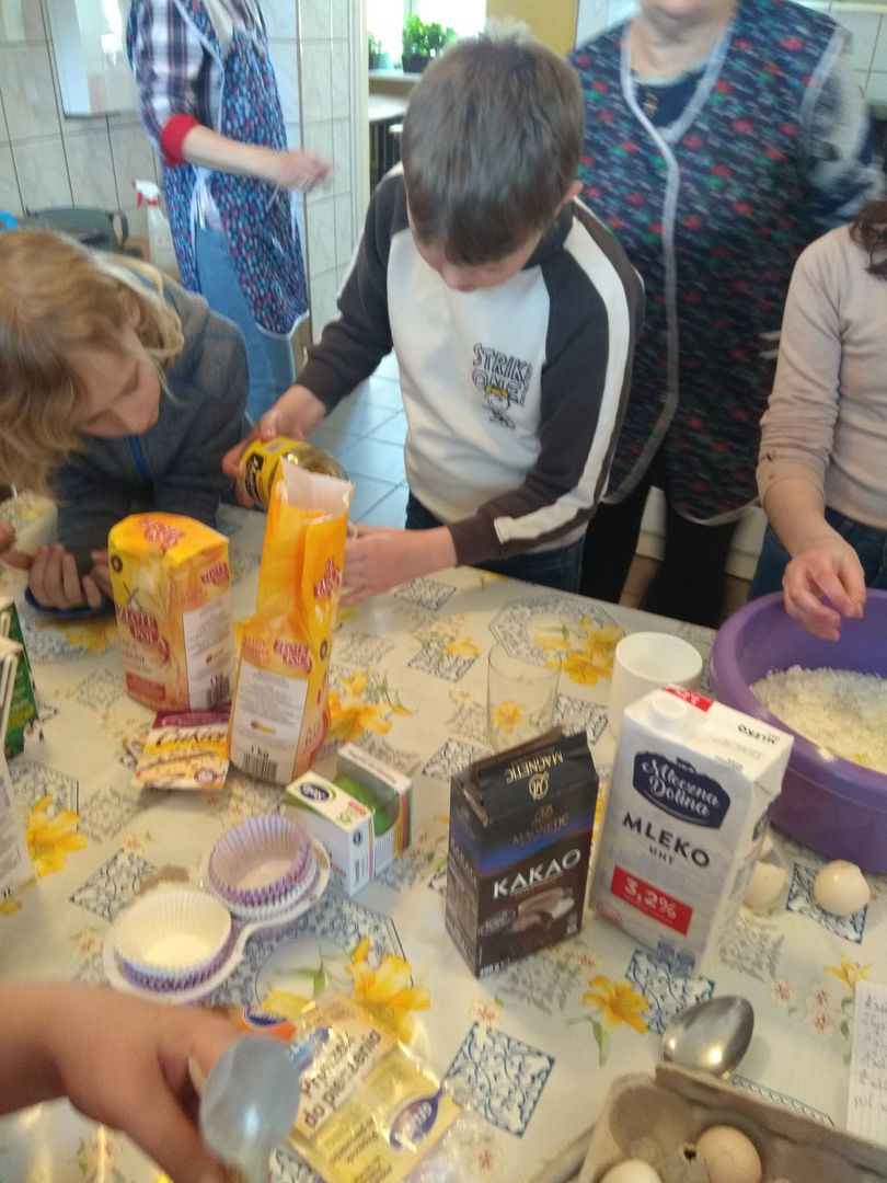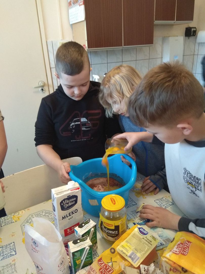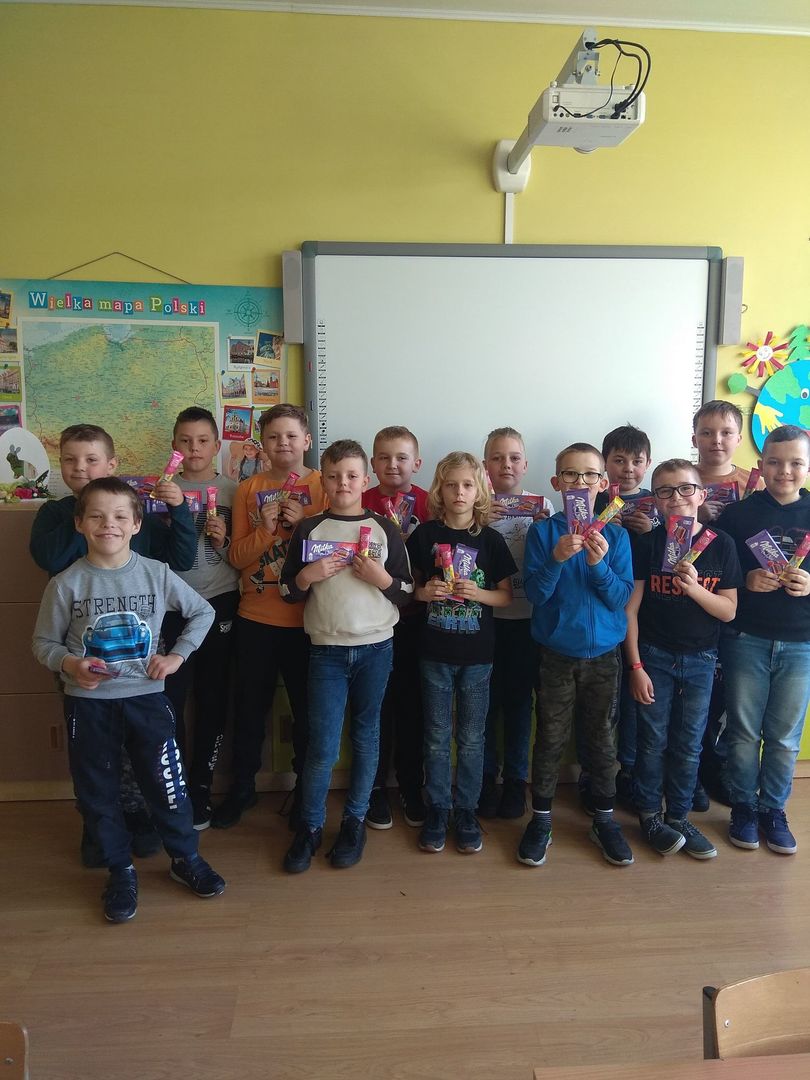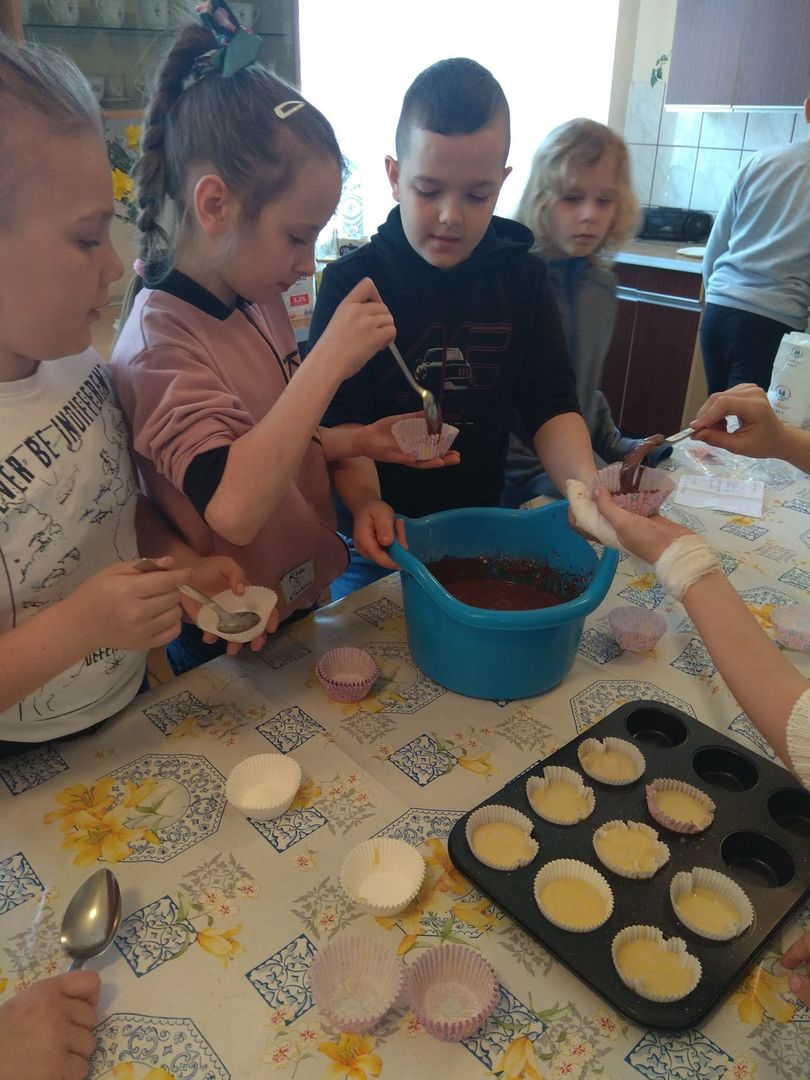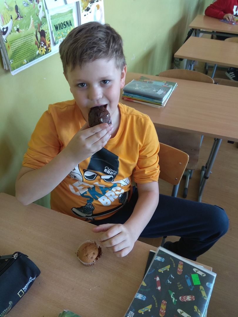 13 kwietnia to dzień pełen niespodzianek dla uczniów klasy III. Od samego rana zostali obdarowani batonikiem od zająca wielkanocnego. Kolejnym punktem dnia było samodzielnie pieczenie muffinek, które mają trafić do koszyczka. Następnie każdy uczeń przygotowywał pisankę z życzeniami dla kolegów i koleżanek z klasy. W ten sposób powstał "Koszyk życzeń wielkanocnych". Na zakończenie dnia uczniowie otrzymali słodką niespodziankę przygotowaną przez rodziców. Ten wspaniały dzień na długo pozostanie w ich pamięci.