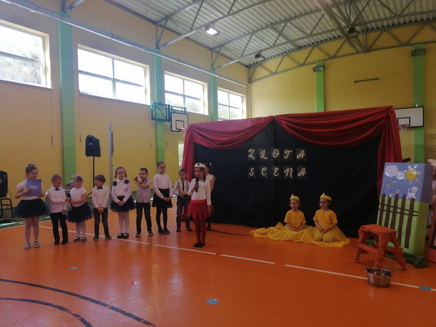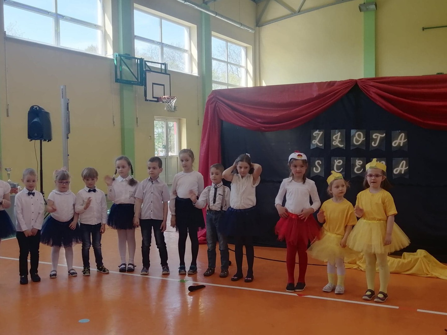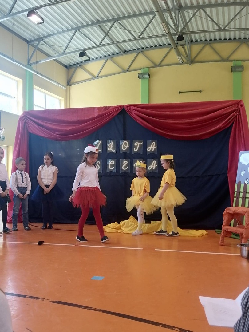29 kwietnia br. dzieci z grup 4,5 i 6-latków wzięły udział w przeglądzie teatralnym pt. "Złota Scena" organizowanym przez Zespół Szkolno - Przedszkolny im. Marii Konopnickiej w Borzęciczkach. Grupa naszych przedszkolaków wystąpiła ze spektaklem pt. "Kwoka" i decyzją jury zdobyła na podium I miejsce !!