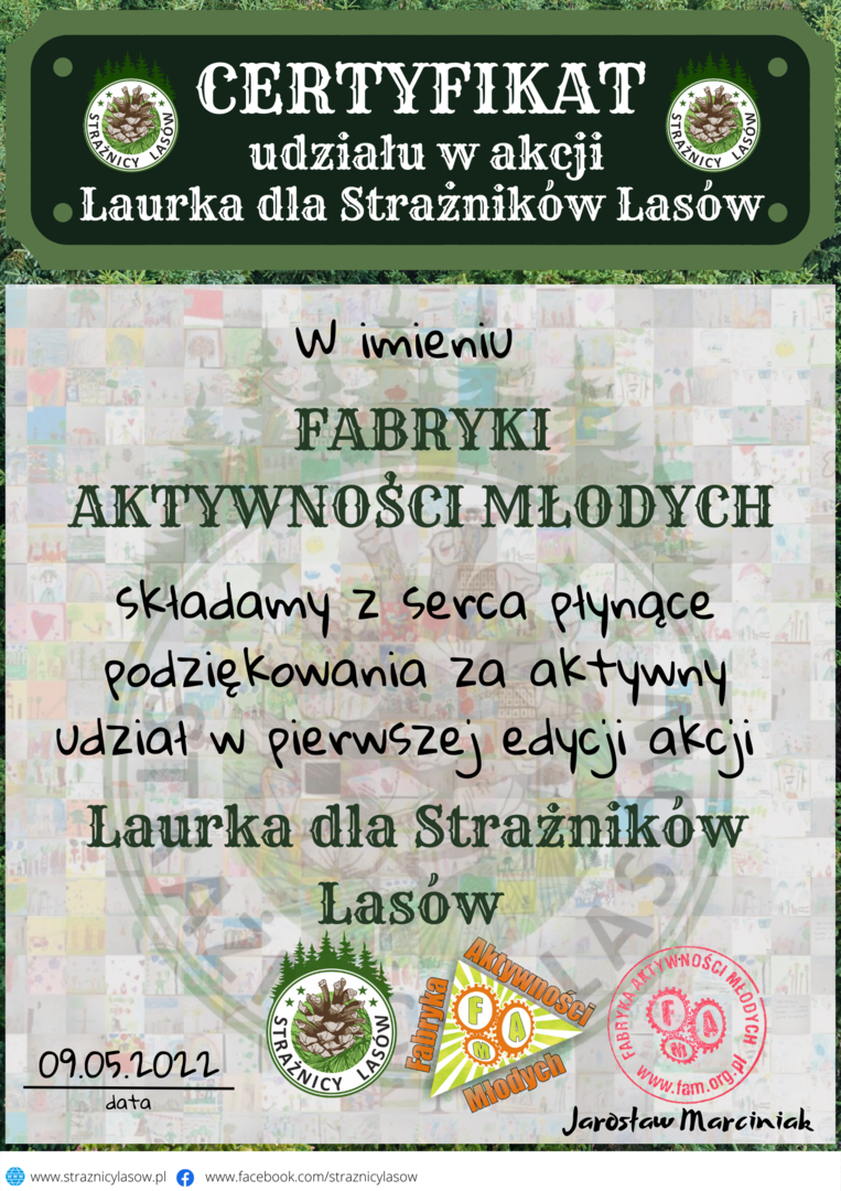W dniu 4 maja, br. przypadało święto Strażaka, a 5 maja święto Leśnika. To była świetna okazja do tego, aby im bardzo gorąco i wyjątkowo podziękować za ich pracę włożoną w ochronę lasów przed pożarami tworząc wirtualną MEGA interaktywną laurkę składającą się z tysięcy laurek namalowanych przez przedszkolaków i dzieci młodszych klas szkół podstawowych z całej Polski. Chętni uczniowie klasy III również przyłączyli się to tej akcji charytatywnej. Wszystkim uczniom, którzy docenili ich pracę serdecznie dziękujemy.