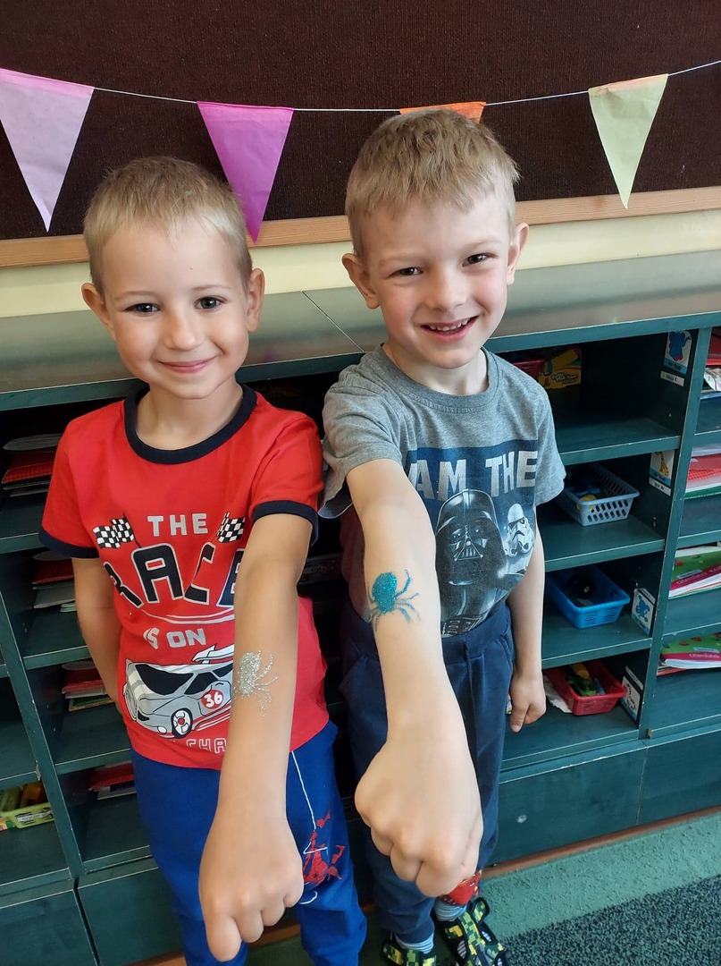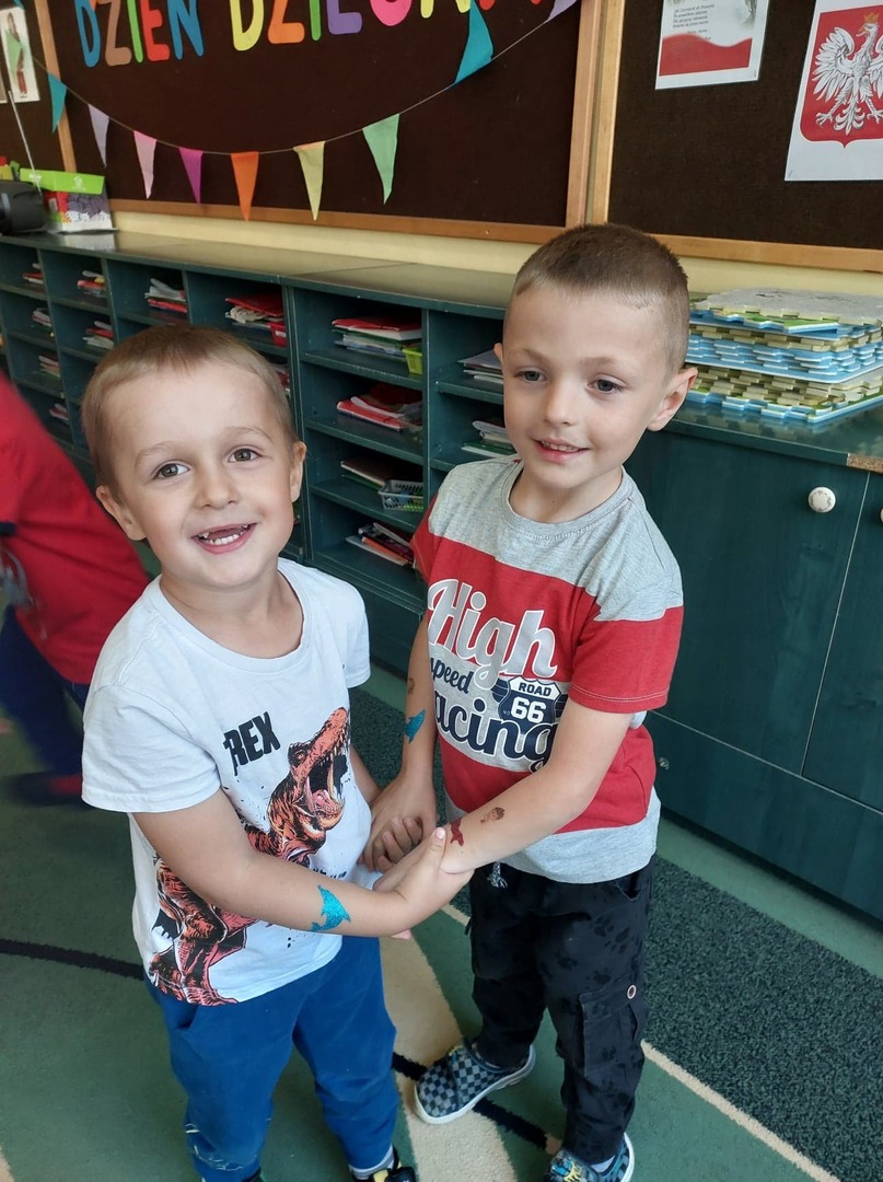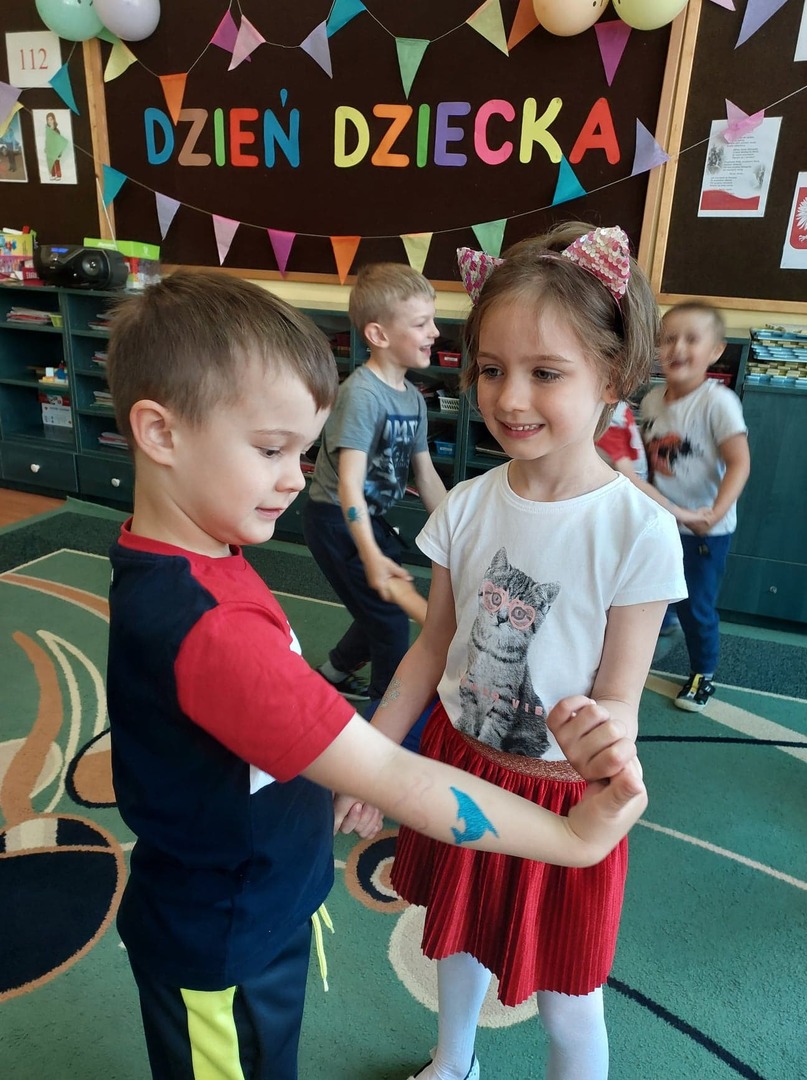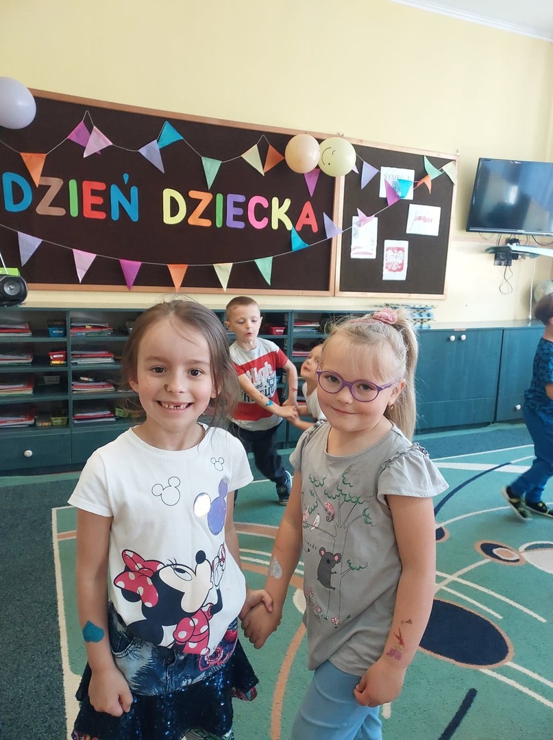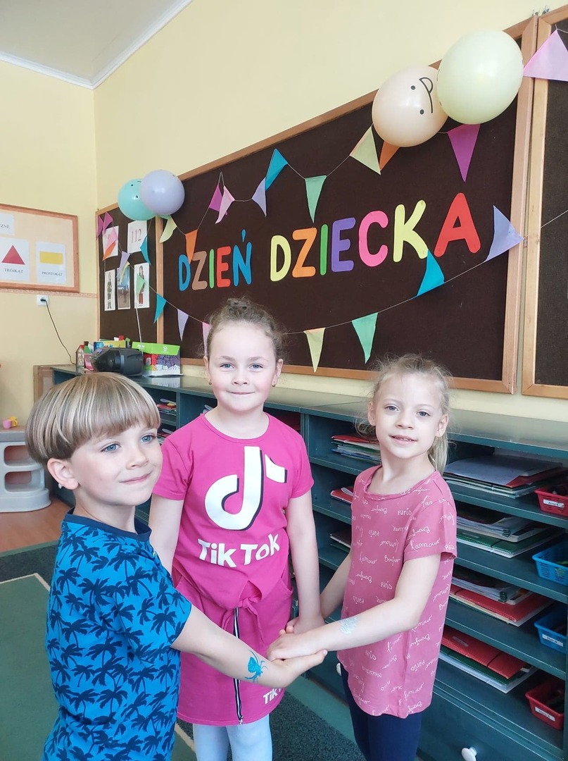 Dzień dziecka, który jak co roku przypada 1 czerwca był dla naszych przedszkolaków dniem pełnym atrakcji, uśmiechu oraz niespodzianek. Największą radość wywołały brokatowe tatuaże oraz balony, które przygotowały wychowawczynie. Również rodzice włączyli się w urozmaicenie tego dnia, dzięki czemu dzieci otrzymały słodki upominek. Zabawa była wspaniała.