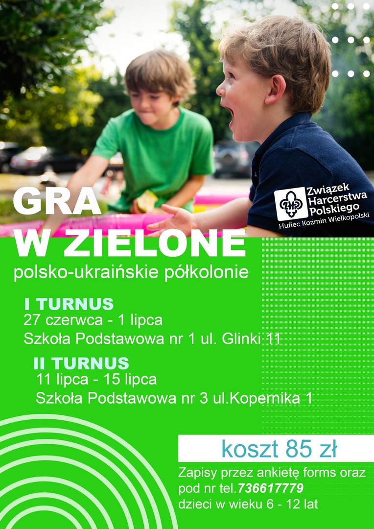 Hufiec ZHP Koźmin Wielkopolski zaprasza dzieci z Ukrainy i Polski do wspólnego przeżywania przygód podczas wakacji.