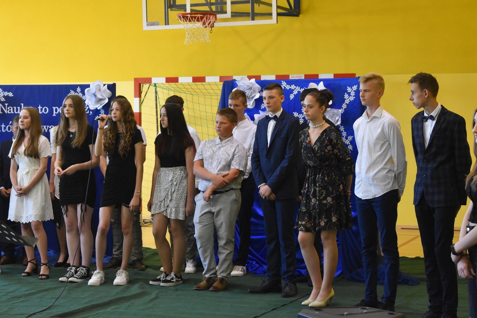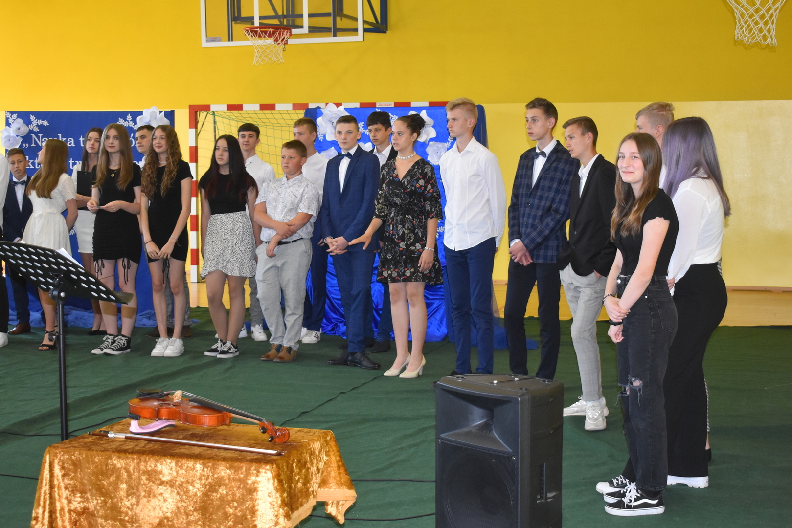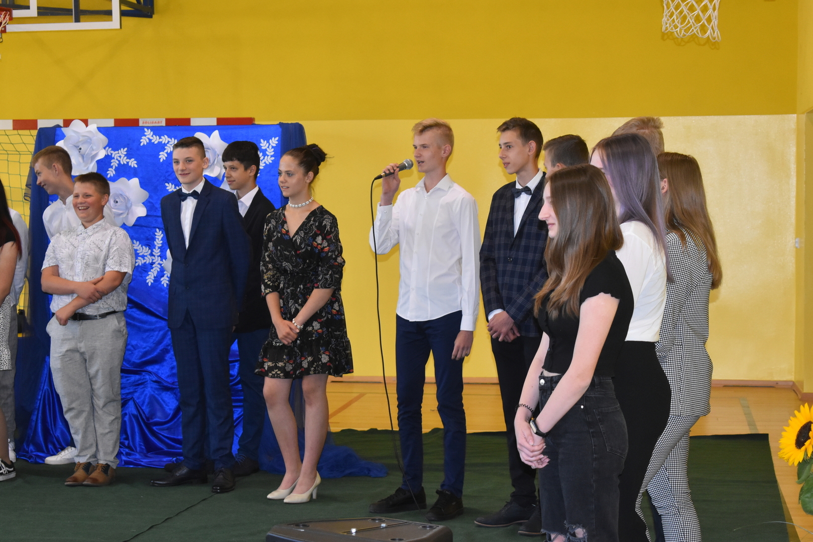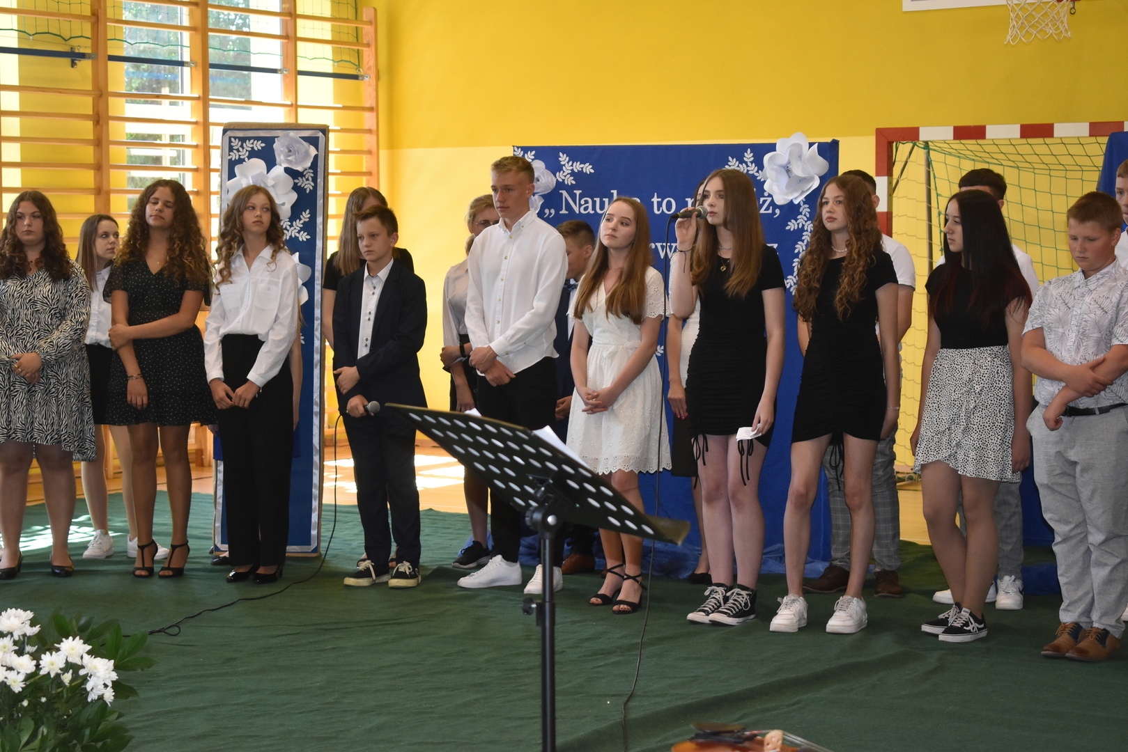 W tym roku szkolnym 2021/2022 wyjątkowo żegnamy uczniów dwóch klas ósmych. 39 absolwentów kończy szkołę podstawową i wyrusza do szkół średnich, aby dalej kształcić się, rozwijać i spełniać swoje marzenia. W czwartek po uroczystej mszy świętej, podczas akademii absolwenci pożegnali się z kolegami z klas młodszych oraz nauczycielami i pracownikami szkoły. Wspominali piękne czasy, kiedy zawitali w murach przedszkola, aż do momentu kiedy muszą opuścić mury szkoły aby iść dalej w świat..