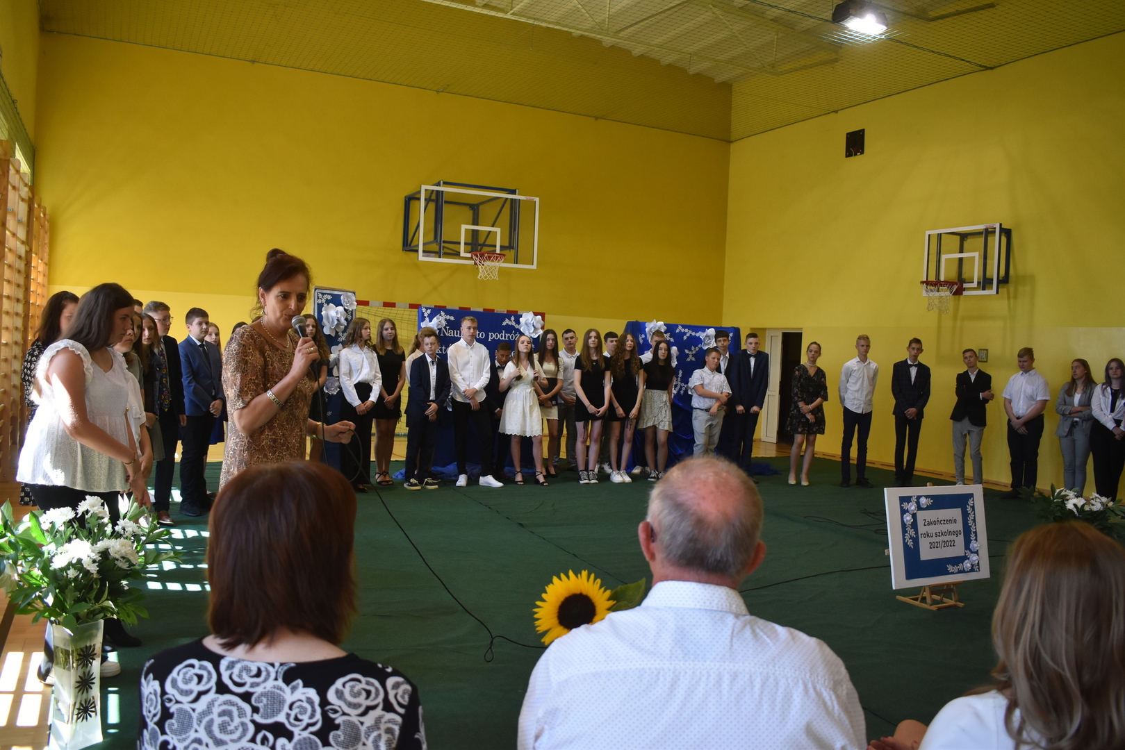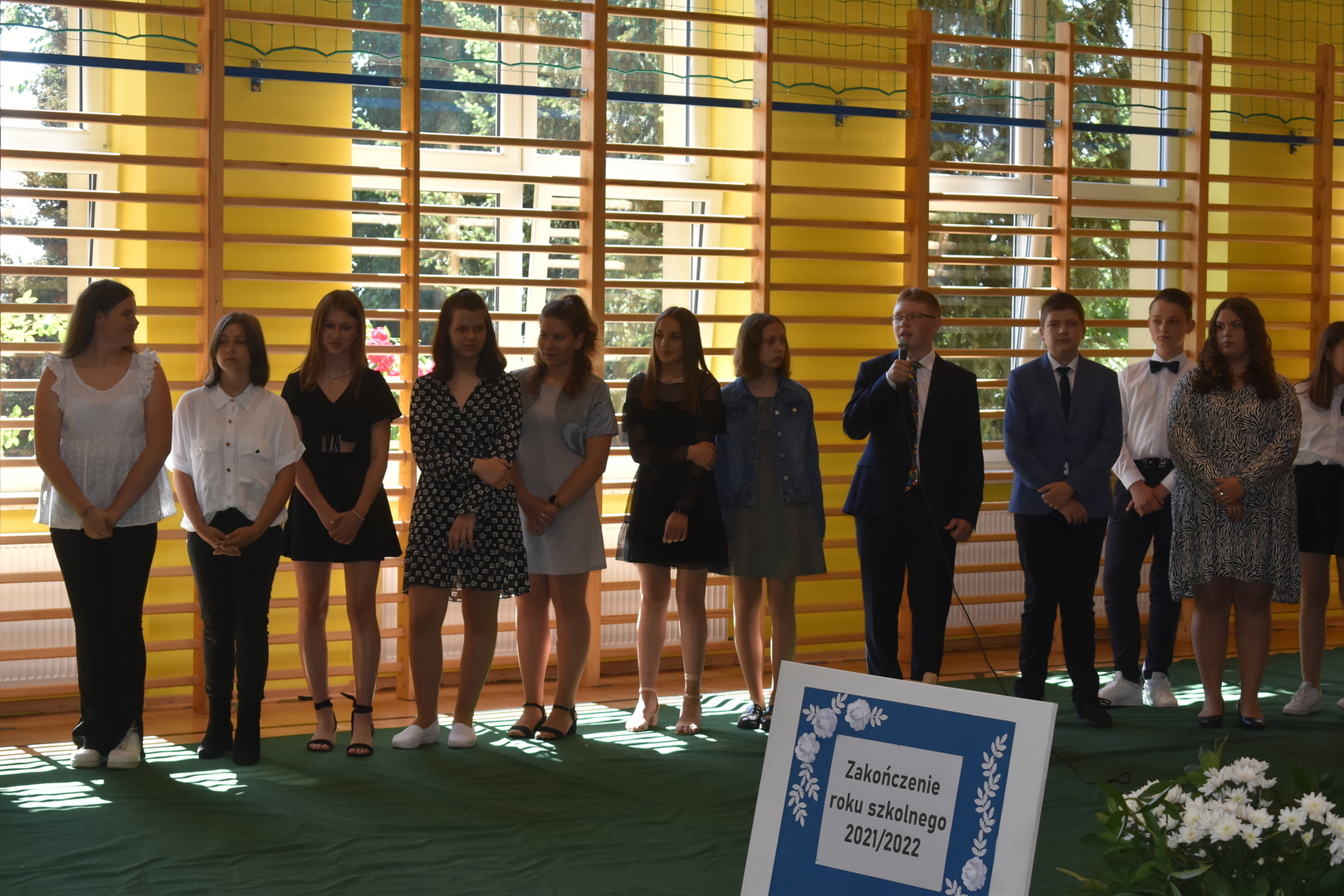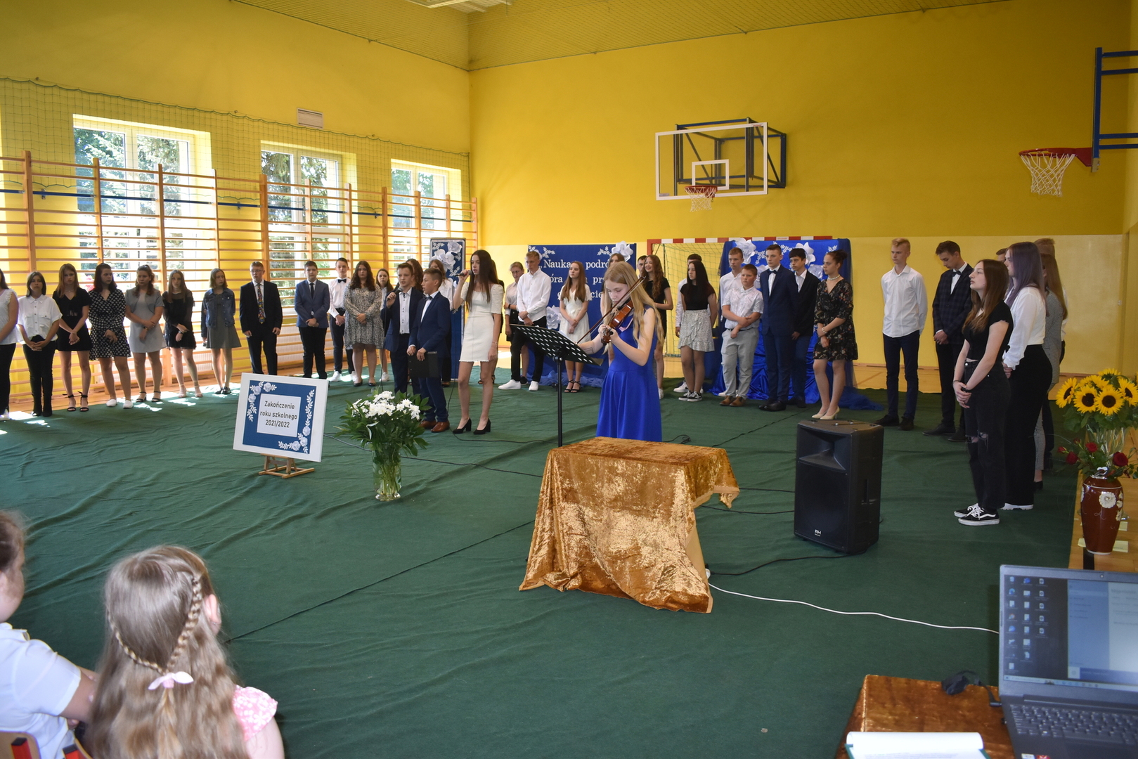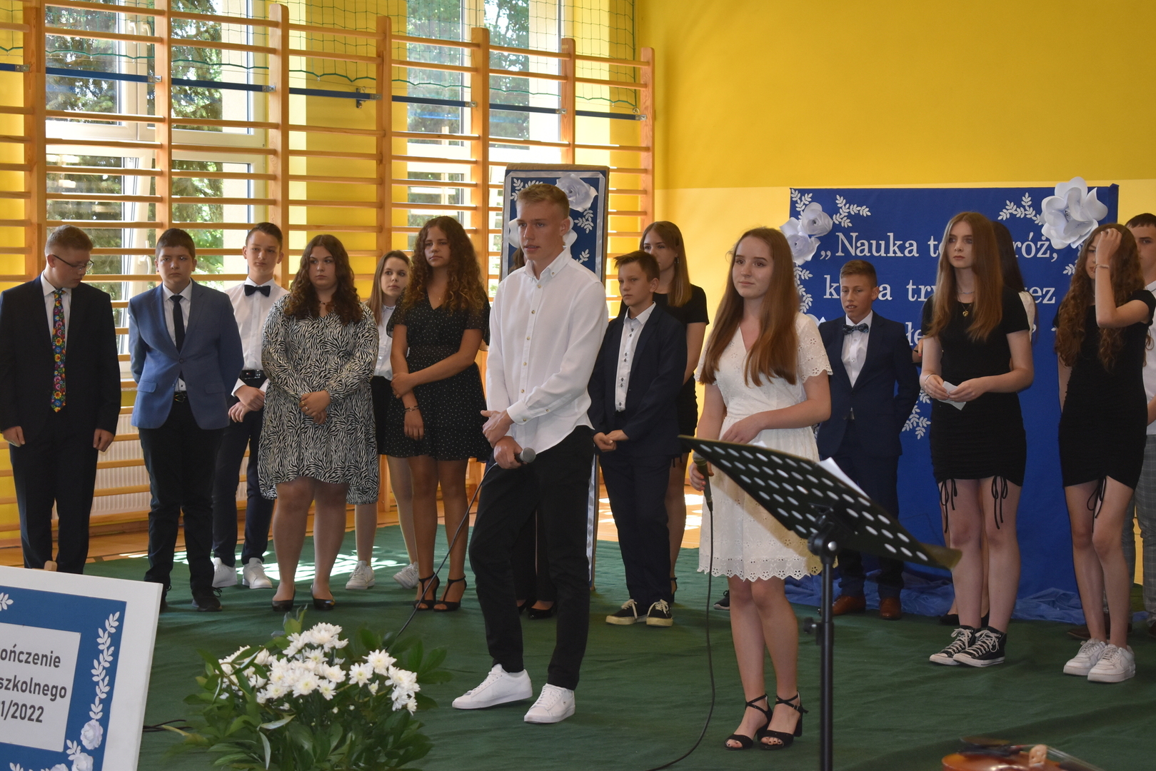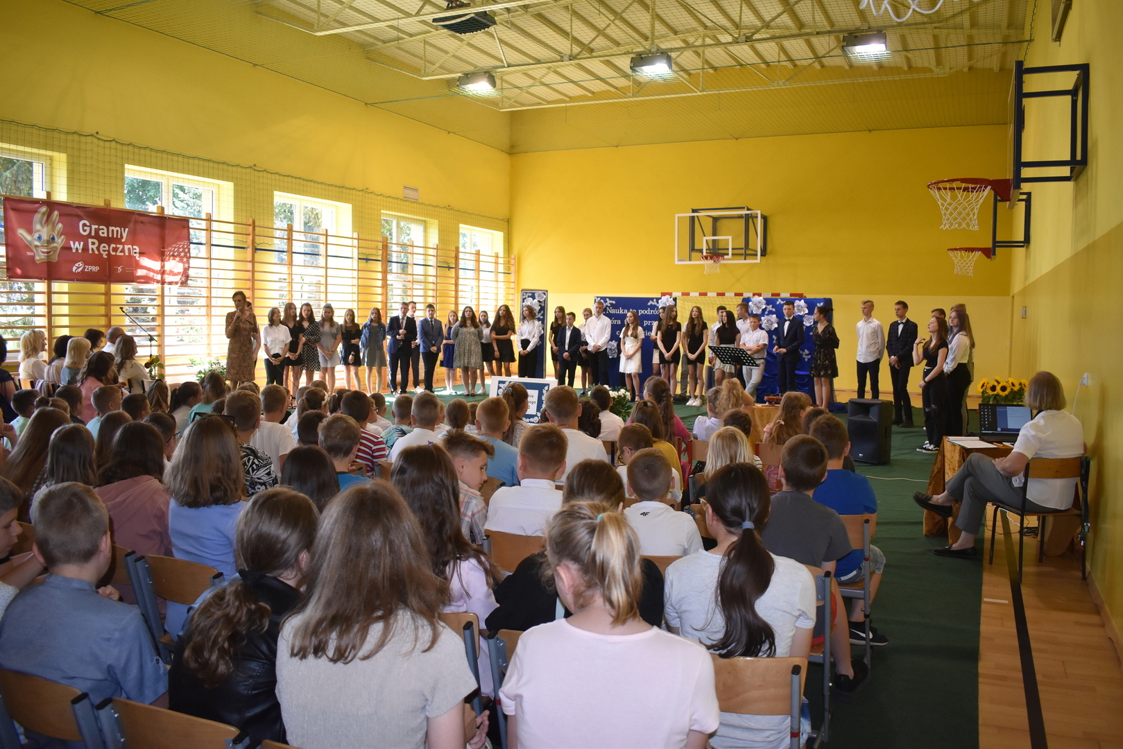 W tym roku szkolnym 2021/2022 wyjątkowo żegnamy uczniów dwóch klas ósmych. 39 absolwentów kończy szkołę podstawową i wyrusza do szkół średnich, aby dalej kształcić się, rozwijać i spełniać swoje marzenia. W czwartek po uroczystej mszy świętej, podczas akademii absolwenci pożegnali się z kolegami z klas młodszych oraz nauczycielami i pracownikami szkoły. Wspominali piękne czasy, kiedy zawitali w murach przedszkola, aż do momentu kiedy muszą opuścić mury szkoły aby iść dalej w świat..