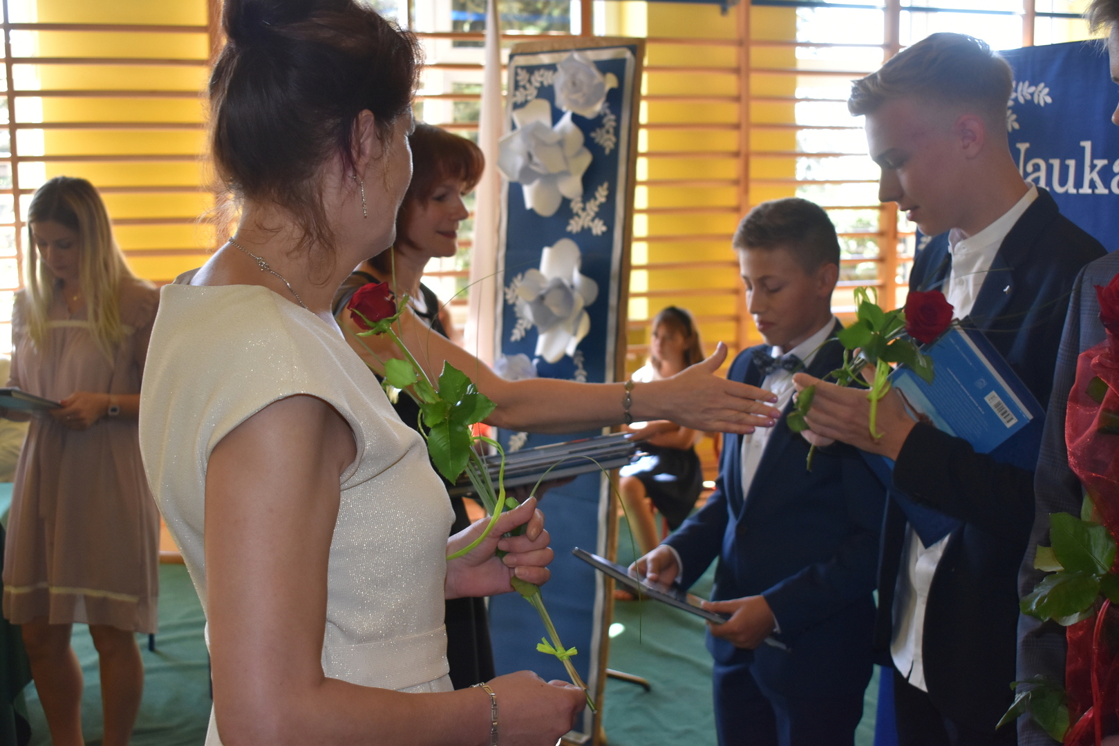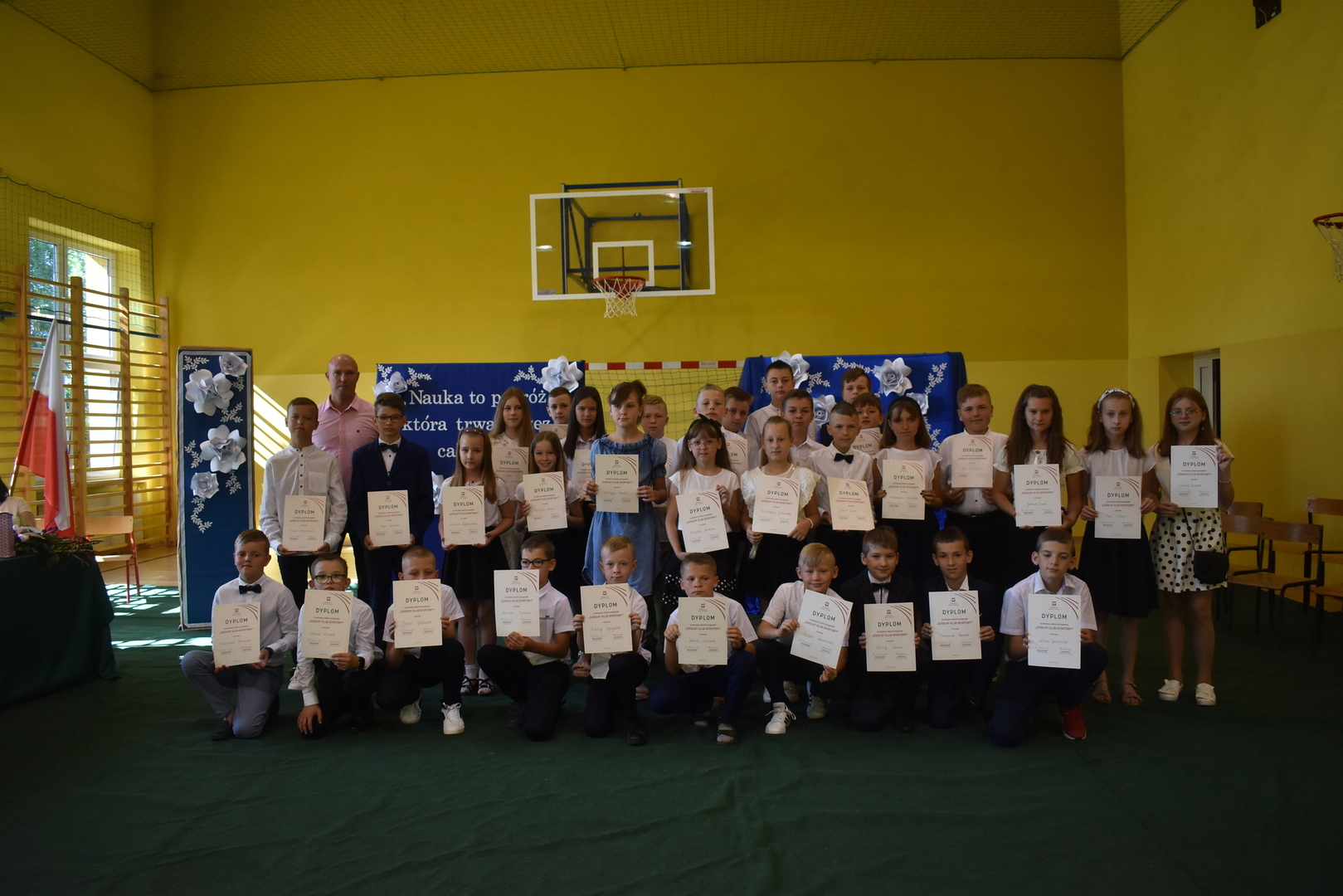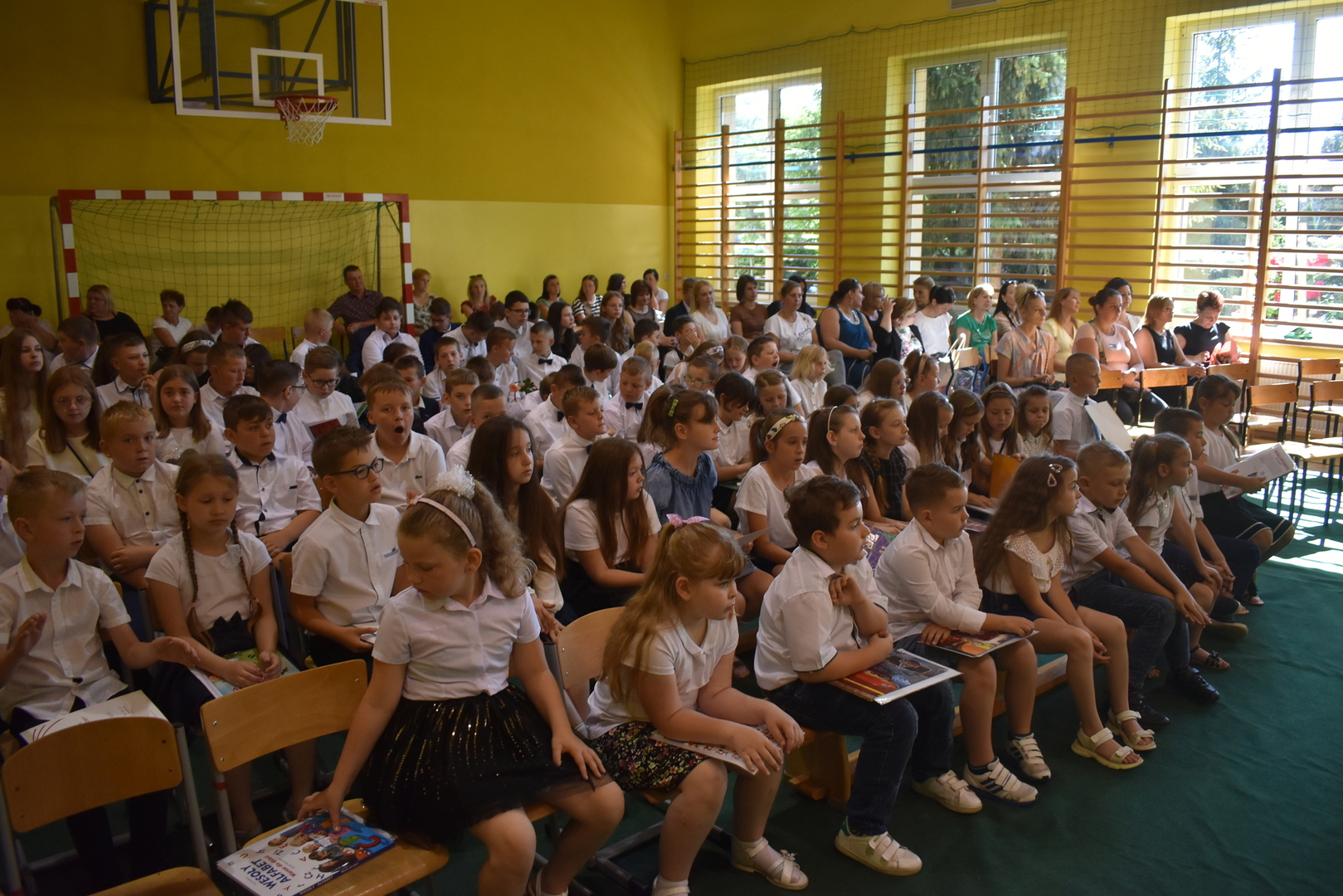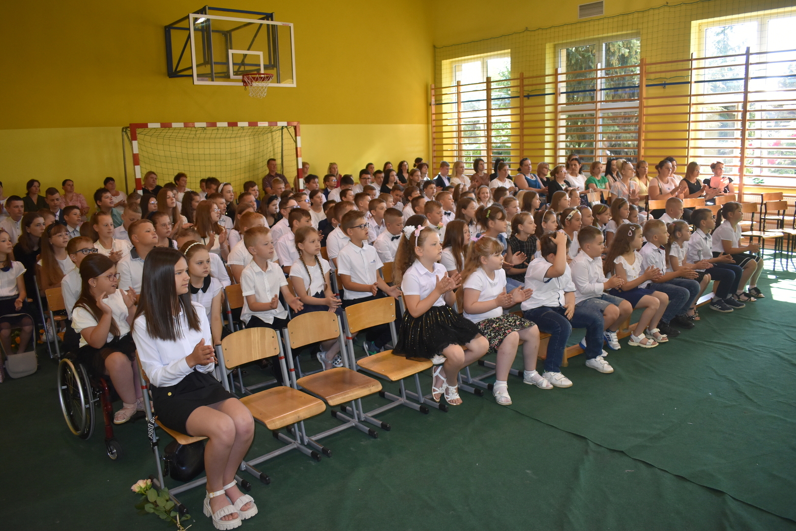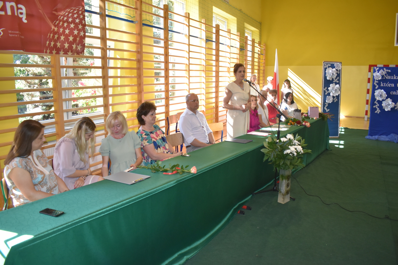 Nadszedł dzień zakończenia roku szkolnego. Przed nami upragnione wakacje. Podczas uroczystej akademii Pani Dyrektor Alina Rączka pogratulowała wszystkim uczniom wspaniałych wyników, otrzymania promocji do klas programowo wyższych i wytrwałości. Podziękowania płynęły również dla rodziców, którzy współpracują i wspierają działalność szkoły, a także dla Grona Pedagogicznego za trud i troskę wkładane w kształtowanie dzieci i młodzieży oraz ich edukację i rozwój oraz dla pracowników szkoły za dbałość o jej wizerunek i porządek. Życzenia i podziękowania w imieniu Rady Rodziców złożył także przewodniczący - pan Karol Basty. Kończąc wystąpienie Pani Dyrektor życzyła wszystkim wspaniałych i bezpiecznych wakacji, chwili wytchnienia i powrotu do szkoły we wrześniu ze zdwojoną siłą w gotowości do pracy i nauki. Tuż po przemówieniu nastąpiło wręczenie świadectw z wyróżnieniem oraz nagród ksiązkowych ufundowanych przez Radę Rodziców w poszczególnych klasach.