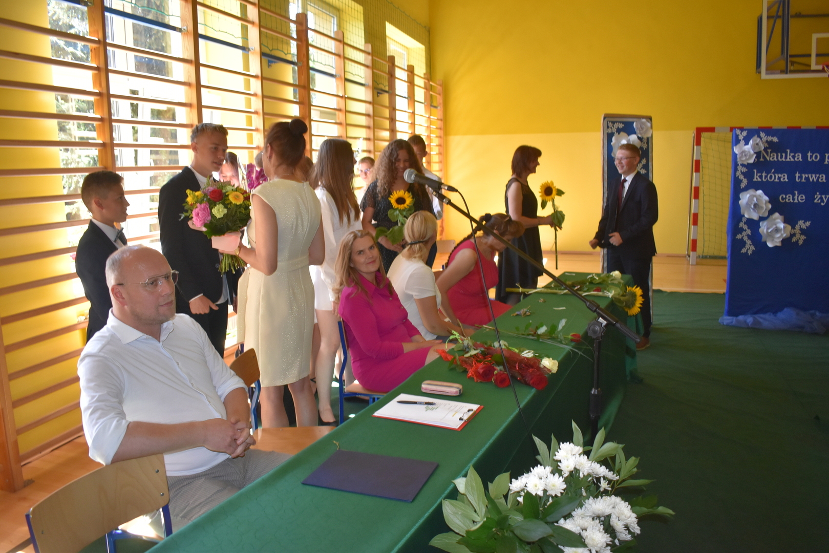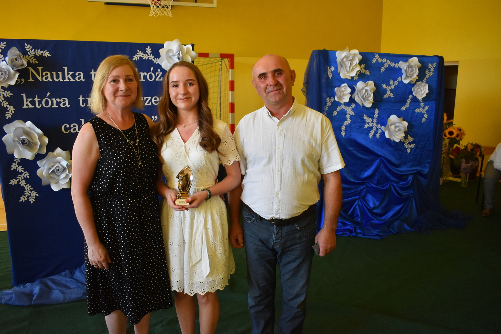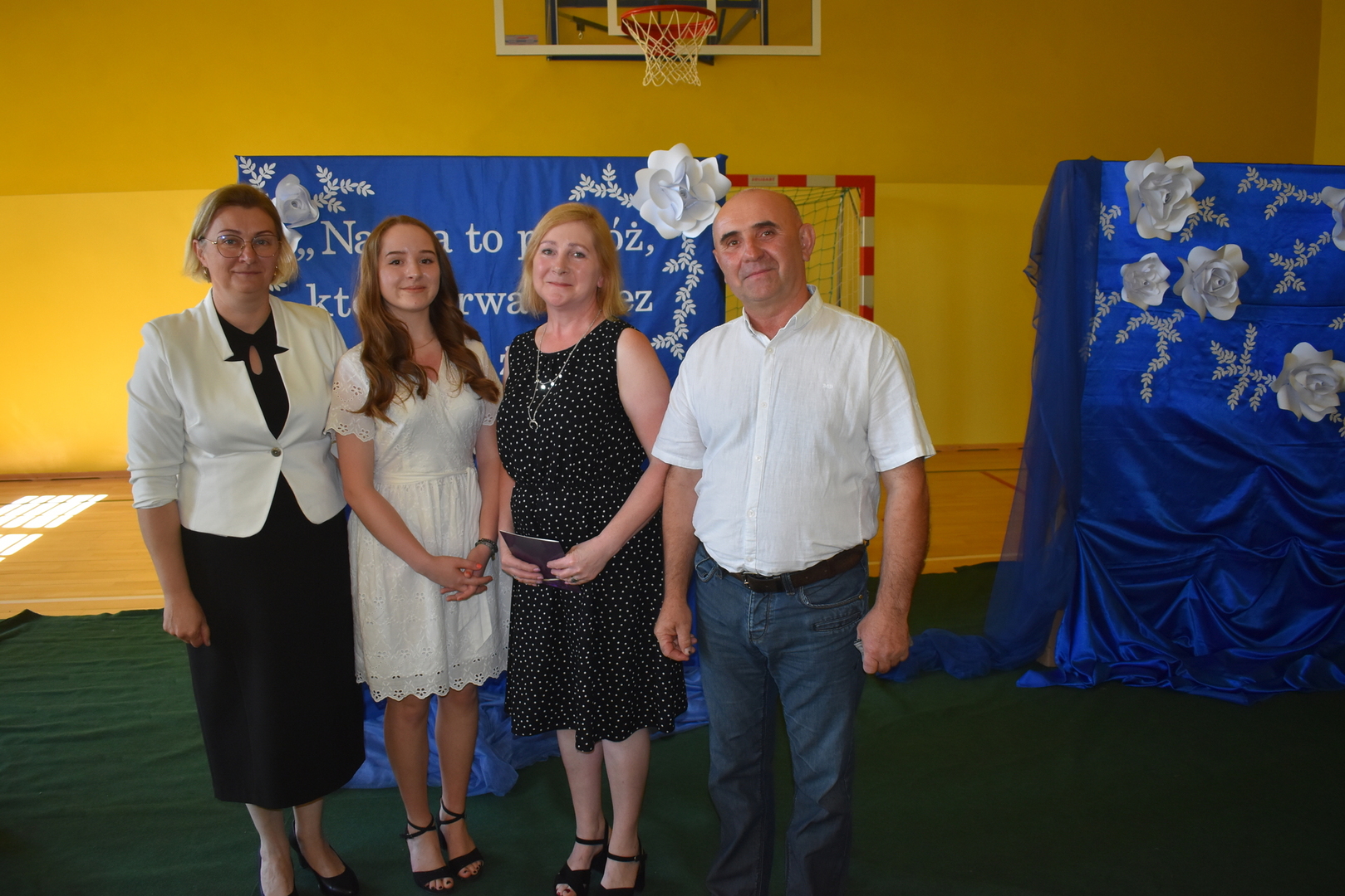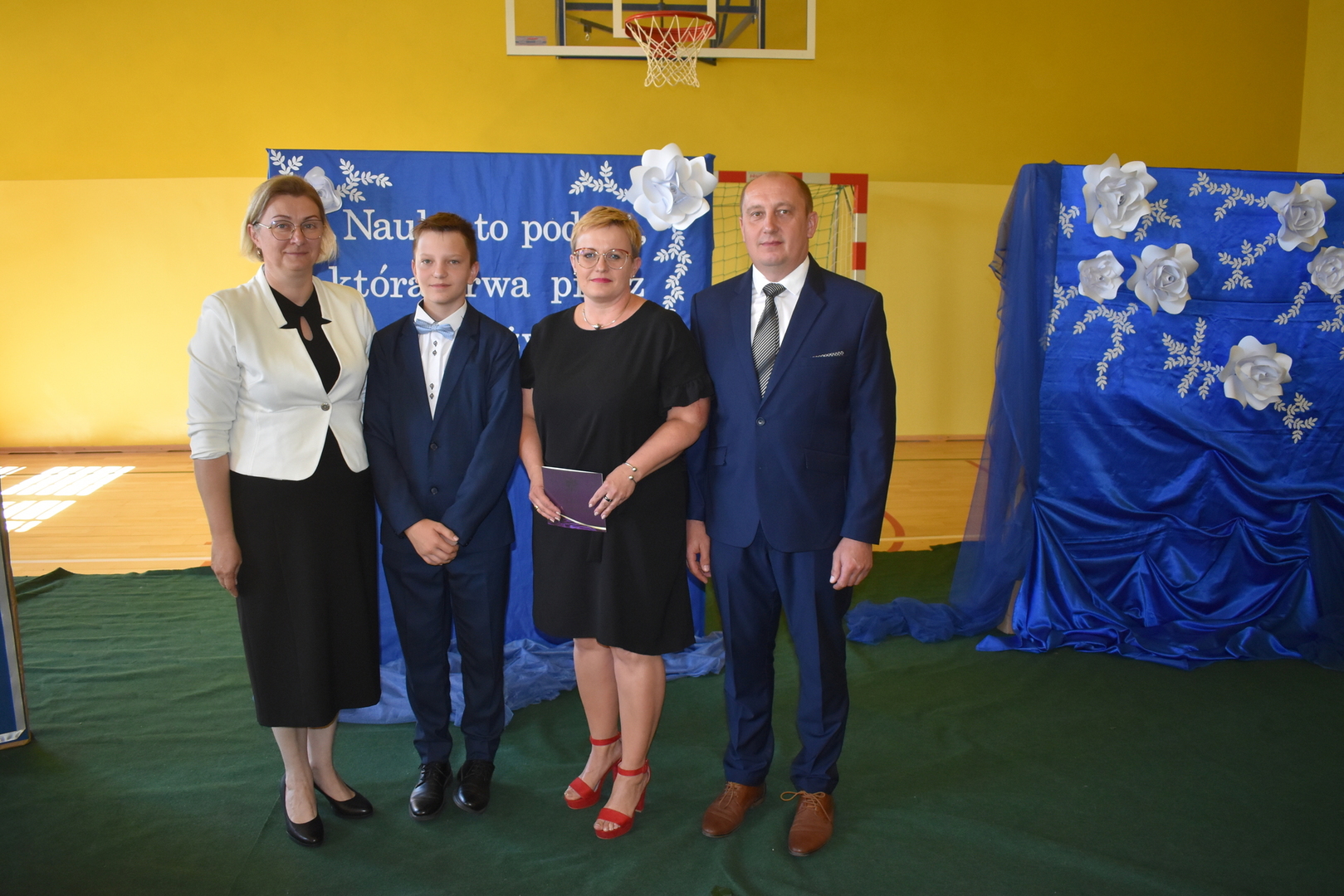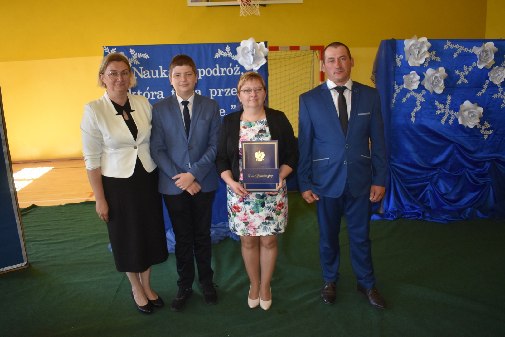 Nadszedł dzień zakończenia roku szkolnego. Przed nami upragnione wakacje. Podczas uroczystej akademii Pani Dyrektor Alina Rączka pogratulowała wszystkim uczniom wspaniałych wyników, otrzymania promocji do klas programowo wyższych i wytrwałości. Podziękowania płynęły również dla rodziców, którzy współpracują i wspierają działalność szkoły, a także dla Grona Pedagogicznego za trud i troskę wkładane w kształtowanie dzieci i młodzieży oraz ich edukację i rozwój oraz dla pracowników szkoły za dbałość o jej wizerunek i porządek. Życzenia i podziękowania w imieniu Rady Rodziców złożył także przewodniczący - pan Karol Basty. Kończąc wystąpienie Pani Dyrektor życzyła wszystkim wspaniałych i bezpiecznych wakacji, chwili wytchnienia i powrotu do szkoły we wrześniu ze zdwojoną siłą w gotowości do pracy i nauki. Tuż po przemówieniu nastąpiło wręczenie świadectw z wyróżnieniem oraz nagród ksiązkowych ufundowanych przez Radę Rodziców w poszczególnych klasach.