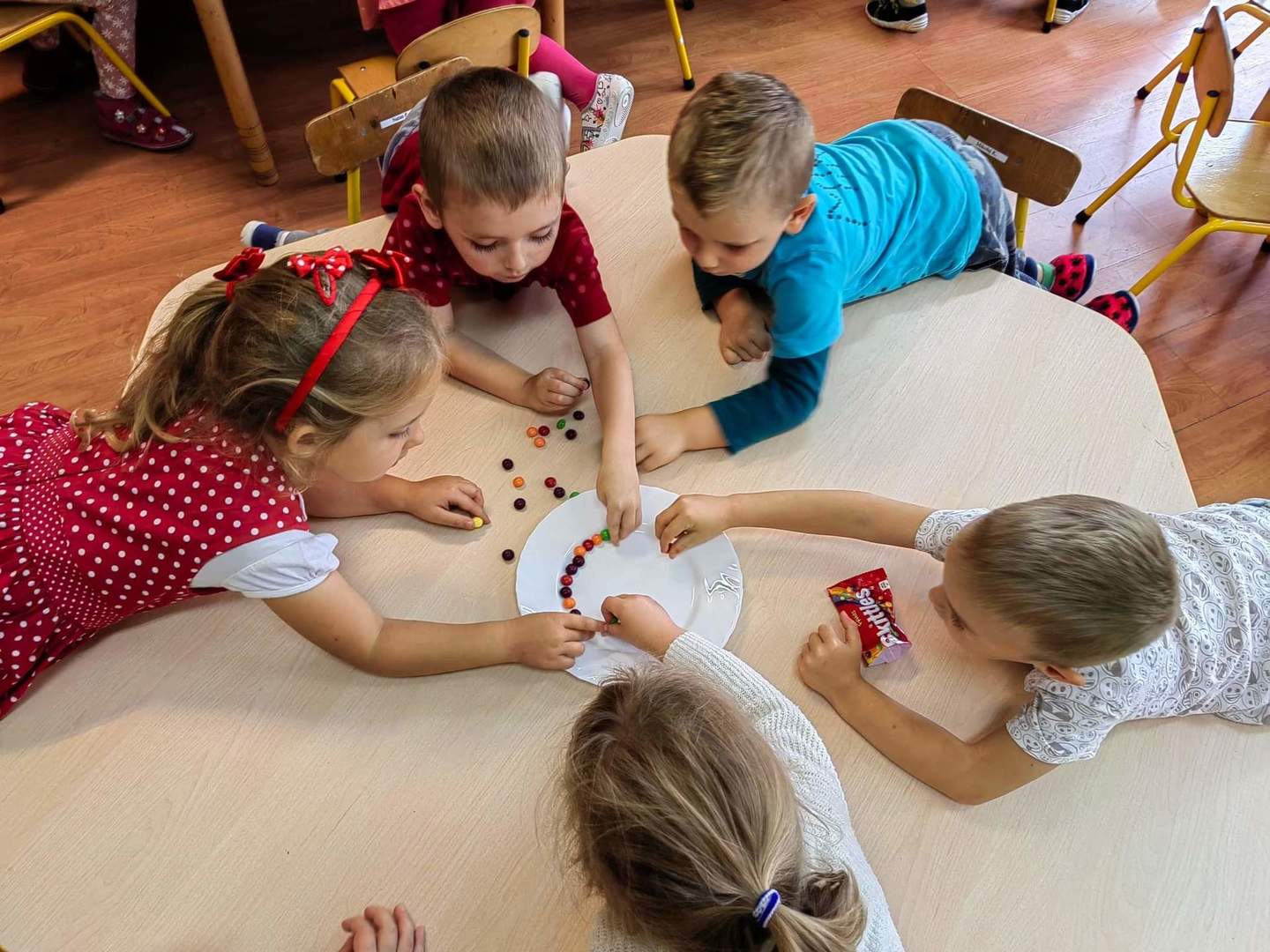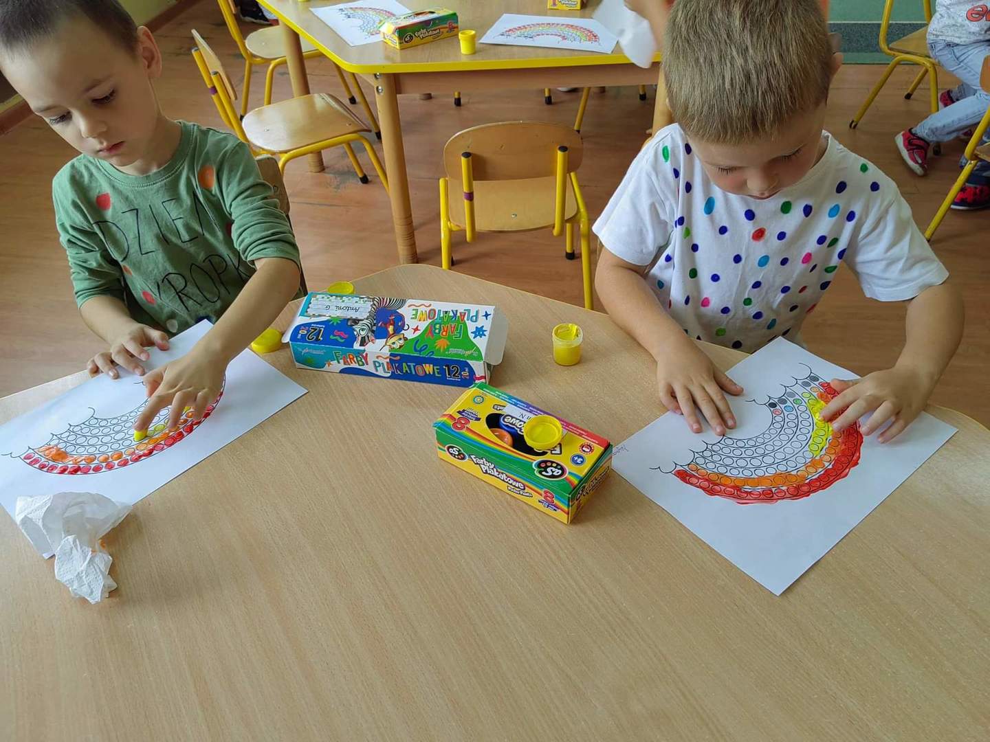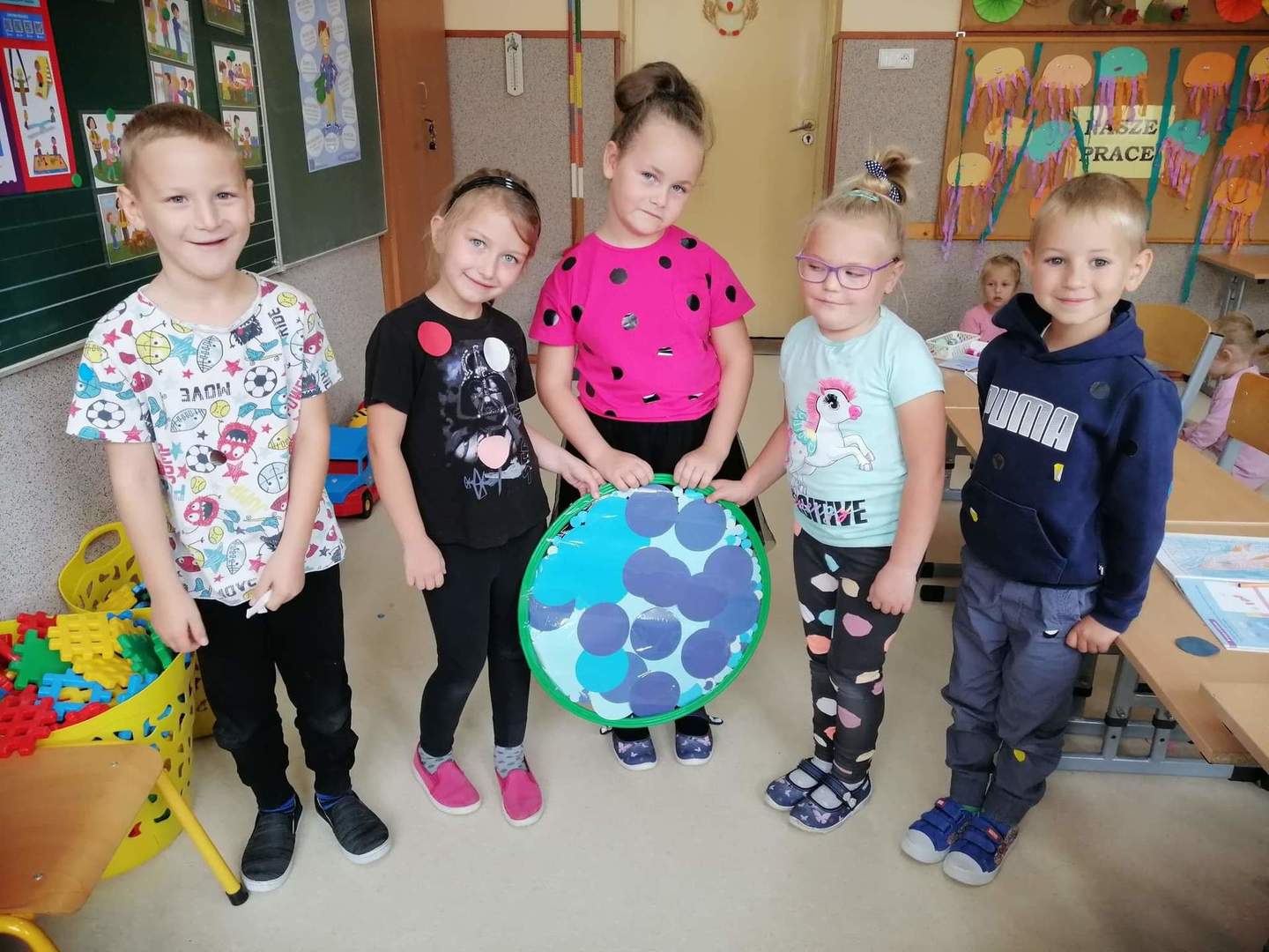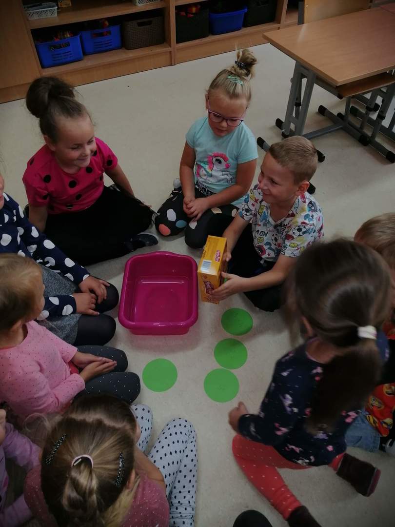 Jak co roku tego dnia ubrania przedszkolaków wypełnione były kolorowymi kropkami. Kreatywność rodziców zasługuje na uznanie. Na ubraniach dzieci widniały kropki wyklejane, malowane, a nawet przyszywane. Dzieci podczas zajęć poznały genezę tego święta. Były przeprowadzone w taki sposób aby uświadomić dzieci, że każdy z nas ma jakieś ukryte zdolności, talenty, które gdzieś tam drzemią głęboko i czekają na nasze odkrycie. Szukaliśmy naszych mocnych stron by podnieść poczucie wartości wszystkich przedszkolaków.