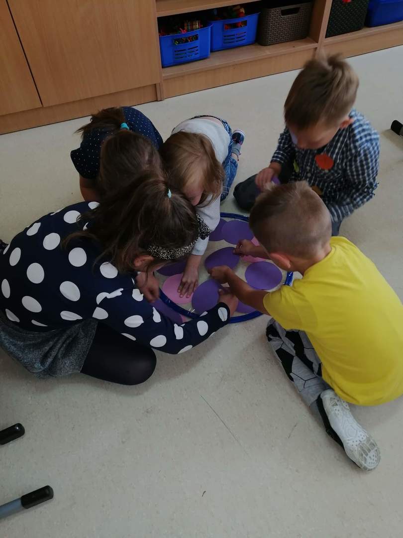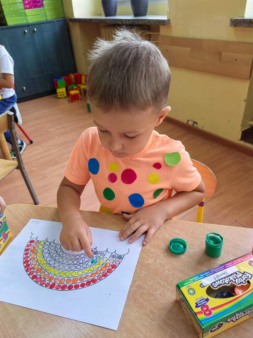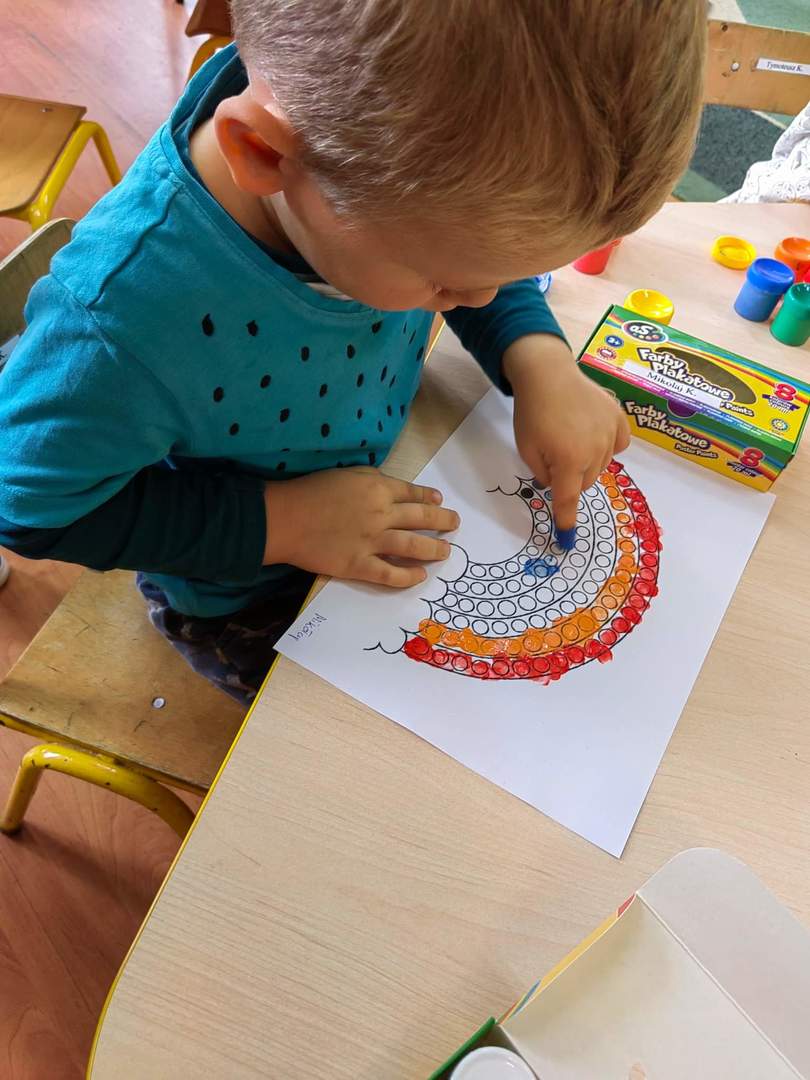 Dzień Kropki jest to dzień odwagi i wielu przyjemności. Nasze zabawy wypełnione były kolorowymi kropkami. Były zabawy ruchowe, tańce z kropką i malowanie palcami - bo każdy palec zostawia kropkę, co sprawiło dzieciom największą satysfakcję.