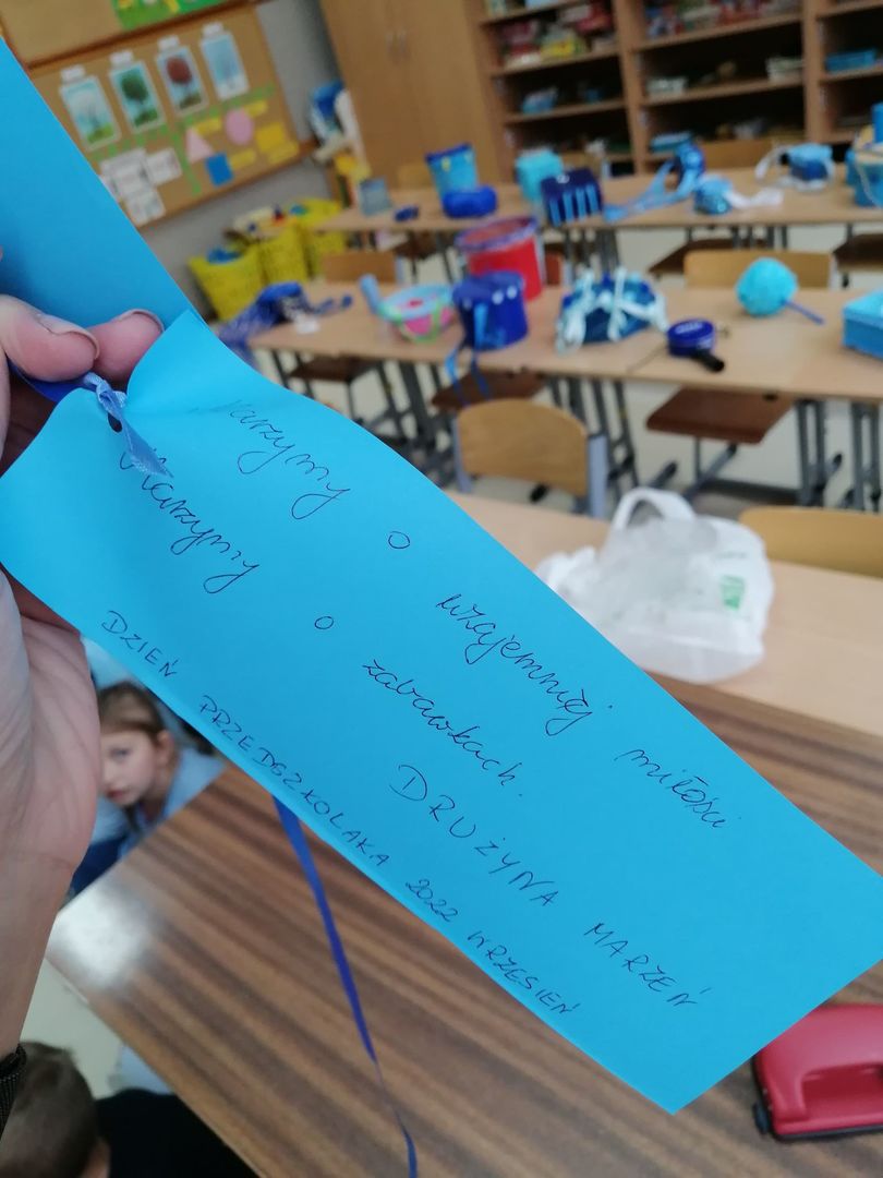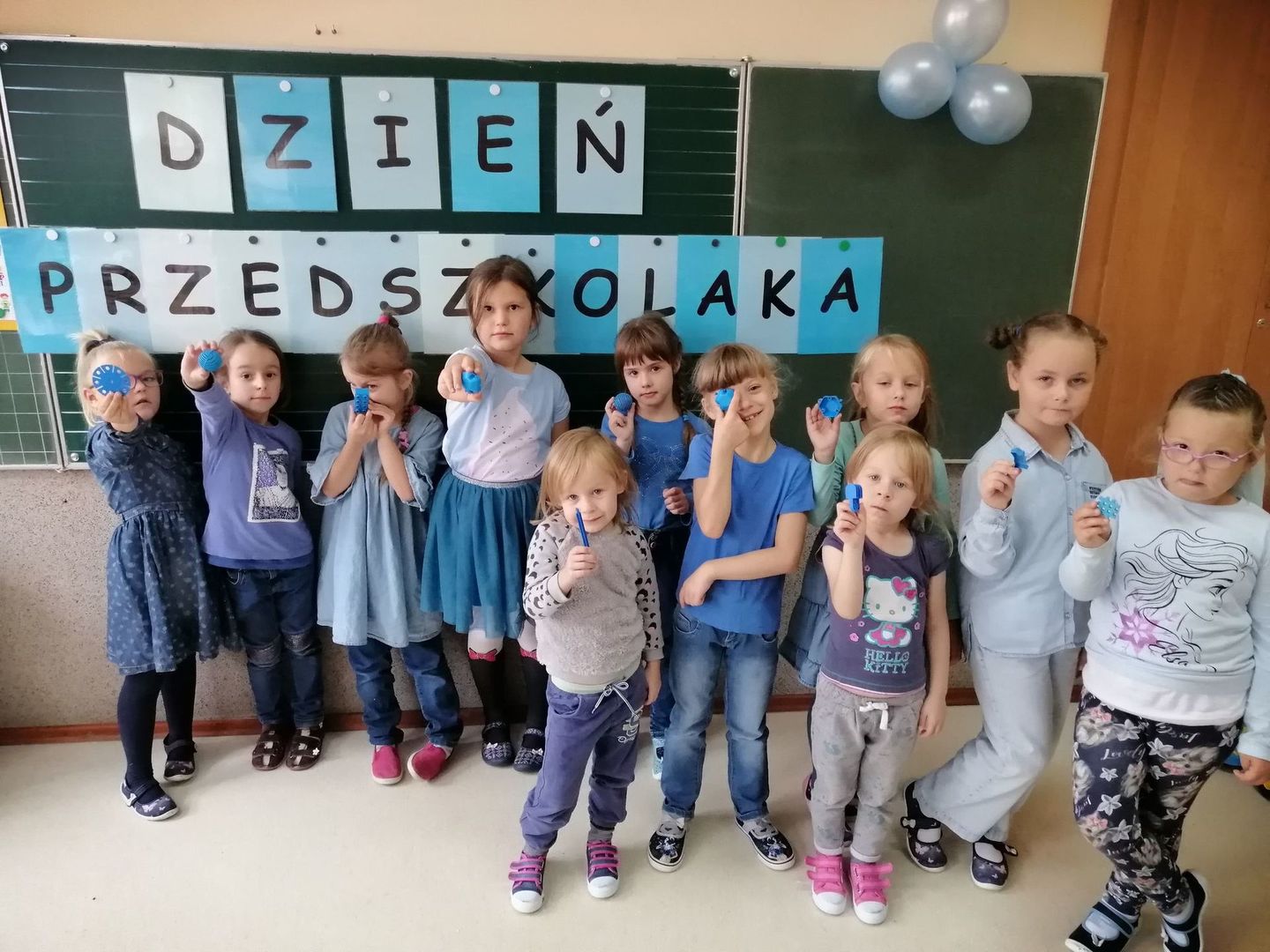 Oddziały przedszkole po raz kolejny brały udział w Ogólnopolskim Dniu Przedszkolaka. Święto zostało ustanowione uchwałą sejmu z dnia 13 września 2013 r. 20 września to wspaniały dzień dla każdego wychowanka przedszkola. Tego dnia na dzieci czekało wiele atrakcji. Podczas wspólnego spaceru został wypuszczony do nieba balonik z marzeniami. Dzieciaki uczestniczyły w przemarszu przez wioskę z swoimi instrumentami w kolorze „niebieskim”. W salach czekały na milusińskich konkurencje i zadania specjalne. Dzieci otrzymały również życzenia od pani Dyrektor, która życzyła wszystkim szczególnie zdrowia i spełnienia najskrytszych marzeń. W tym dniu nie zabrakło słodkiego poczęstunku.