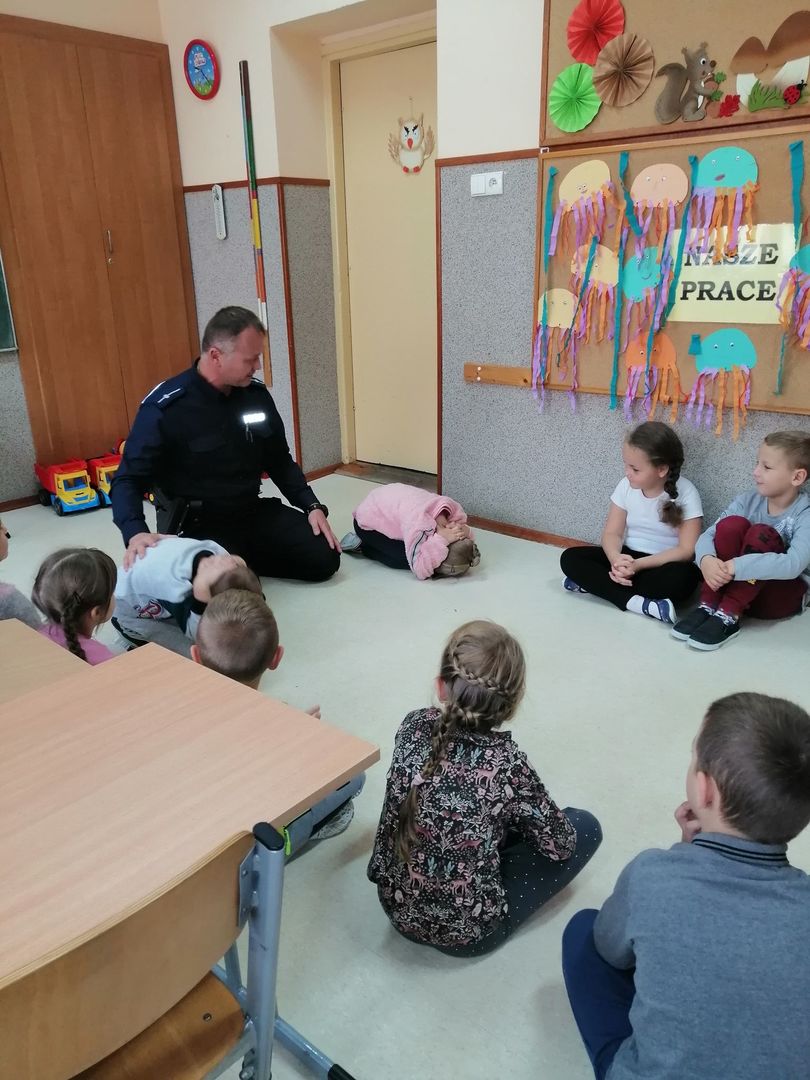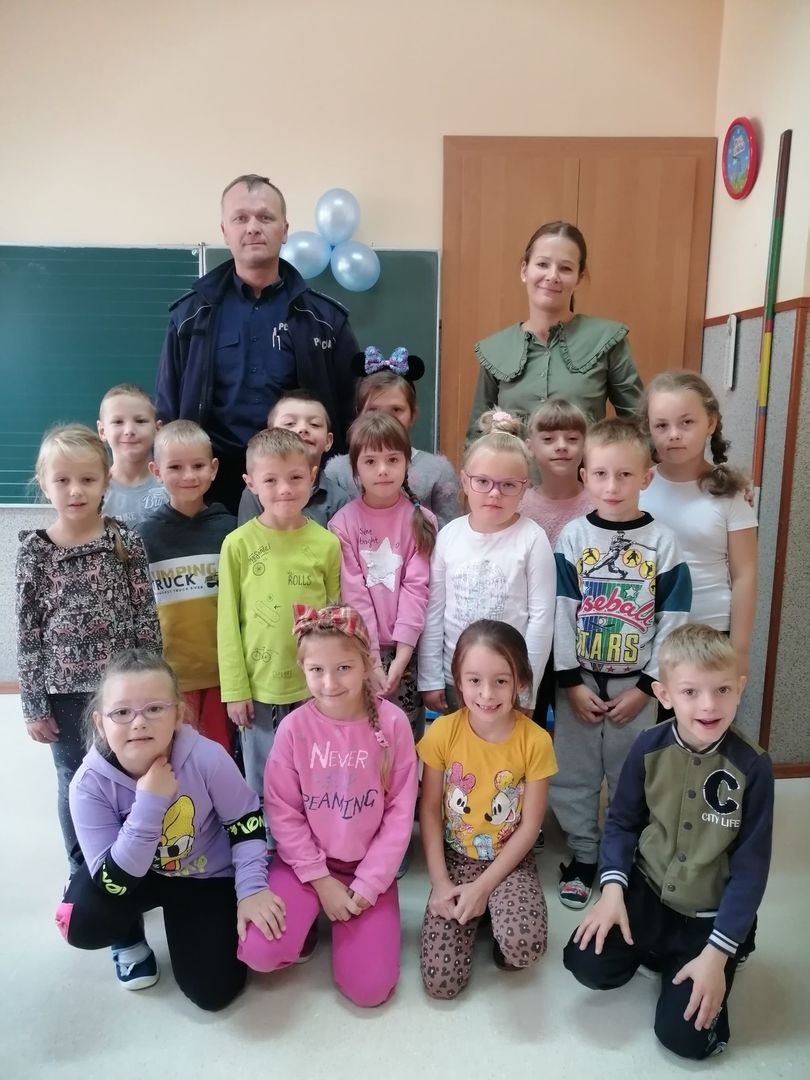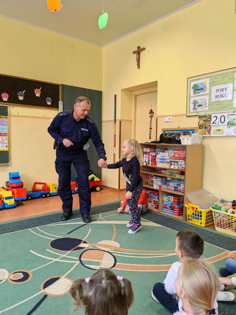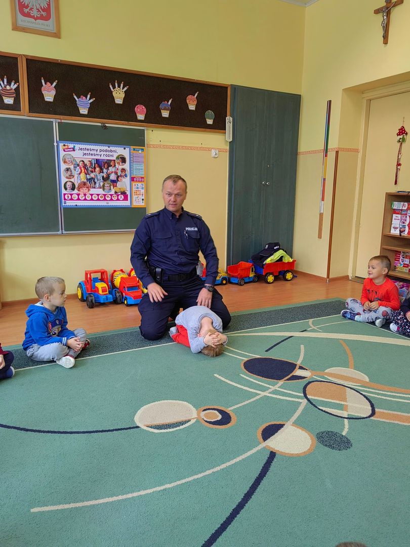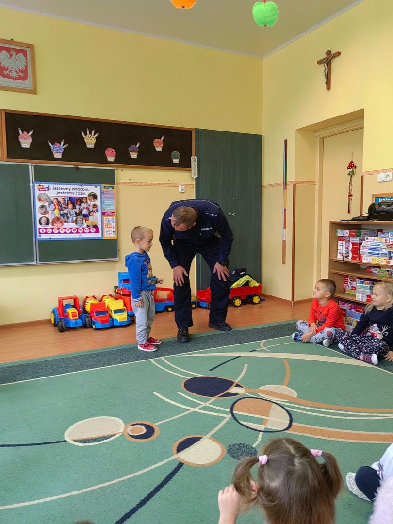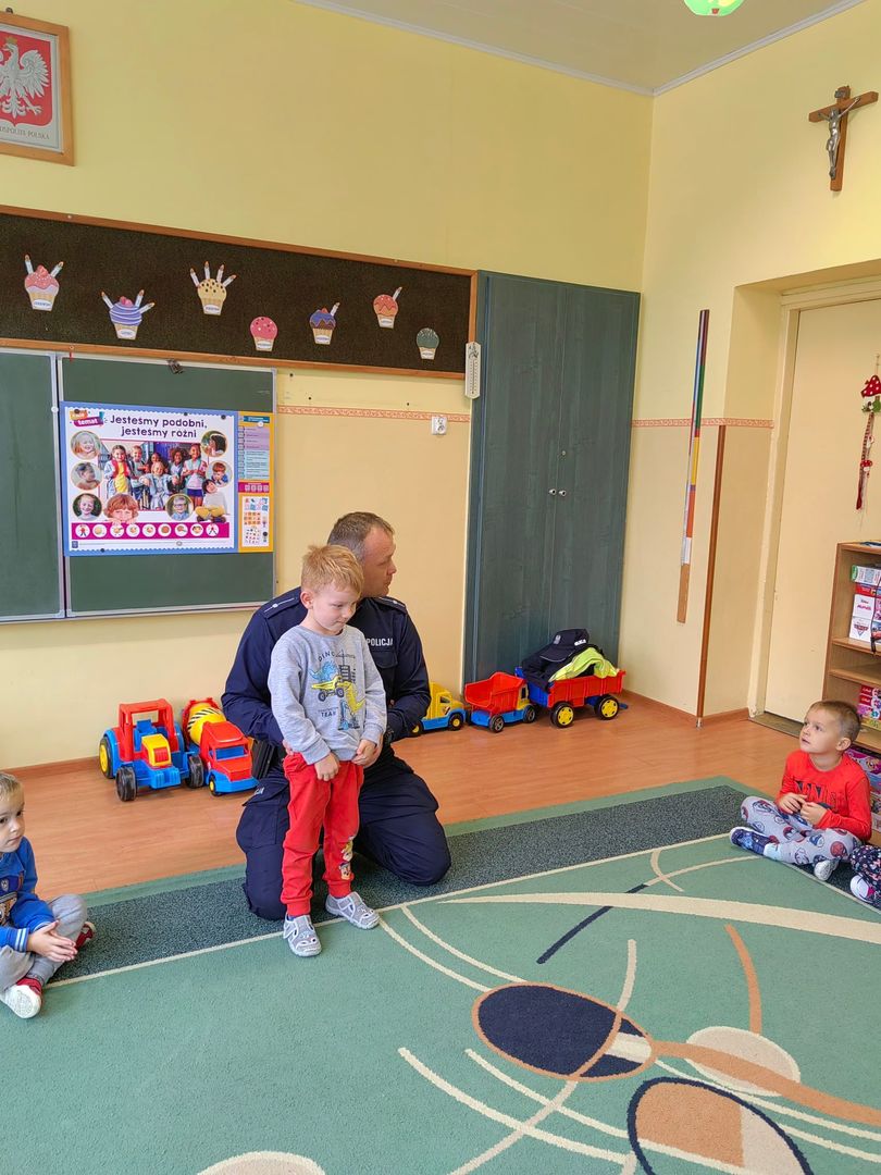 Mł.asp. Łukasz Stanisławski (dzielnicowy naszego rewiru) odwiedził dzieci z grup przedszkolnych w Mokronosie. Mundrur policyjny zrobił na maluchach ogromne wrażenie. Pan policjant przypomniał najmłodszym o najważniejszych zasadach bezpieczeństwa na drodze oraz w przypadku napotkania na groźne zwierzęta. Dzieci słuchały z ogromnym zaiteresowaniem i miejmy nadzieję, że będzie to dla nich ważna lekcja o bezpieczeństwie.